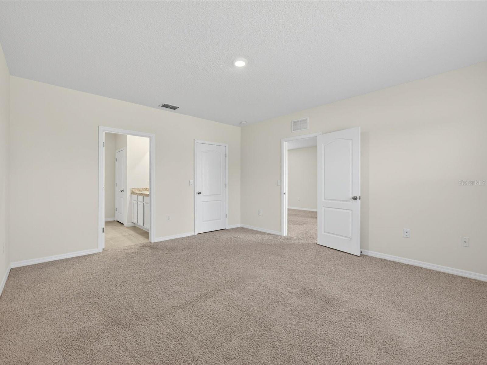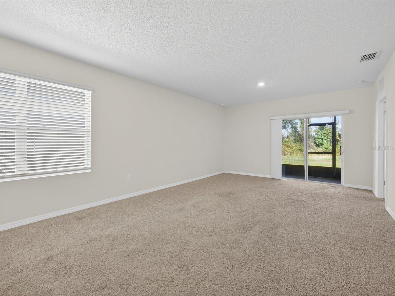 Welcome to this beautifully maintained energy efficient smart home featuring an open-concept floor plan that flows seamlessly from the front entry into the spacious kitchen and living area—perfect for modern living and entertaining. PAID in FULL SOLAR PANELS saving thousands on utility bills and screened patio overlooking conservation land make this home an ideal choice for those seeking comfort and value. The split-bedroom layout offers privacy, with two guest bedrooms and a full bath situated at the front of the home, while the primary suite is tucked away at the back for added tranquility. The primary bedroom includes a large walk-in closet and a private ensuite bath with dual sinks, a walk-in shower, and a separate water closet. Additional highlights include a water filtration system, and smart home hub allowing you to control the lights, AC and security system from your phone. The vibrant community of Horse Creek has a community pool and playground. Located in the heart of Davenport, close to theme parks, shopping, theaters and more. This move-in-ready home combines energy efficiency with everyday functionality.