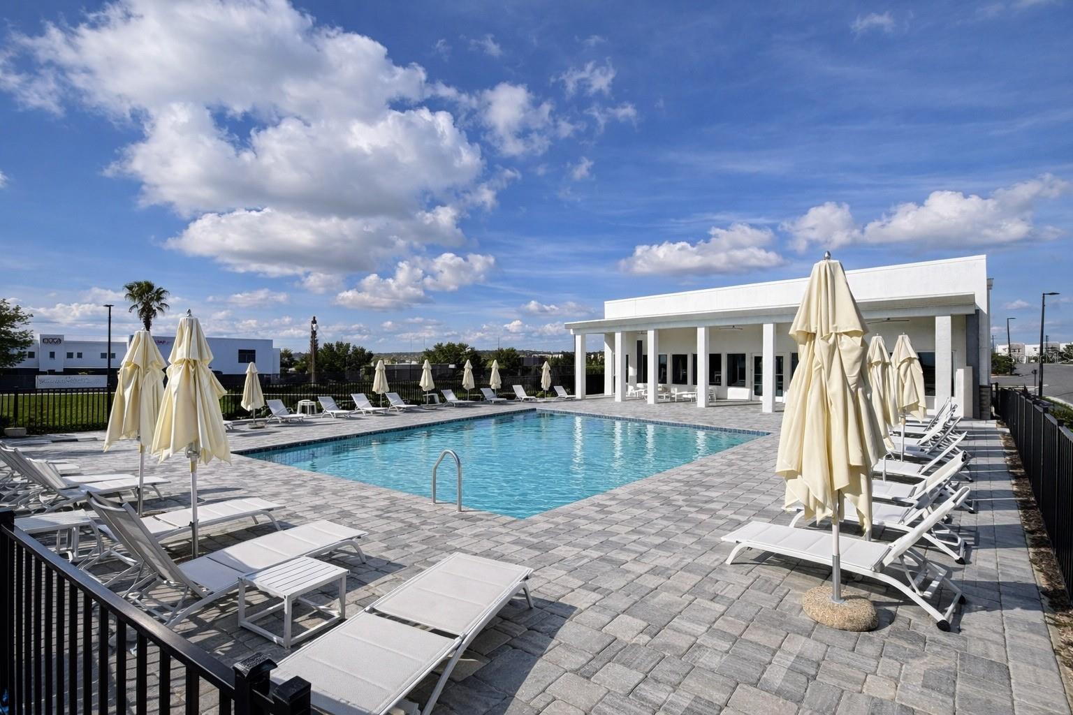 Stunning townhome located in the highly desirable Davenport/Disney area. This spacious home features an open-concept layout with modern finishes, a bright kitchen with ample cabinetry and counter space, and generously sized bedrooms, including multiple en-suites,ideal for both family living and guests. The property also offers a private covered pool, perfect for year-round enjoyment. Never lived in and ideal for first-time owners, this home provides the rare opportunity to own a brand-new construction without the wait. Situated in a resort-style community offering amenities such as a clubhouse, pool, and fitness center. Conveniently located just minutes from Disney parks, and a short drive to International Drive and Universal Studios, with easy access to I-4. Surrounded by numerous grocery stores, restaurants, shopping, and entertainment, all just minutes away. Perfect as a primary residence, second home, or investment property.