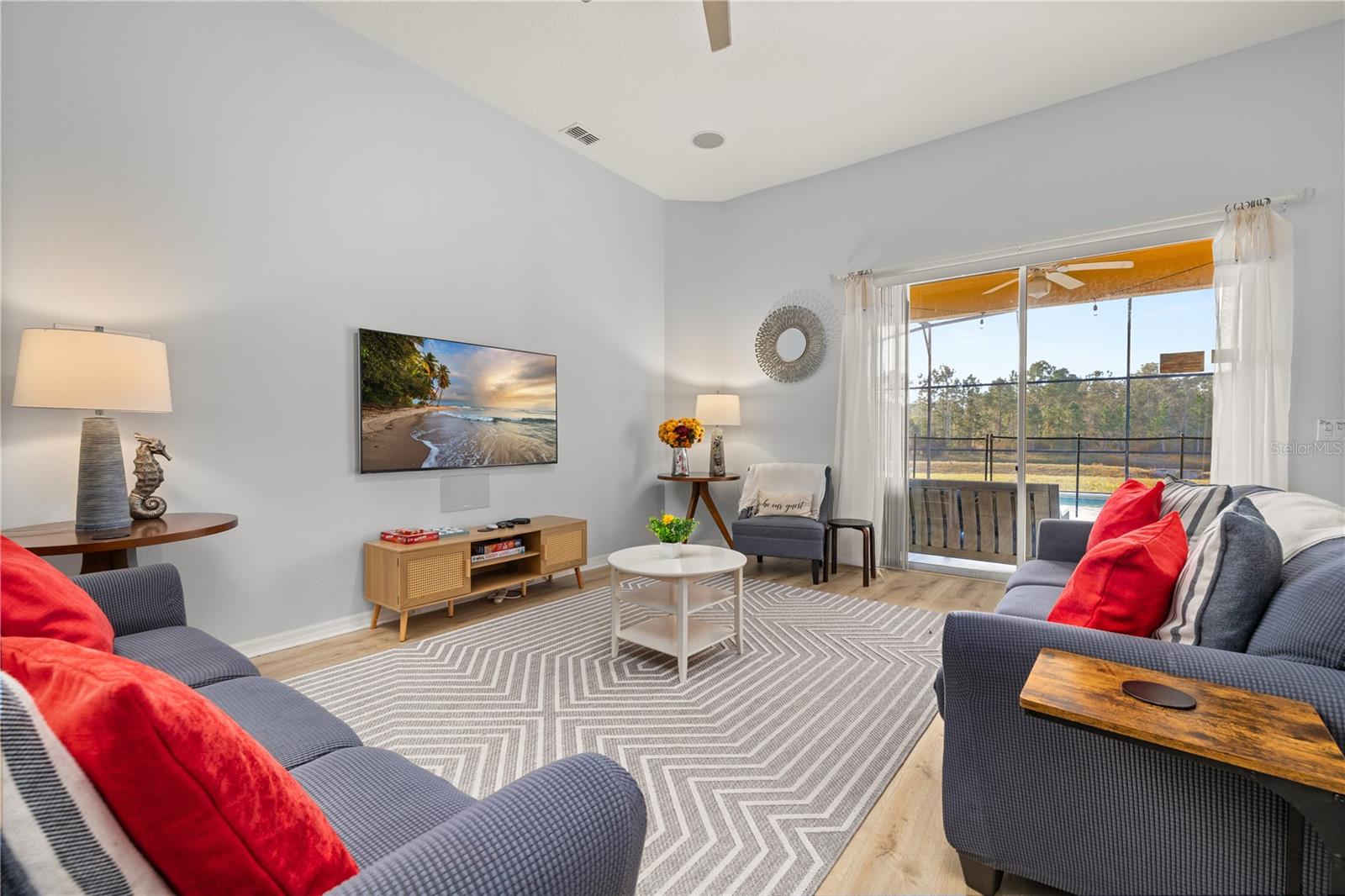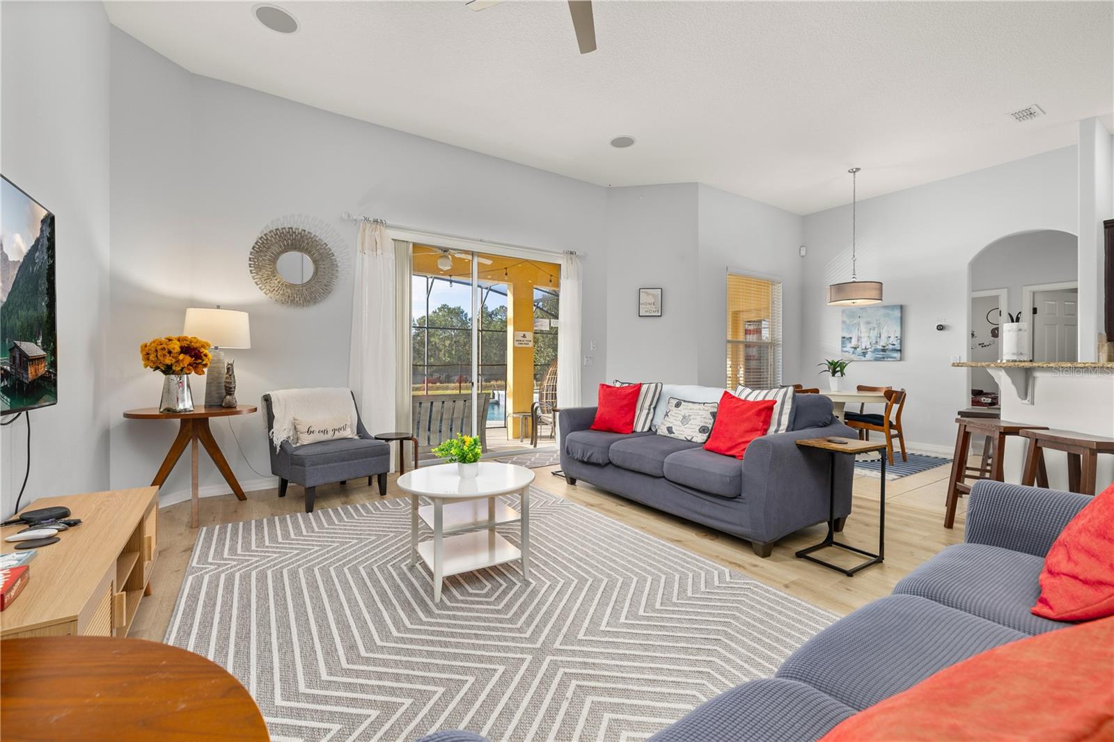 Discover this exceptional 5-bedroom, 4-bathroom single-level residence, perfectly designed for effortless family living or entertaining. The home features expansive, open living spaces, two luxurious master suites with private en-suite baths, and a versatile study/flex room that can easily convert into a sixth bedroom. Step outside to your private south-facing pool and spa, one of the largest in the community, with no rear neighbors for ultimate privacy and serene conservation views. Fully furnished and move-in ready, this home is ideal as a primary residence or a turnkey Airbnb/vacation rental investment. Recent high-value upgrades enhance both comfort and style, including new 50-year GAF architectural shingles (installation scheduled for January 2026, with a transferable warranty), an extended paver driveway, modern LVP flooring, updated appliances, a heat pump and gas pool heater, and a Gen 2 EV charging outlet in the garage. Since 2019, this property has delivered consistent rental income through Airbnb and UK's Debbies Villas, proving its strong performance. Located just steps from the resort's clubhouse, fitness center, community pool, and playground, the home is also minutes from Walt Disney World, top shopping, dining, and highly rated schools. Experience the ultimate blend of luxury, convenience, and the iconic Central Florida lifestyle. This rare single-story home with an oversized pool, privacy, and income potential is perfect for savvy investors or families seeking turnkey paradise.