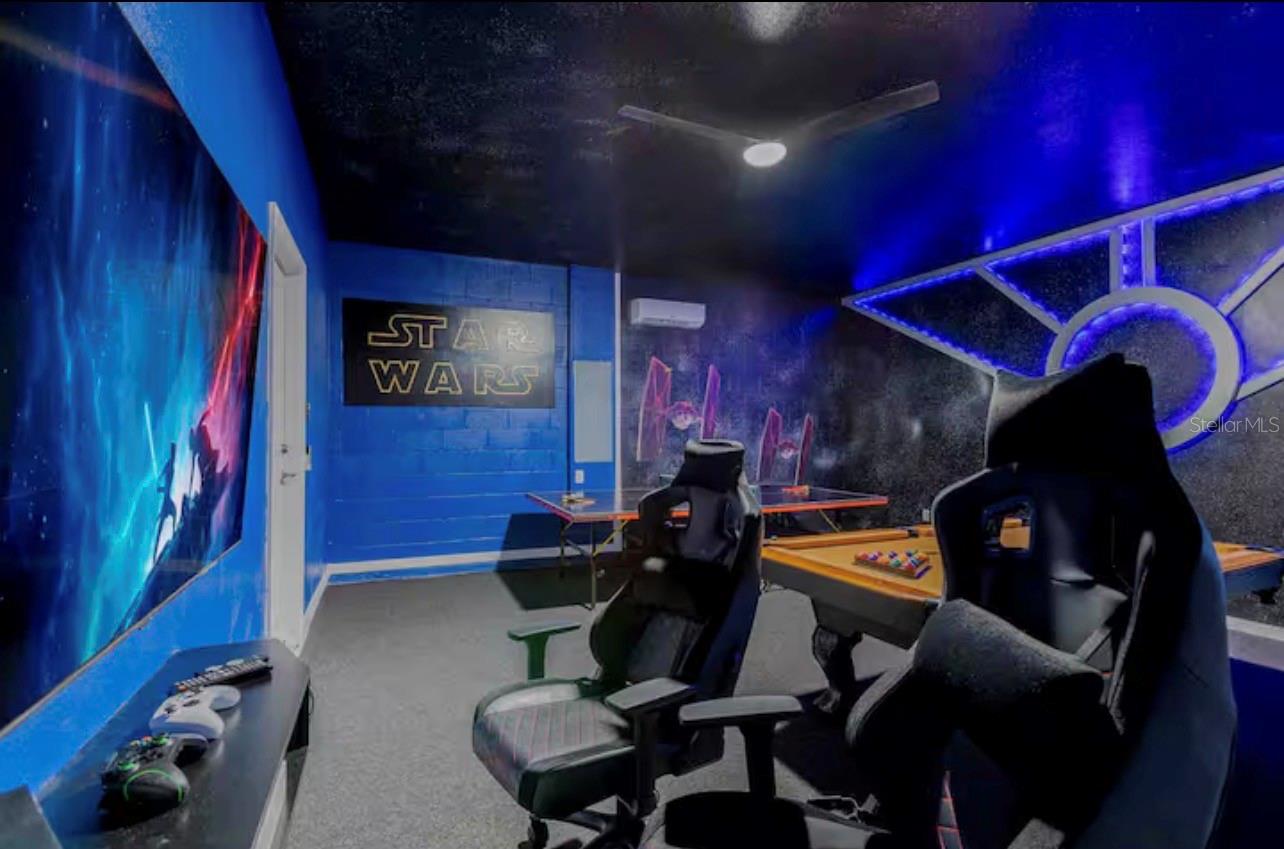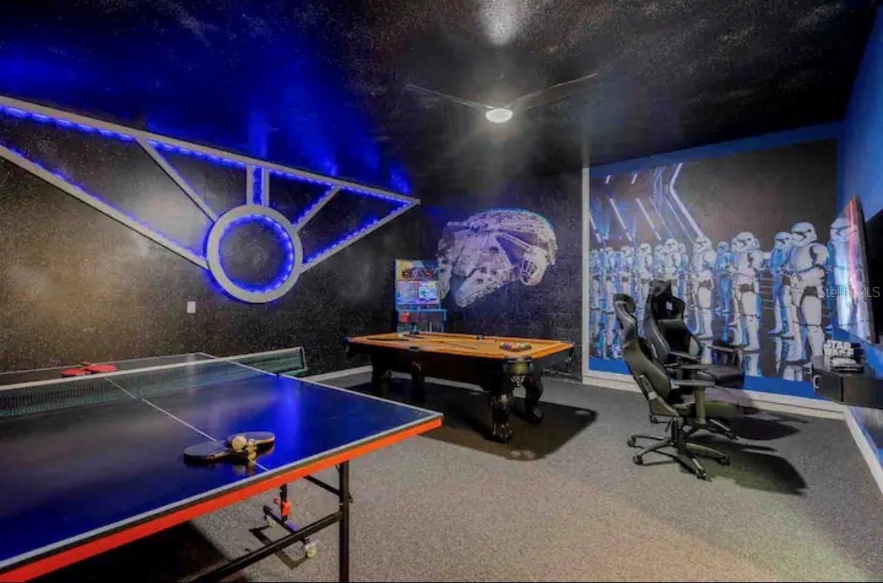 Welcome to this tastiflly furnished home located in the prestige Windsor Island Resort! Just minutes from Disney and world-class attractions, this home is fully furnished and ready for daily rentals. Special features include: Open floor plan with a modern kitchen with granite countertops and oversized island for extra seating; Themed bedrooms and game rooms. Windows Resort Amenities Include: Resort-style pool, lazy river, hot tub, and splash pad Mini-golf, pMickey, Little Mermaid, and Harry Potter bedrooms layground, basketball court. Outdoor bar and dining area, fire pit lounge, and clubhouse Fitness center, arcade, and 24/7 gated security Zoned for short-term daily rentals. This home is very closed to theme parks, shopping, restaurants, and major highways.
