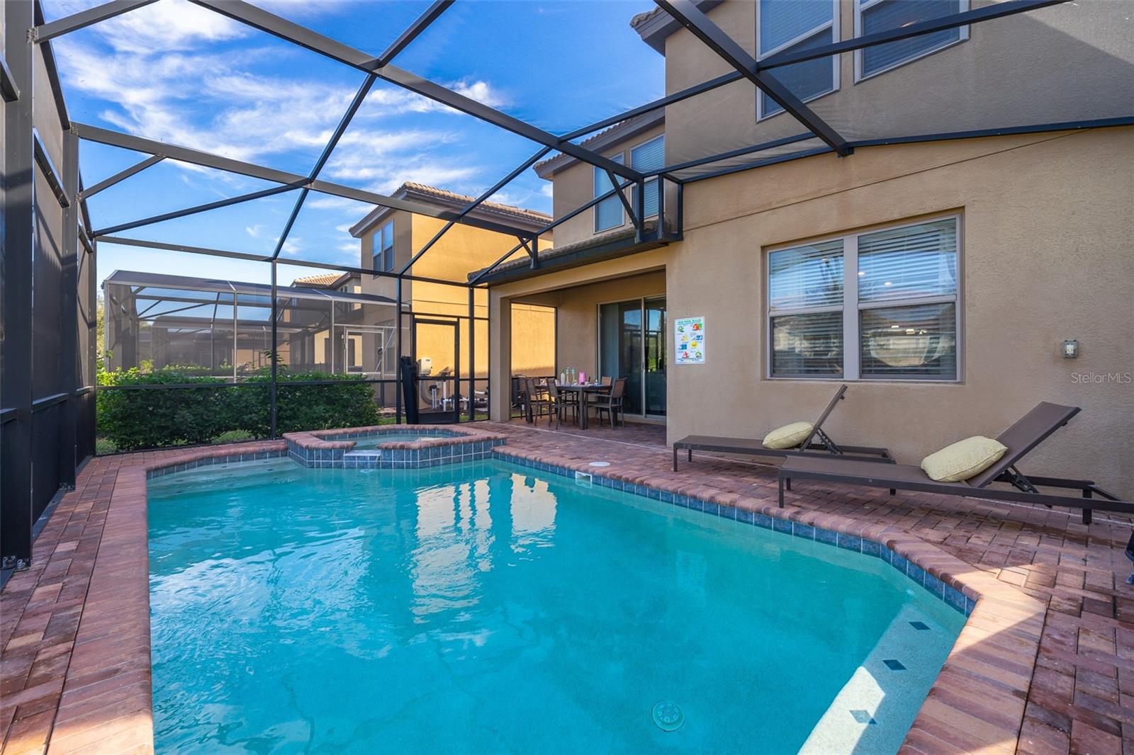 Paid-Off Solar Panels – Cut Your Electric Bill by Up to Half ! No back neigbor lot ! Welcome to Solterra Resort, one of Central Florida’s most desirable guard-gated communities—just 20 minutes from Walt Disney World within a 24-hour guard-gated resort, This home has a really nice layout with a full bedroom and full bathroom on the first floor, which is super convenient for guests or family. It features a heated pool with fully paid-off solar panels, so you can enjoy the pool year-round without worrying about high electric bills. Perfect for enjoying the Florida lifestyle. The property has a solid rental history and has been professionally managed, so it’s been well taken care of. The home is in good condition and turnkey ready! It’s also set up with family-friendly themed rooms, making it great for both personal use and rentals. With the paid-off solar system, great layout, and strong rental performance, this home is priced to sell. At Solterra, every day feels like a vacation. Enjoy world-class amenities such as a lazy river, giant resort-style waterslide, clubhouse café, fitness center, and sports courts offering tennis, pickleball, and sand volleyball. The HOA fee includes lawn and landscaping maintenance, ensuring truly carefree living. Perfect for a private family retreat, a short-term rental property, or both, this villa truly stands out.