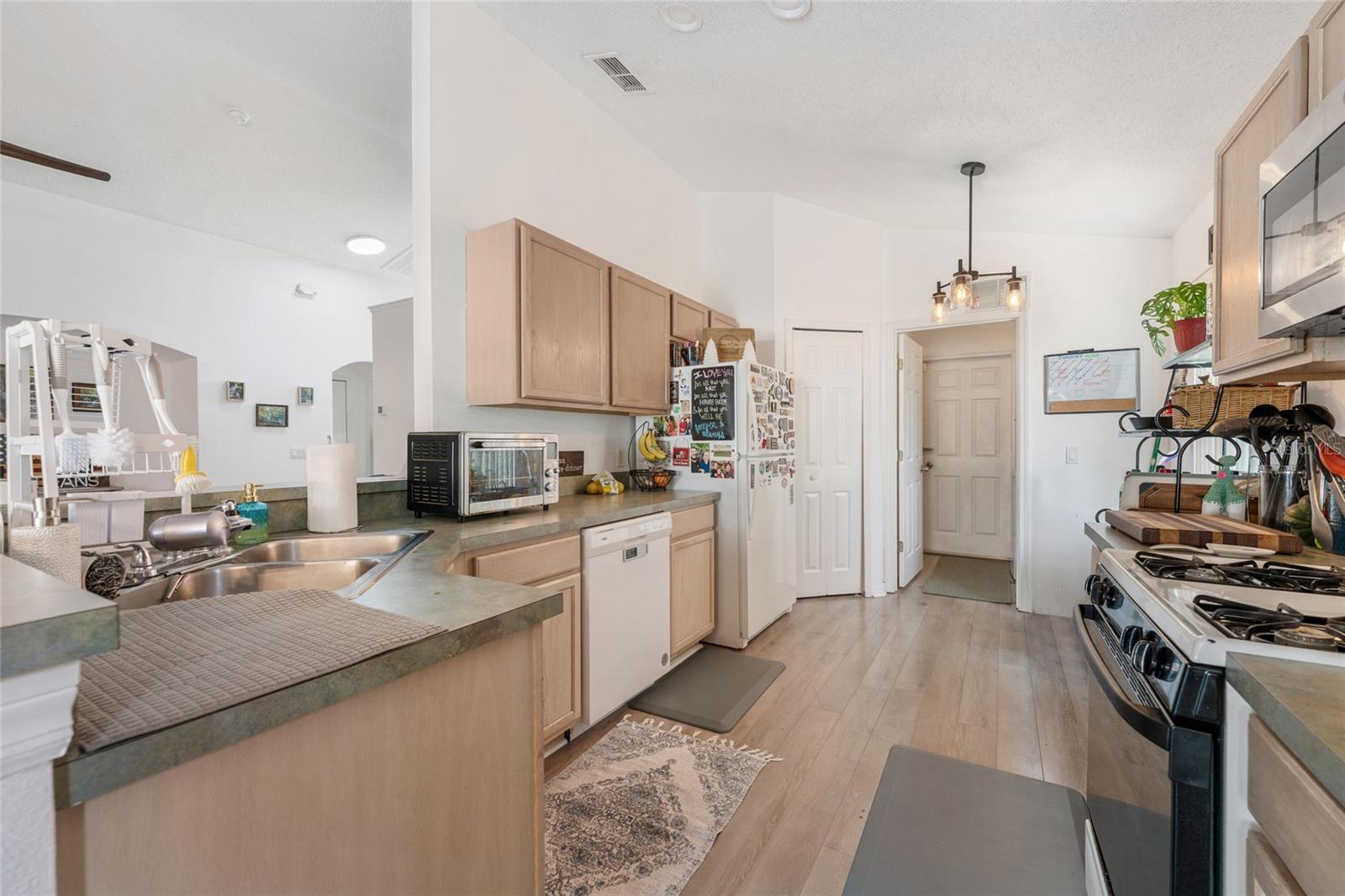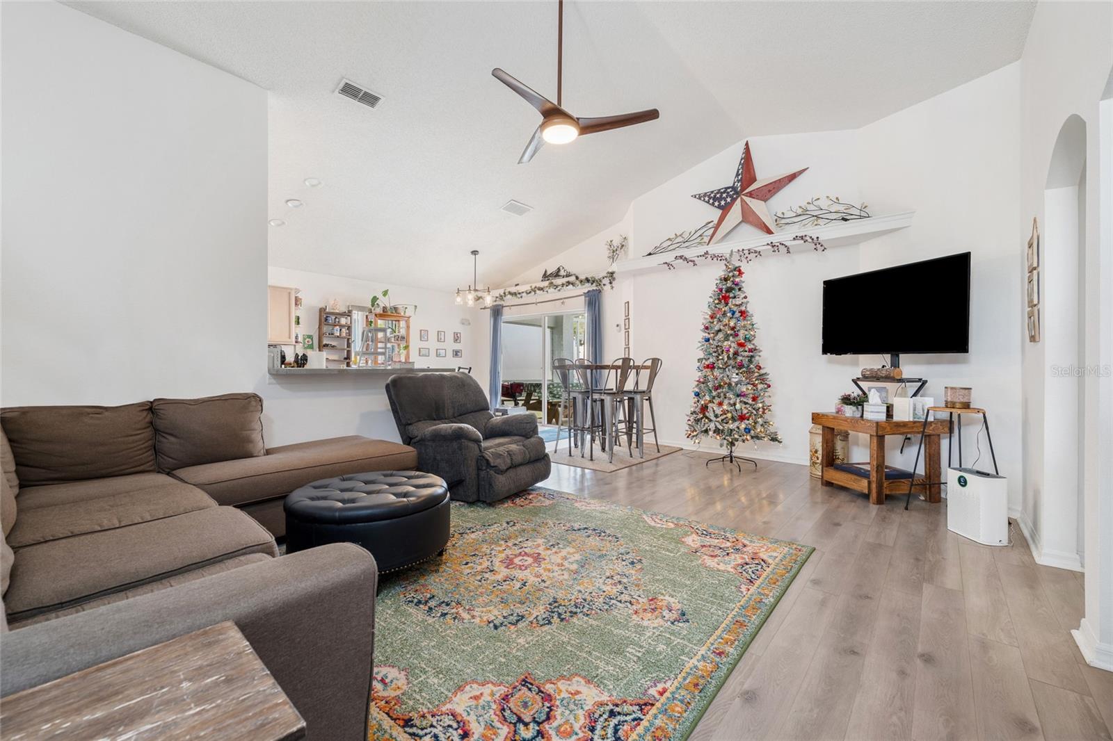 Welcome to this 3-bedroom, 2-bath residence in the desirable Santa Cruz community. Built in 2001, the home offers 1,398 square feet of living space with a 2-car attached garage. An open layout connects the spacious living room to a dedicated dining area and kitchen, while sliding glass doors lead to a screened private pool—ideal for year-round indoor-outdoor living. The primary bedroom is thoughtfully positioned at the rear of the home for added privacy, separated from two additional bedrooms and a full bath. Situated just two minutes from U.S. Highway 27 and 15 minutes from Orlando’s world-renowned theme parks, the location offers both convenience and lifestyle appeal. Gulf Coast and Atlantic beaches are accessible within approximately one hour, making this home a well-positioned retreat for weekend escapes. Zoned for short-term rental, the property presents an opportunity for full-time residence, vacation use, or investment potential.