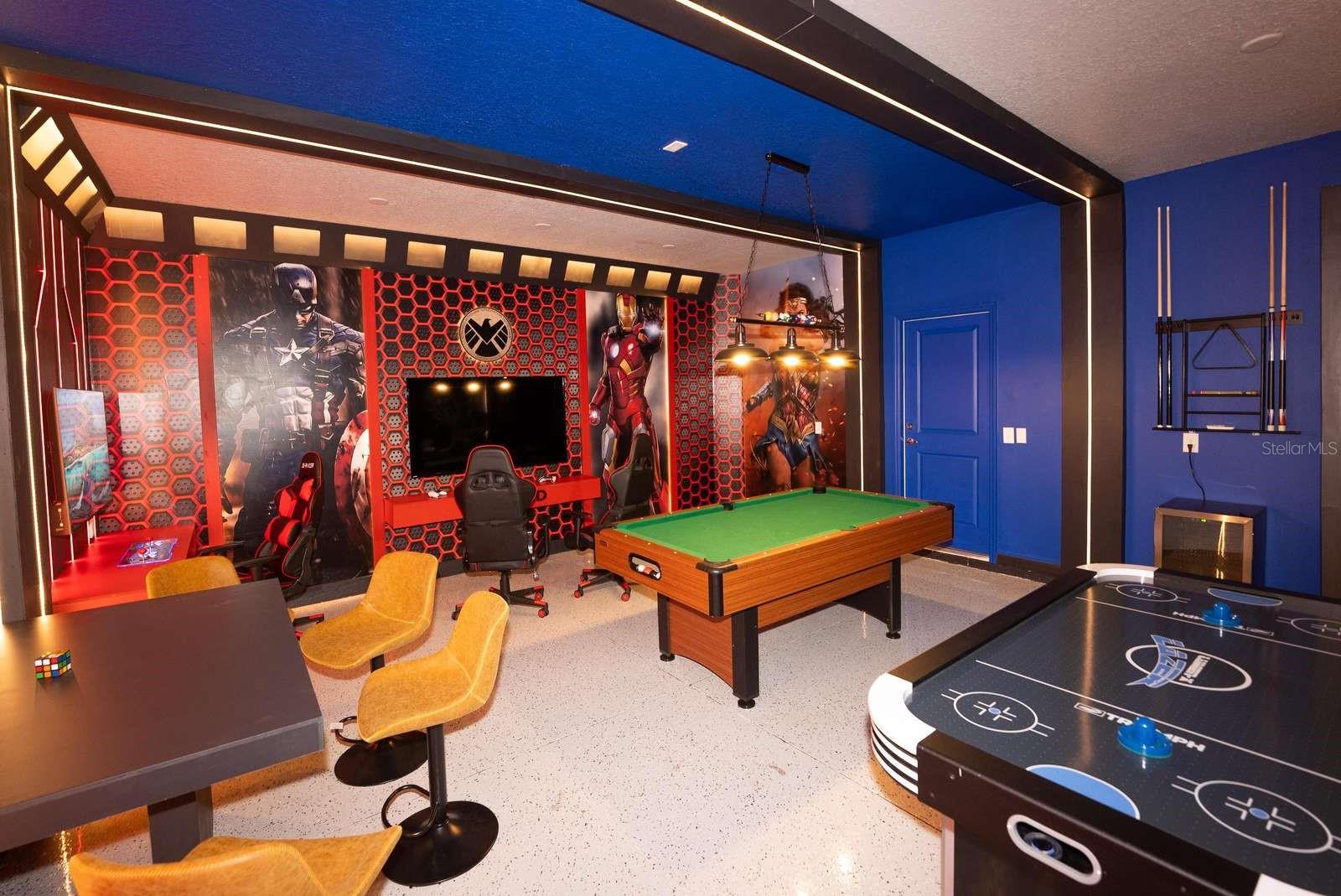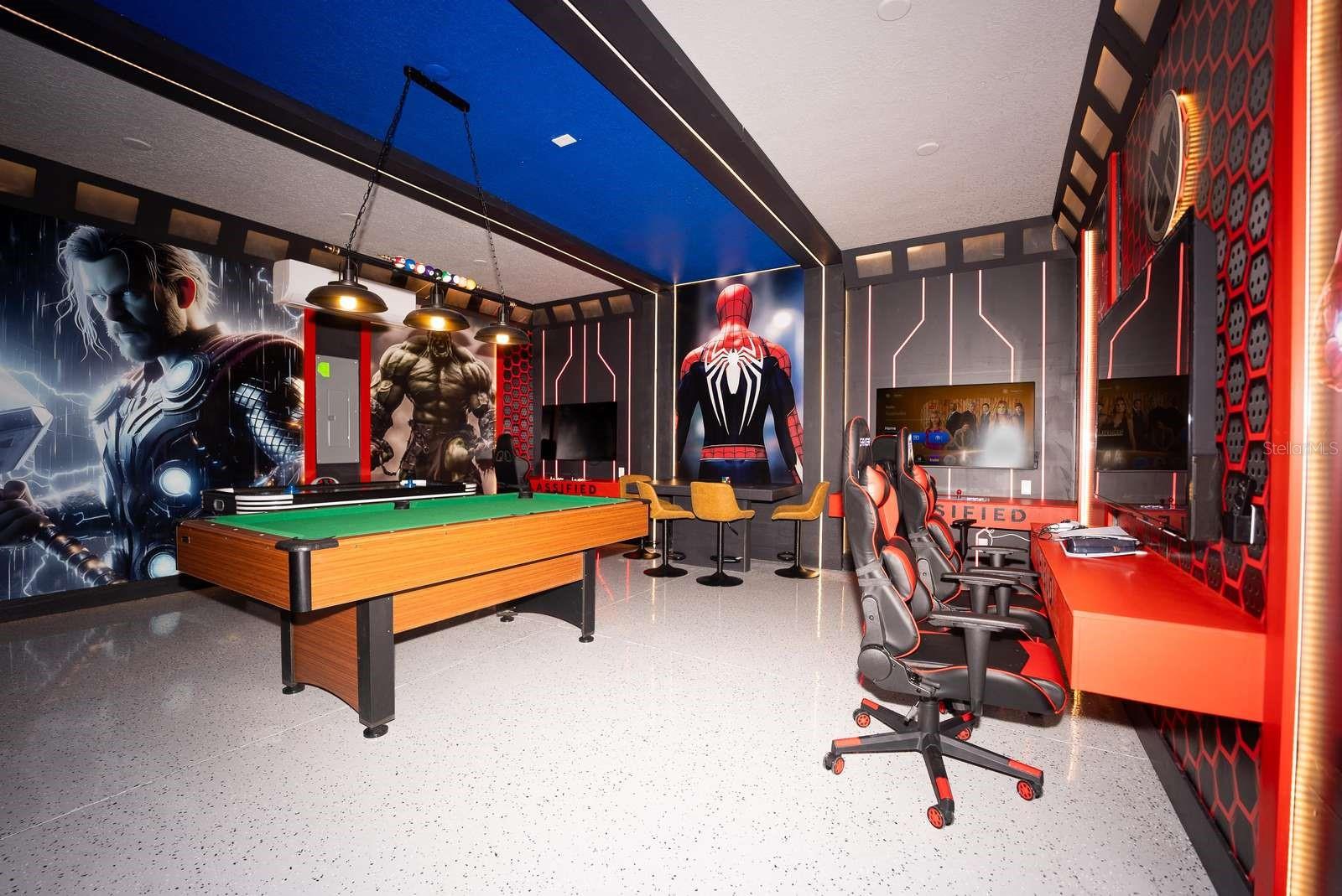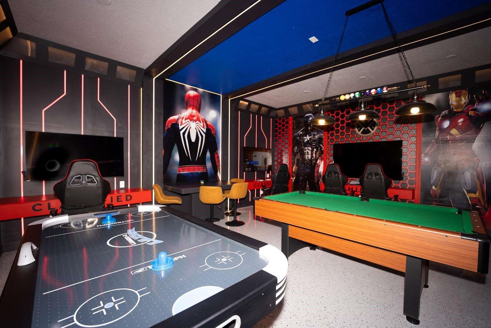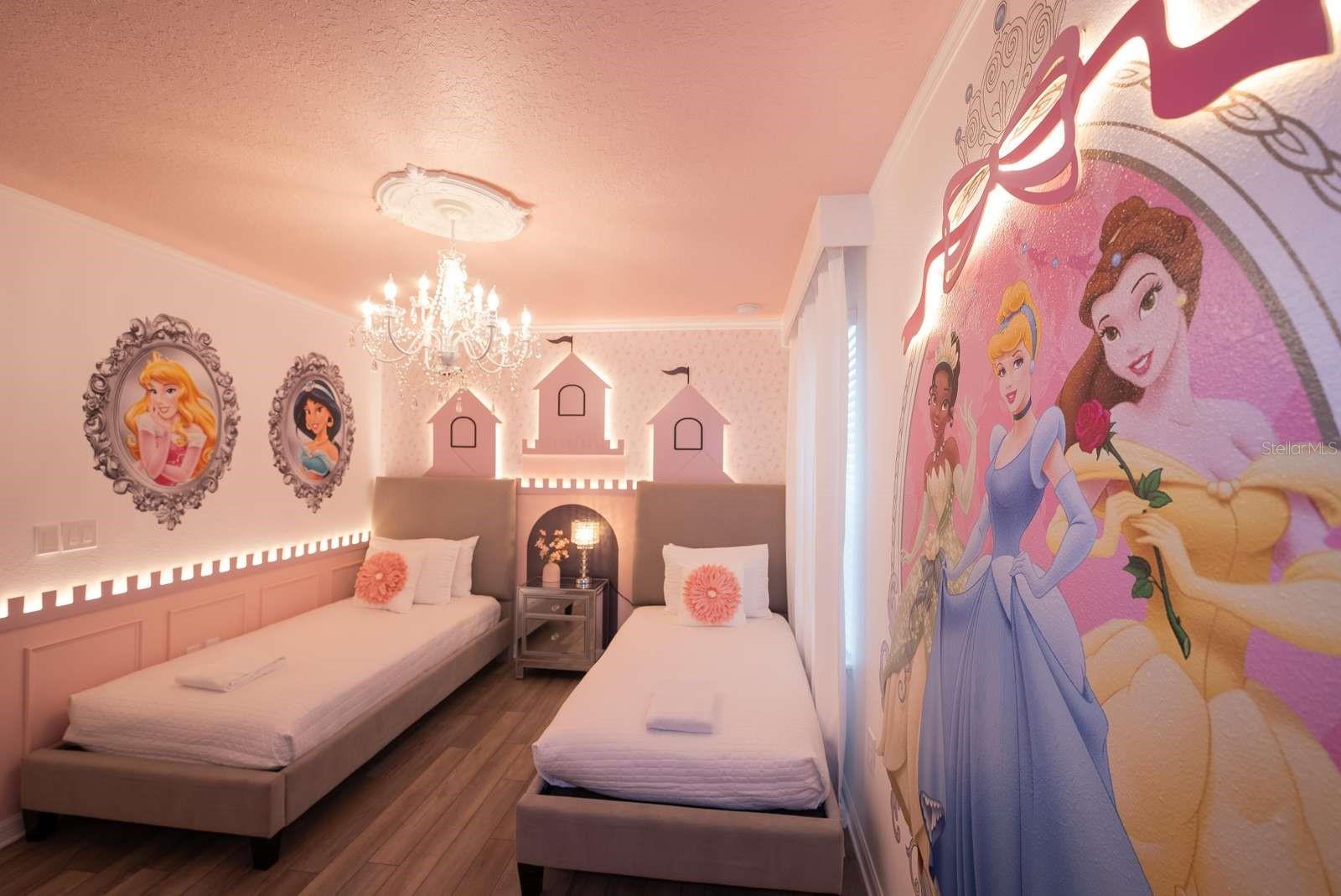 Turn-key short-term rental property located inside the sought-after Windsor Island Resort — a gated community approved for short-term rentals. This beautiful and well-maintained home offers a great combination of functionality, privacy, and resort-style living. The home features a unique and desirable floor plan with 5 bedrooms, each with its own private bathroom, plus an additional half bathroom conveniently located by the pool area. Designed for comfort and easy maintenance, the property offers tile flooring throughout with no carpet. The garage has been converted into a themed game room, adding extra entertainment space, and the home includes themed bedrooms, including a Princess-themed bedroom and a Harry Potter-themed bedroom, enhancing its appeal for guests and families. Enjoy a peaceful backyard with no rear neighbors, providing additional privacy, and benefit from the close proximity to the clubhouse, offering quick access to community amenities. The community is conveniently located near major highways, shopping, dining, and just minutes from world-famous attractions such as Walt Disney World. Whether used as a primary residence, vacation home, or short-term rental property, this home presents an excellent opportunity. Schedule your private showing today.
