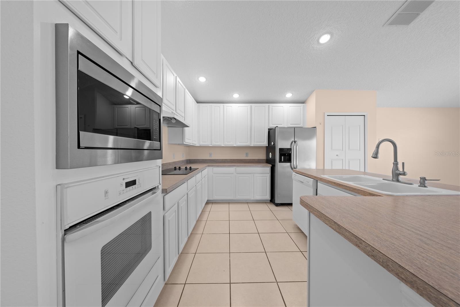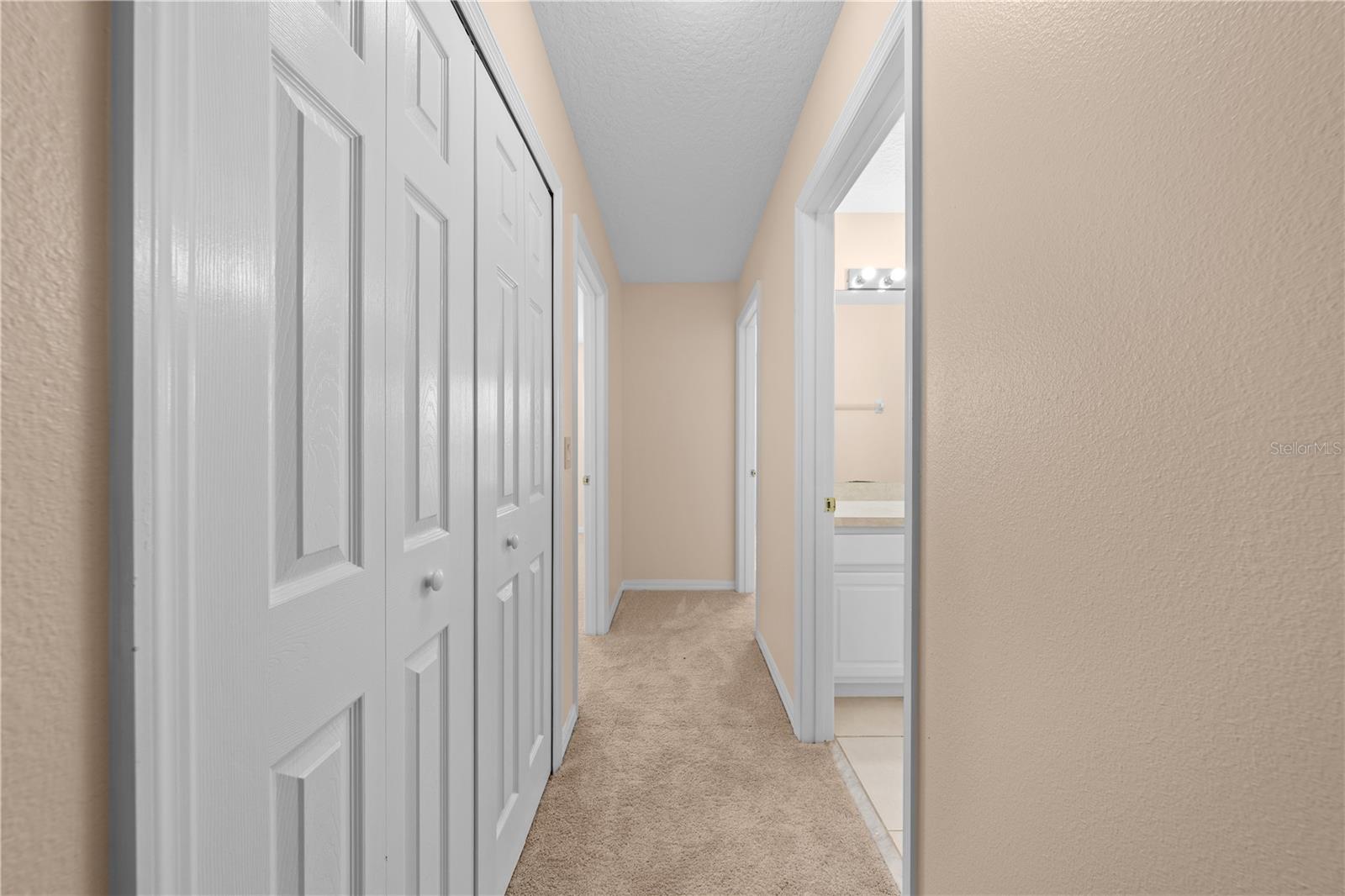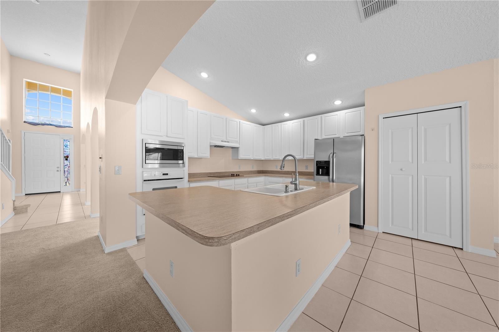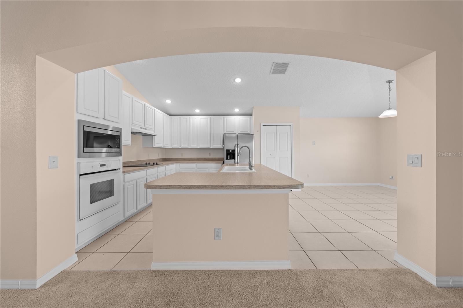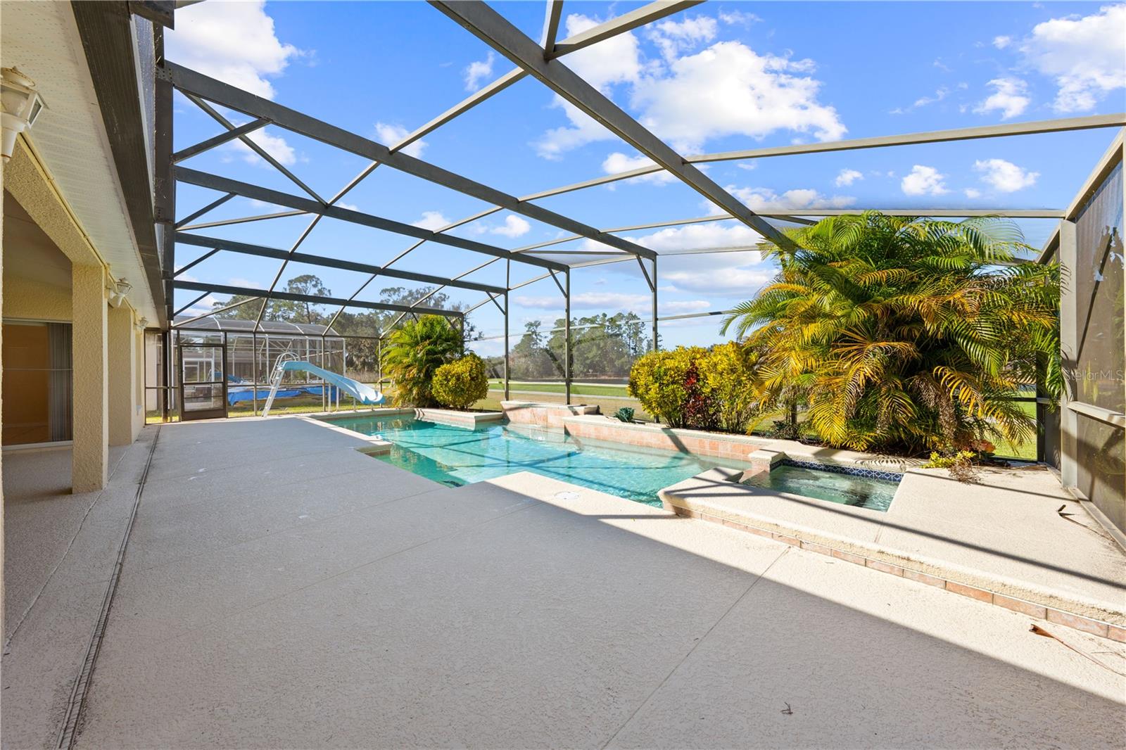 Gorgeous water and golf course views set the stage for this spacious home located in the gated Forest at Ridgewood Lakes community. This two-story residence is one of only a limited number of 5-bedroom, 3.5-bath homes in the neighborhood and offers a flexible, well-designed floor plan ideal for everyday living and entertaining. The oversized first-floor primary suite features pool access and a large en-suite bath, while the expansive family room overlooks the covered lanai, golf course tee, and lake. Additional living spaces include a formal living room, dining area, eat-in kitchen, home office or den, and a two-car garage. Recent updates include fresh interior and exterior paint, new carpeting throughout, and a roof replaced two years ago. A separate laundry room includes washer and dryer. Perfect for a large family, guests, or multi-generational living, this home is move-in ready and offers one of the best views on the street. Conveniently located just 20 miles from Disney, minutes from Posner Park shopping and dining, and close to Highway 27. All ages welcome.