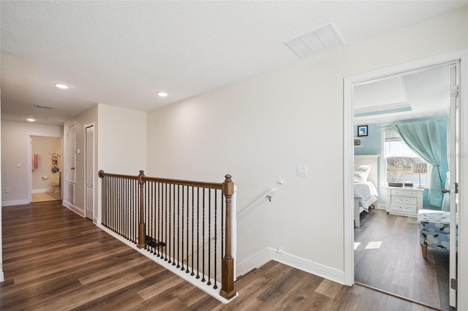 Welcome to Your Dream Home in Solterra Springs! Discover resort-style living with residential peace of mind in the highly sought-after gated community. This stunning, newer 5-bedroom, 3-full-bath home offers an abundance of modern upgrades and luxurious features, making it the perfect haven for relaxation, entertainment and very Family friendly. Key Features Include: Luxury Vinyl Plank Flooring throughout for durability and style, Crown Molding that adds a touch of elegance, Stainless Steel Appliances and Quartz Countertops in the kitchen, Custom Primary Closet, Extended Screened-In Coastal Lanai for year-round outdoor enjoyment, Strada Home Security System for added peace of mind. The layout boasts large bedrooms, including a first-floor ensuite for convenience, a primary suite upstairs for ultimate privacy. and a large loft great for extra living space. The backyard is an oasis with water views, breathtaking sunsets, and a large fenced-in yard with playset, perfect for relaxation or entertaining. Room for your DREAM POOL in this yard! Community Amenities You'll Love: Resort-style pool and lazy river, fully equipped gym, Sand volleyball court, Two playgrounds, a brand-new meeting center. This home truly has it all, blending luxurious living with the comforts of a welcoming community. Don’t miss your chance to make this exceptional property your own. Schedule your private showing today!