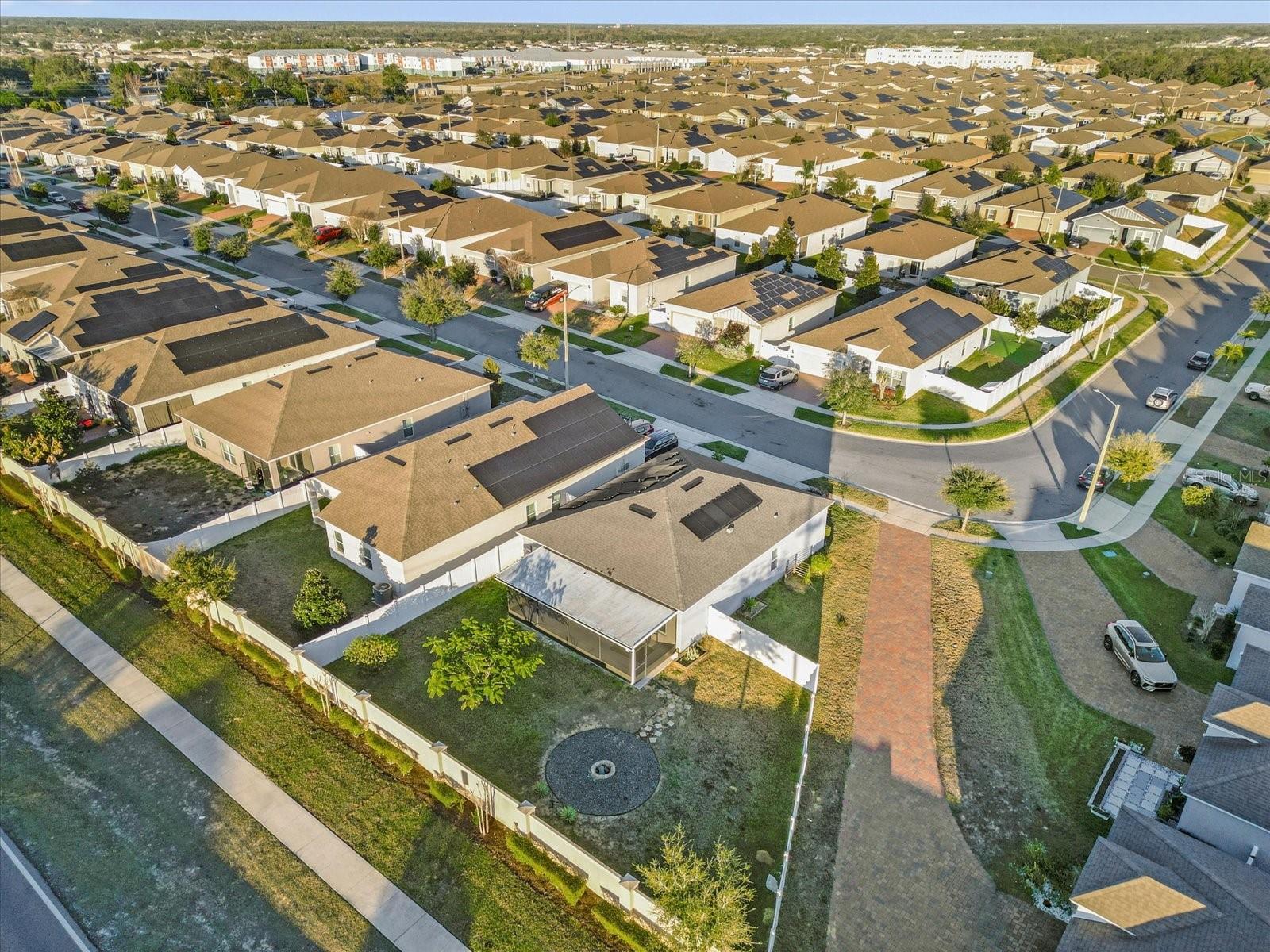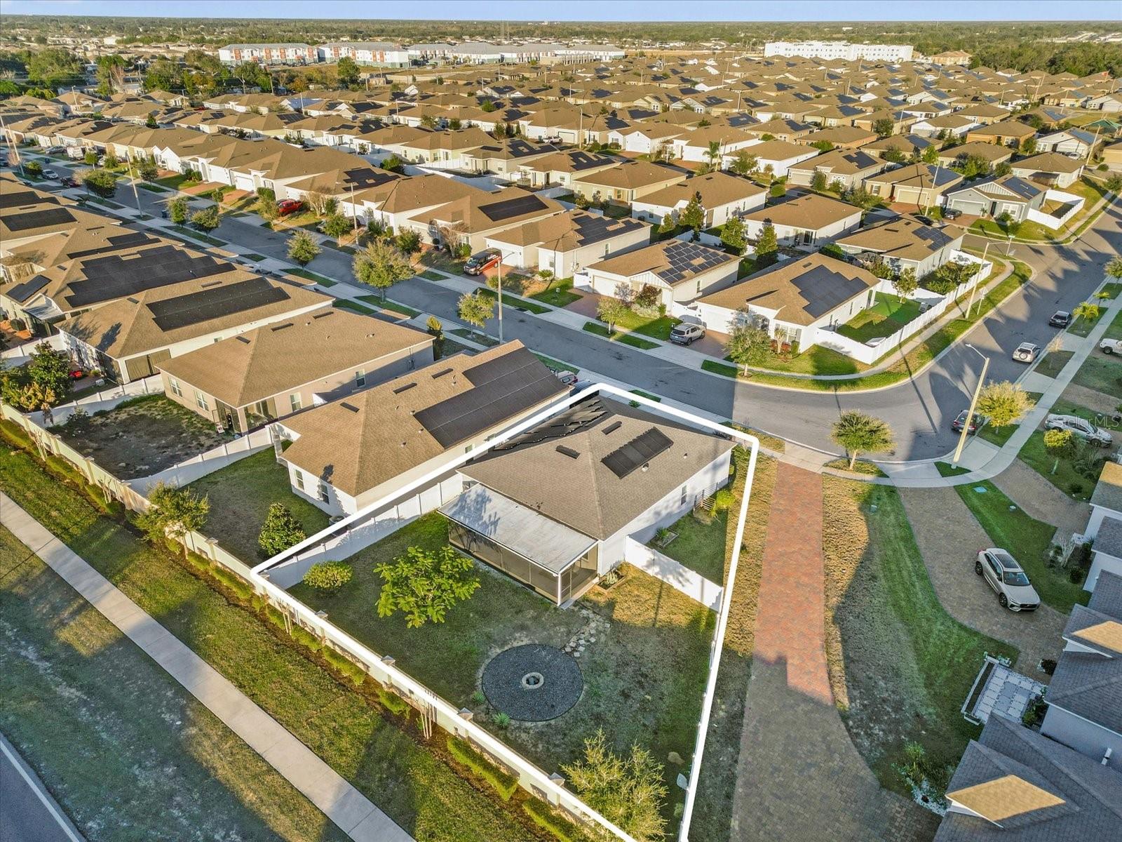 This absolutely best priced, charming one-story home offers a desirable split-bedroom floor plan and is packed with upgrades. The spacious kitchen features 42-inch cabinets, stainless steel appliances, and includes a washer and dryer—perfect for easy move-in. Enjoy a reliable Trane A/C system, tile flooring throughout the main living areas, and durable vinyl flooring in the bedrooms. Step outside to a generously sized backyard with vinyl fencing on both sides, a cozy fire pit, and an impressive 11x29 screened-in patio, ideal for entertaining or relaxing year-round. The brick-paver driveway adds great curb appeal. Orchid Grove offers: community pool, playground and dog park, everything for $100.00 a year HOA. Conveniently located near Highway 27 and the new Ridge Community High School. Bonus: FULLY PAID OFF SOLAR PANELS—huge energy savings and a major value add for future owners. A fantastic opportunity you don’t want to miss!