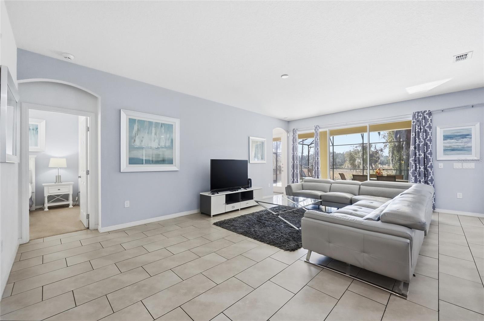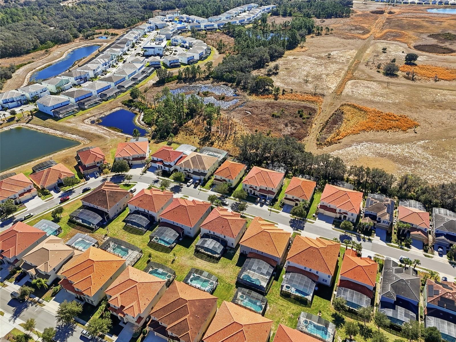 Check out this 9-bedroom, TURNKEY / SHORT TERM RENTAL investment opportunity located in Solterra Resort. This FULLY FURNISHED 9-bedroom, 7-bathroom home SLEEPS UP TO 20 guests and is designed to maximize occupancy, guest experience, and rental demand. Projected REVENUES are $118,775 annually, AVERAGE NIGHTLY RATE OF $673 and 48% OCCUPANCY RATE. The property features a LARGE OPEN -CONCEPT floor plan with durable tile flooring throughout the main living areas with carpeted bedrooms and loft for added comfort. Two primary ensuites, one on the main level and one upstairs, provide flexibility and appeal for multi-family and multi-generational bookings. FLOOR-TO-CEILING sliding glass doors lead to a PRIVATE SCREENED AND HEATED POOL, covered lanai, with NO REAR NEIGHBORS and CONSERVATION VIEWS—a highly desirable feature for vacation renters seeking privacy and relaxation after theme park visits. Upstairs, you will find HAND-PAINTED themed murals (Star Wars, Frozen, and Spiderman) to enhance guest appeal. The spacious loft functions as an entertainment hub with ample seating, a ceiling-mounted EPSON VS250 projector, and a LARGE PROJECTION SCREEN, making this home ideal for group stays and extended bookings. Sold FULLY FURNISHED and RENTAL READY, this home offers an excellent opportunity for investors seeking a proven layout in a high-demand short-term rental market, whether adding to an existing portfolio or entering the vacation rental space. You & your guests will enjoy the amenities offered at Solterra Resort, including a pool, spa, lazy river, snack bar, fitness center, tennis and volleyball courts. And with a short drive, your guests can explore Orlando's renowned attractions, including Sea World, Disney World, Universal Studios, as well as a wealth of shopping and dining options.