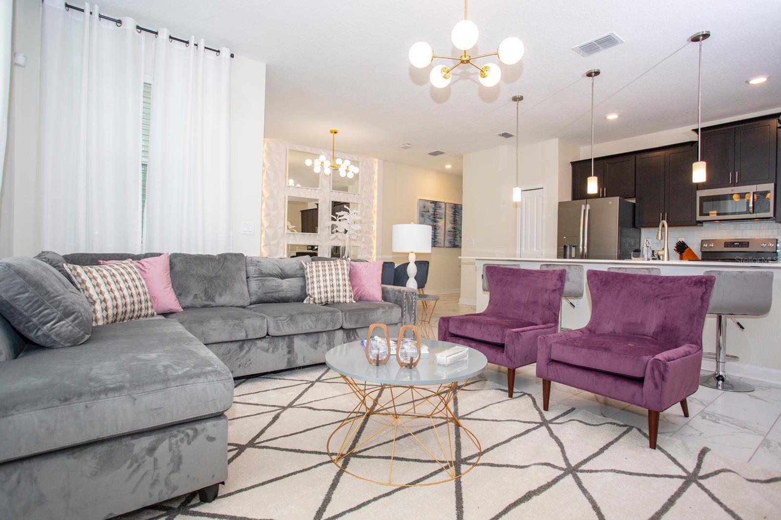Welcome to this stunning 4-bedroom, 3-bath townhome located in the highly desirable ChampionsGate community, perfectly positioned for short-term rental success just minutes from the world’s top theme parks, golf courses, shopping, dining, and entertainment. Built in 2019, this modern, open-concept home offers approximately 1,914 sq?ft of comfortable living space and has been thoughtfully designed to accommodate up to 12 guests comfortably — an ideal layout for vacationers and group stays. • Spacious living room with plenty of natural light — perfect for guests to relax after a day at the parks. • Well-appointed kitchen with modern appliances and ample counter space. • Four generous bedrooms and three full baths designed for comfort and privacy. • In-unit laundry for added convenience. Outdoor & Community Amenities: • Private splash pool, perfect for cooling off or entertaining guests during the Florida sunshine. • Access to ChampionsGate Resort amenities — golf, fitness facilities, pools, playgrounds and more (depending on community privileges). • Premier location near major attractions including Walt Disney World, Universal Studios, and shopping outlets. Investment & Rental Potential: This property’s size, location and configuration make it an excellent short-term rental asset, with strong demand year-round from family vacations, golf trips, and group travel. Don’t miss the opportunity to own a move-in ready home with proven appeal for both personal use and rental income! Financing Available: Cash, Conventional, FHA, Owner Financing, VA Loan.