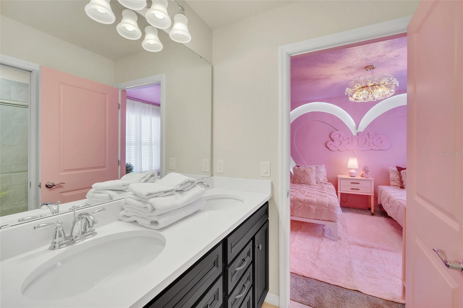 Spectacular Two-Story Home with 9 Bedrooms and Resort-Style Living in Davenport Welcome to this exceptional and expansive two-story home located in Davenport, designed to impress and deliver comfort, space, and unforgettable experiences. With 9 generously sized bedrooms and 6 full bathrooms, this residence is ideal for large families, vacation living, or investment opportunities. The primary suite features a spacious walk-in closet, while the additional bedrooms offer built-in closets and incredible attention to detail. Several bedrooms are beautifully designed with themed décor, including Harry Potter, Avengers, Mickey Mouse, Frozen, Barbie, and more—creating a fun, immersive atmosphere that truly sets this home apart. The home boasts a bright open floor plan with spacious living and dining areas, perfect for entertaining and everyday living. The kitchen is both elegant and functional, featuring solid wood cabinets, stone countertops, and all appliances included. A dedicated game room adds even more entertainment value for family and guests. Step outside to your private backyard oasis, where you’ll find a large private pool with screen enclosure. The outdoor space also includes a covered balcony, complete with an outdoor grill and comfortable seating, making it ideal for relaxing or hosting gatherings year-round. Additional features include a 2-car attached garage and access to an incredible resort-style HOA, offering a massive swimming pool, playground, clubhouse, and multiple amenities designed for leisure and enjoyment. Ideally located near major roads and excellent schools, this home offers both convenience and lifestyle. A rare opportunity to own a truly unique, move-in-ready property that combines space, style, and resort living in one remarkable home.