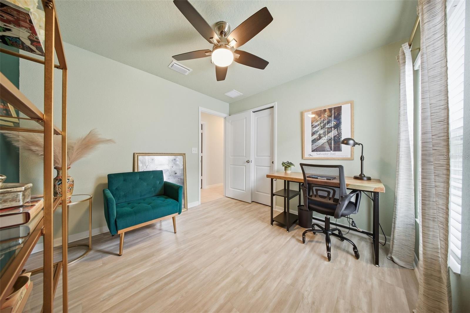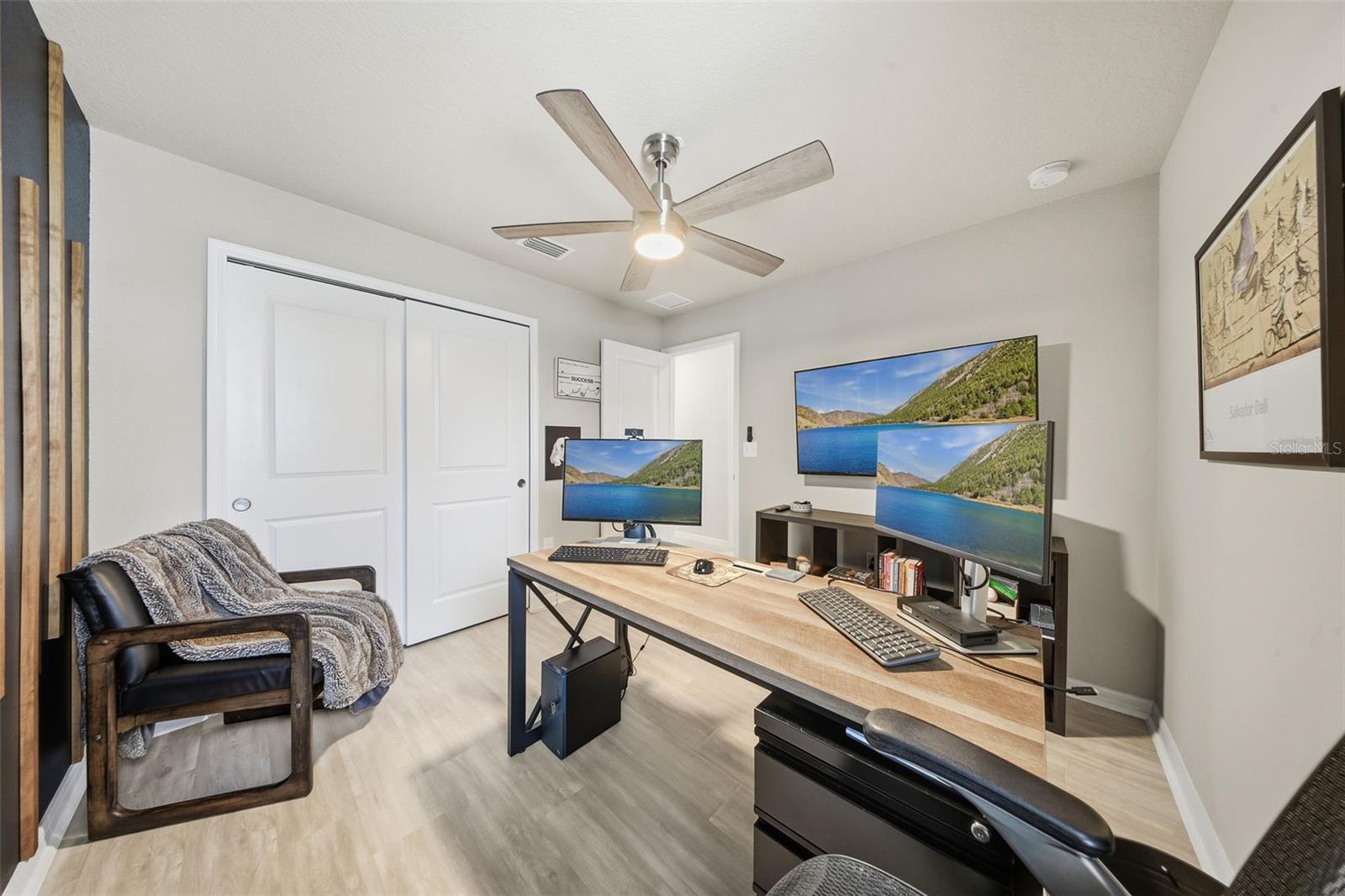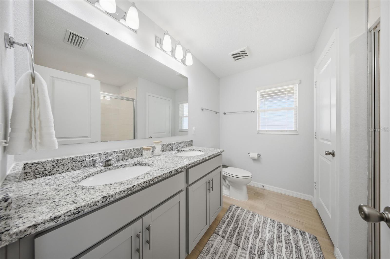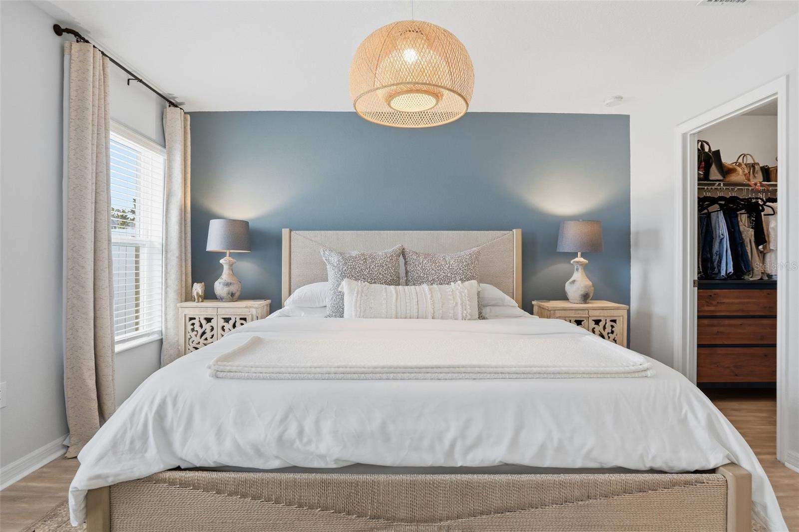 Built in 2022, this contemporary home offers the comfort and efficiency of newer construction along with thoughtful upgrades throughout and no rear neighbors! The open concept layout features a spacious kitchen with 42 inch cabinets, granite countertops, and a large island that is ideal for gathering and everyday living. Ceramic tile runs through the main living areas and bathrooms, with LAMINATE FLOORING upgraded in all bedrooms, including the primary suite, which offers a spacious walk-in closet and a well designed bathroom. Large windows and sliding glass doors provide abundant natural light and lead to a covered lanai, creating a comfortable space to relax outdoors. ADDITIONAL FEATURES include a water softener and treatment system, smart controlled air conditioning, hurricane impact windows, and gutters. The two car garage and extended driveway provides convenient parking, while the VINYL FENCE installed in 2023 and the PAVED PATIO completed in 2024 create a private backyard setting that is perfect for entertaining or enjoying quiet evenings. Conveniently located near US 27 and US 192, this home offers easy access to shopping, dining, medical facilities, and Central Florida attractions.