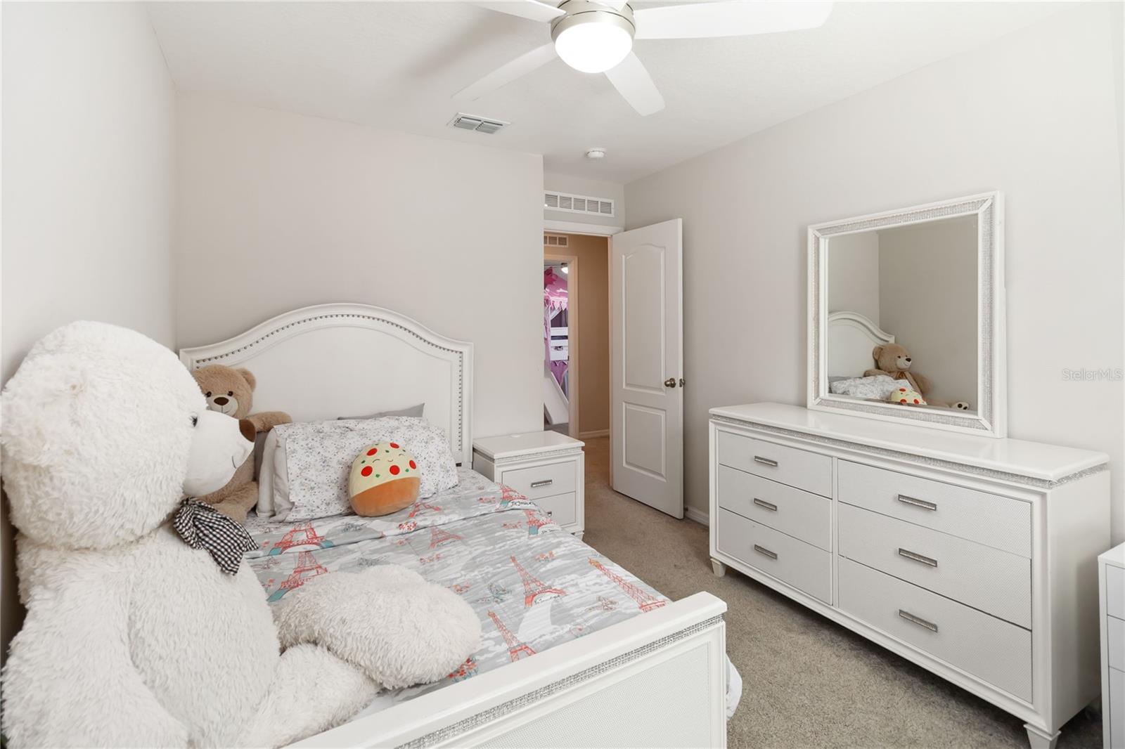 Built in 2021, this two-story home in Vistamar Villages is positioned on a private homesite and offers a functional layout designed for everyday living. The main level features an open kitchen, dining and living area with quartz countertops, a center island, stainless steel appliances and a pantry. The primary suite includes a walk-in closet and a private bath with dual vanities, a walk-in shower and separate water closet. Three additional bedrooms and a full bath provide flexibility for guests, workspace or household needs. Tile flooring runs through the main living areas, with carpet in the bedrooms. Additional features include smart home upgrades, a water softener system and a WiFi-enabled garage opener. The fully fenced backyard and two-car garage add convenience and privacy. Residents of Vistamar Villages enjoy a community pool and playground within a well-maintained neighborhood setting. The location provides convenient access to Walt Disney World Resort, Universal Orlando Resort, SeaWorld Orlando, championship golf courses including Champions Gate Golf Club and Providence Golf Club, as well as shopping, dining and major roadways including Interstate 4 and U.S. Highway 27.