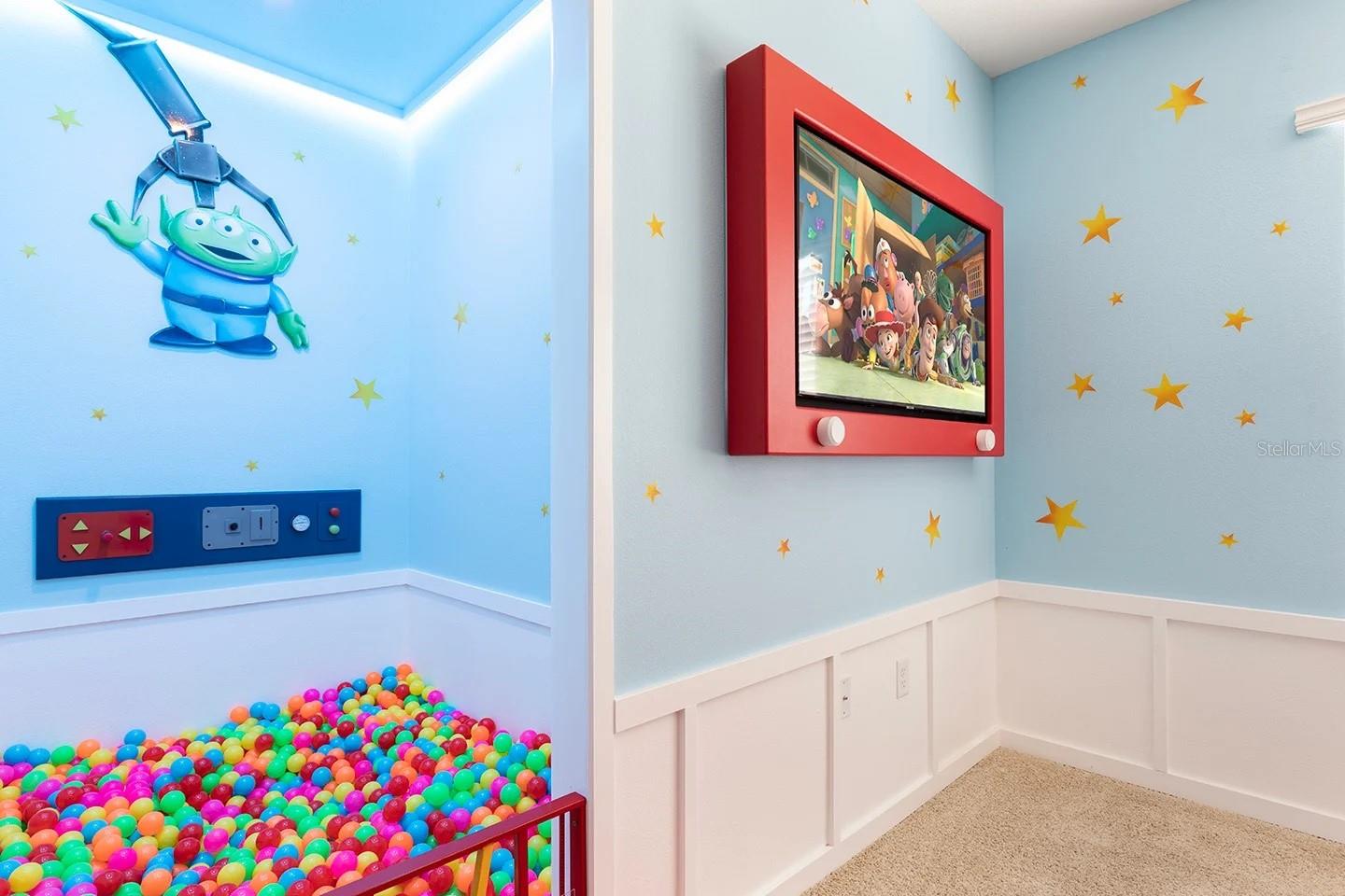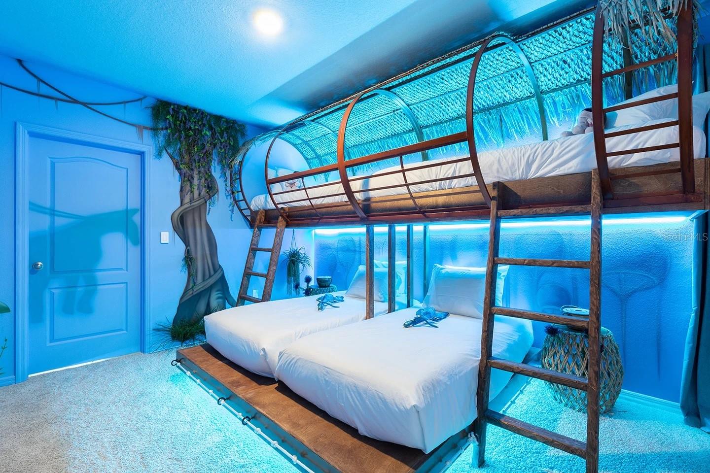 Own a fully furnished 7-bedroom heated pool home in the gated Solterra community in Davenport, positioned on a cul-de-sac lot with no rear neighbors and a conservation backdrop for added privacy. Designed for both lifestyle flexibility and strong vacation rental appeal, this property offers the space, setting, and features buyers consistently search for in Central Florida. The open-concept main living area creates an expansive setting where the kitchen, dining, and family room flow seamlessly together. Generous cabinetry, extensive counter space, and direct sightlines to the living area make the kitchen ideal for hosting and group stays. The dining space comfortably accommodates larger gatherings, enhancing functionality for everyday living or guest occupancy. The thoughtfully distributed bedroom layout provides privacy and versatility across multiple areas of the home. The primary suite includes an en-suite bath and spacious proportions, while additional bedrooms allow for flexible sleeping arrangements. Two custom-themed bedrooms inspired by Toy Story and Avatar introduce a distinctive design element that enhances guest experience and increases vacation rental visibility. A dedicated entertainment space adds further versatility for recreation or multi-purpose use. Outdoors, the private screened heated pool extends the living space and allows for year-round enjoyment. The conservation view behind the home creates a more private outdoor setting compared to interior lots within the community. Residents and guests of Solterra enjoy access to gated resort-style amenities including a lagoon-style pool complex, clubhouse, fitness center, and recreational areas. Conveniently located with access to US-27 and I-4, the property connects to Central Florida attractions, golf courses, shopping centers, dining options, and everyday conveniences. Fully furnished and move-in ready. 3D virtual tour and floor plans available for detailed layout review. Schedule your private showing to experience the cul-de-sac location, conservation setting, themed bedrooms, and heated pool in person.