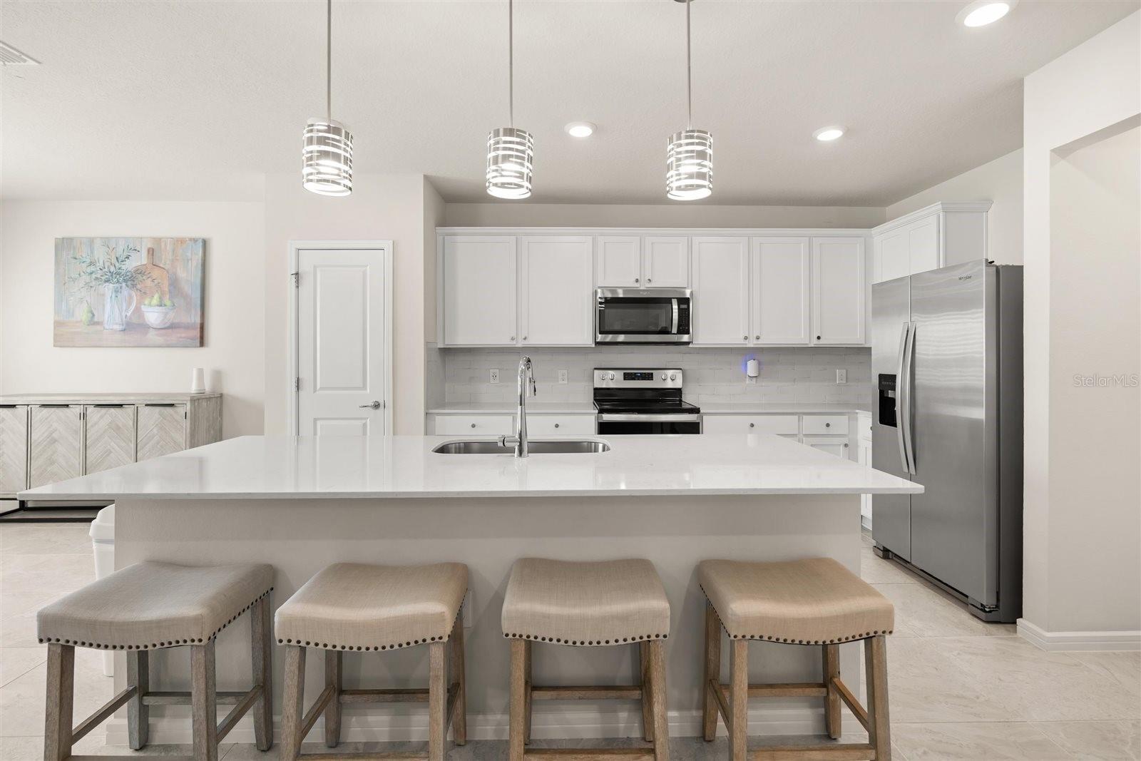 Welcome to your new home in the desirable Belle Haven subdivision, located just minutes from Posner Park and Champions Gate which features shopping, an upscale cinema, and plenty of dining options. For the avid golfer, nearby Reunion offers world class courses designed by Jack Nicklaus, Bubba Watson, and Arnold Palmer with top tier clubhouse amenities. Fancy a day at the theme parks or an evening at Disney Springs? You’re less than 30 minutes away! This spacious 5-bedroom, 3-bathroom home with a 2-car garage is better than new. No need to wait for new construction and you still get to enjoy a meticulously maintained home that feels as new as the day it was built. The bright living room features abundant natural light and overlooks a screened in patio and the private fenced backyard. With a premium lot, you won’t have any rear neighbors adding to the feeling of privacy. The kitchen is designed for entertaining with an open layout, complete with granite countertops, subway tile backsplash, a large center island with plenty of available seating, breakfast bar, and stylish pendant lighting. Rounding out the ground level is the bedroom and full bathroom, perfect for giving guests a little privacy. The primary suite is located upstairs and features ample closet space and large en suite bathroom with dual sinks and a walk-in shower. Also located upstairs, the spacious laundry room and 3 additional bedrooms with their own shared bathroom. Community amenities include a resort-style pool with cabana, open green spaces, and a playground.