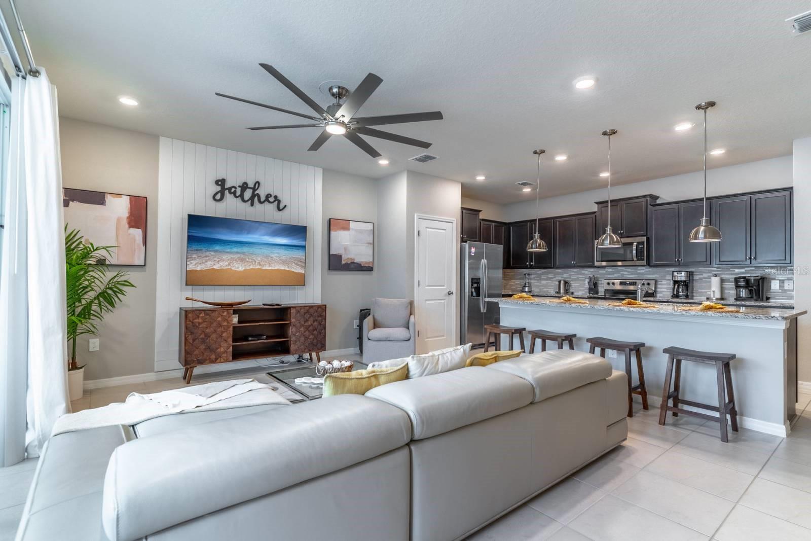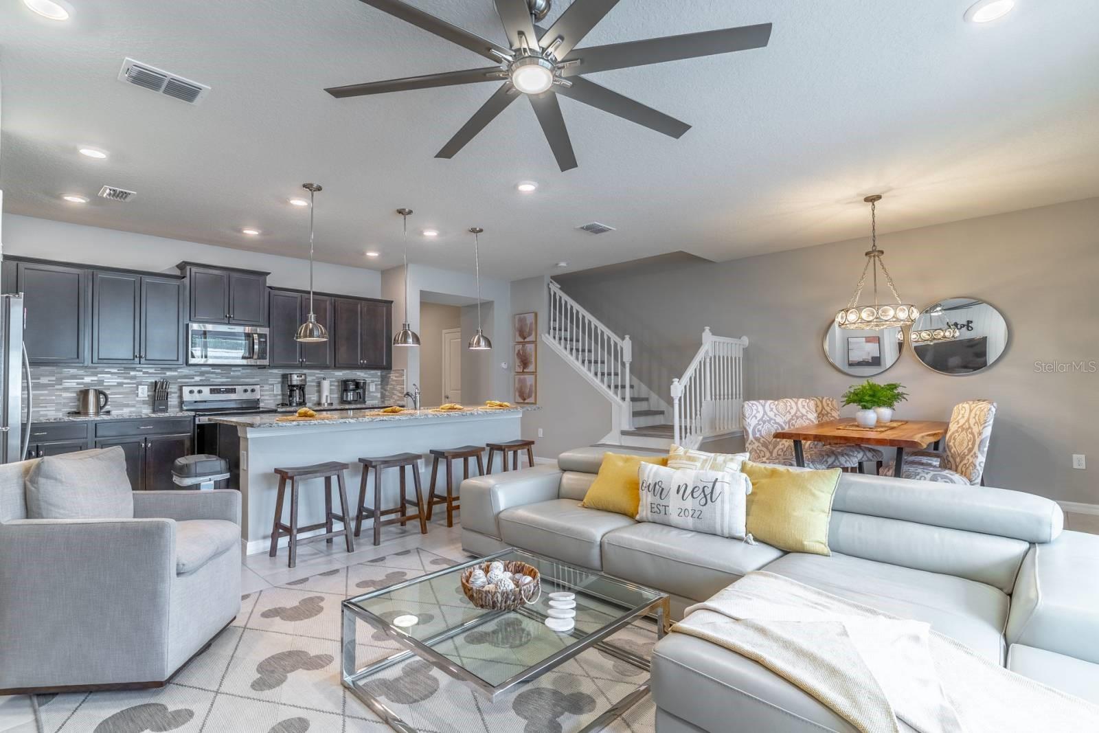Welcome to Windsor Island Resort—where luxury, location, and lifestyle come together in one of Central Florida’s most sought-after vacation communities. Perfectly positioned just moments from the clubhouse, this beautifully updated and professionally themed 5-bedroom, 4.5-bath townhome offers not only convenience, but a true resort experience right at your doorstep. Built in 2021 and offered fully furnished and turn-key, this home stands out with its tasteful upgrades and eye-catching themed rooms designed to elevate both guest experience and rental performance. The open-concept layout features a bright and spacious living area that flows seamlessly into a modern kitchen complete with granite countertops, oversized island, stainless steel appliances, and ample seating—ideal for entertaining or hosting large groups. Step outside through sliding glass doors to your private screened-in pool and lanai, creating the perfect indoor-outdoor living space. With direct access to a convenient pool bath, this setup is designed for both comfort and functionality. Downstairs, you’ll find one bedroom and a full bath for added convenience, while upstairs features additional bedrooms, including spacious suites, along with a versatile loft/game area—perfect for relaxing after a day at the parks. Each space has been thoughtfully designed with stylish finishes and high-quality furnishings, making this home truly move-in or rental ready. Located just a short walk to the resort’s world-class amenities, Windsor Island offers an unmatched lifestyle featuring a resort-style pool, lazy river, water slides, splash pad, fitness center, mini golf, arcade, sports courts, tiki bar, and on-site dining. Guests and owners alike enjoy the convenience of being minutes from Disney, major attractions, shopping, and dining. Whether you’re looking for a high-performing short-term rental or your own private vacation retreat, this home checks every box—with premium location, standout design, and exceptional amenities
