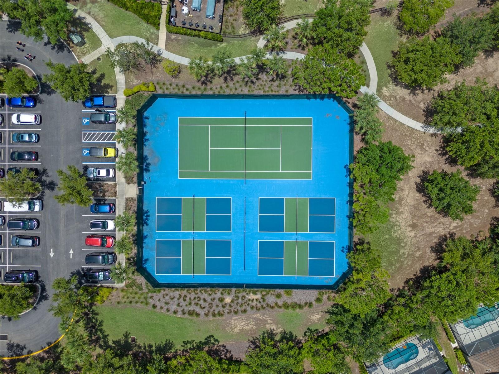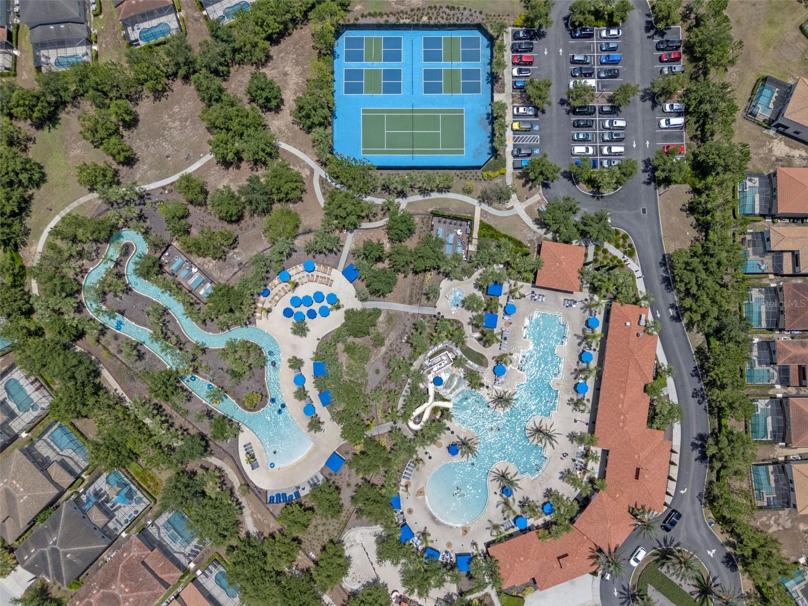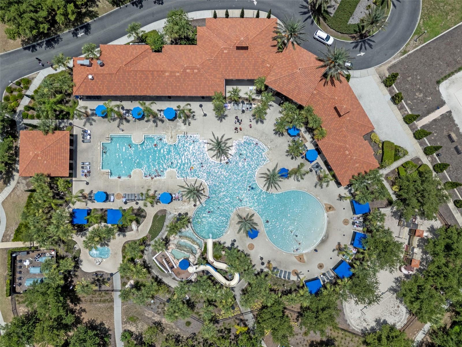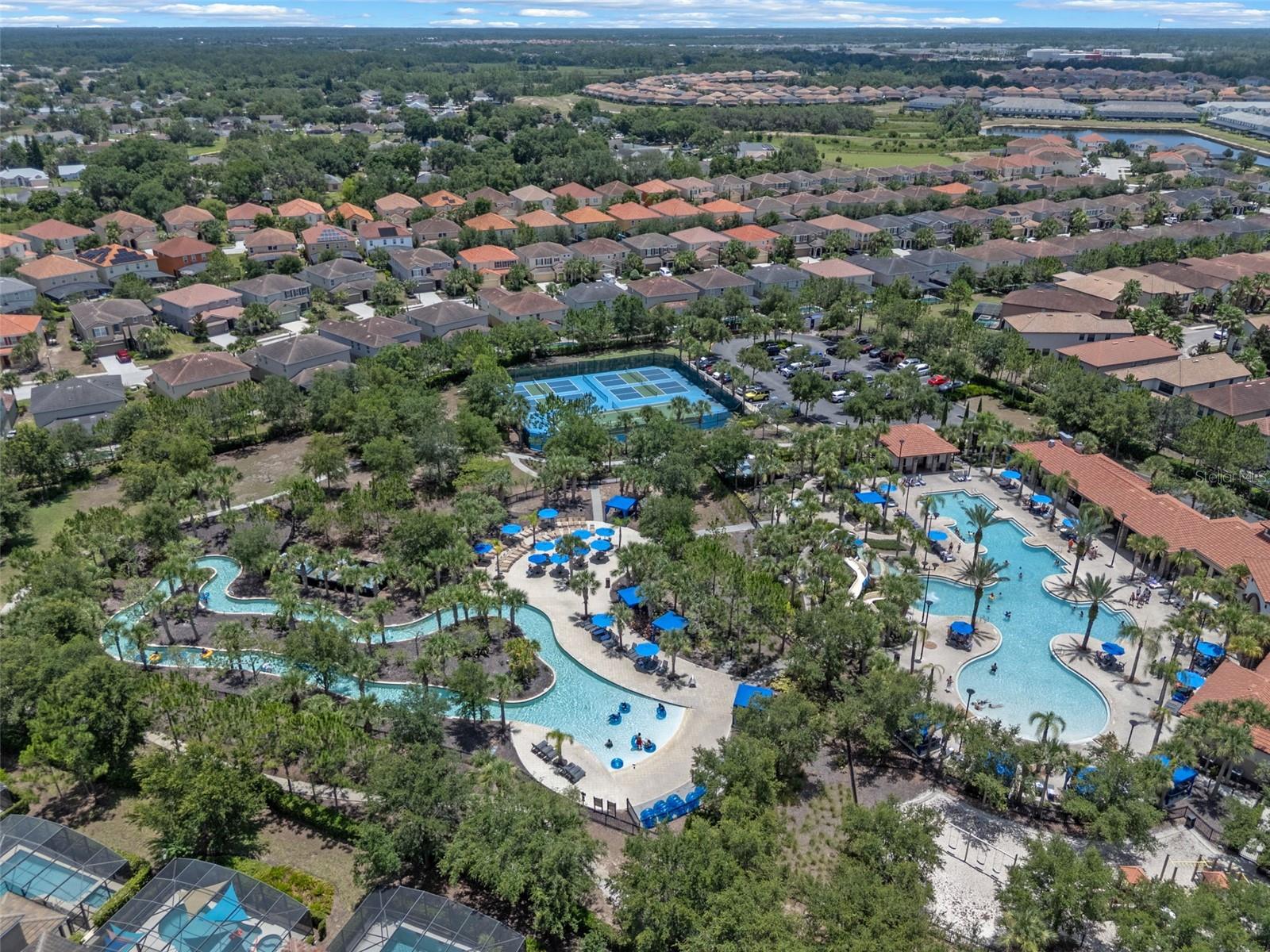 Welcome to Your Dream Home in Solterra Resort! Nestled within the prestigious, guard-gated community of Solterra Resort, this exceptional house offers a rare gem on a nearly 1/3 acre lot, ensuring unmatched privacy with no rear neighbors. This stunning property serves as both an exquisite primary residence and a lucrative short-term rental investment opportunity. As you step into the expansive backyard, prepare to be captivated by one of the largest outdoor spaces in the community, designed for your ultimate enjoyment. The magnificent oversized pool glistens under the sun, while the raised heated spa with its tranquil spillover water feature beckons you to unwind. The generously sized pool deck is amazing, and the luxurious lanai, adorned with two Sunsetter brand remote-controlled retractable awnings is your personal oasis for relaxation and entertaining. Inside, the home exudes elegance with its beautifully recent remodeled kitchen that boasts a harmonious blend of new cabinets and a chic combination of granite, quartz, and marble countertops. The oversized island makes it an entertainer's paradise, where culinary creativity comes alive. With spacious rooms designed for leisure, two downstairs bedrooms provide flexibility for family or guests, while an additional lounge area adds to the home's versatility. Venture upstairs to discover the serene primary bedroom, featuring a spacious east-facing balcony. The upstairs living room, flanked by three additional en suite bedrooms, offers a perfect sanctuary for family and friends. Living in Solterra Resort means embracing a vibrant lifestyle enriched with amenities. The spectacular clubhouse features a heated resort pool with a thrilling slide and beach entry, a lazy river pool, and well-maintained tennis and pickleball courts. Enjoy a workout in the fitness center or dine leisurely at the on-site café with both dine-in and take-out options. For sun-lovers, furnished rental cabanas and a sand volleyball court enhances the community's allure. When you're ready to explore beyond the community, you're just 20 minutes from Disney and a mere 7 minutes from an array of dining and shopping choices. This impeccably maintained property invites you to experience a luxurious lifestyle in one of the most sought-after locations in Central Florida. Experience the Solterra Lifestyle Today! Don’t miss your chance to own one of the most beautiful and well-cared-for homes in Solterra Resort. Schedule your private showing and embrace the unparalleled charm and comfort this exceptional property has to offer!