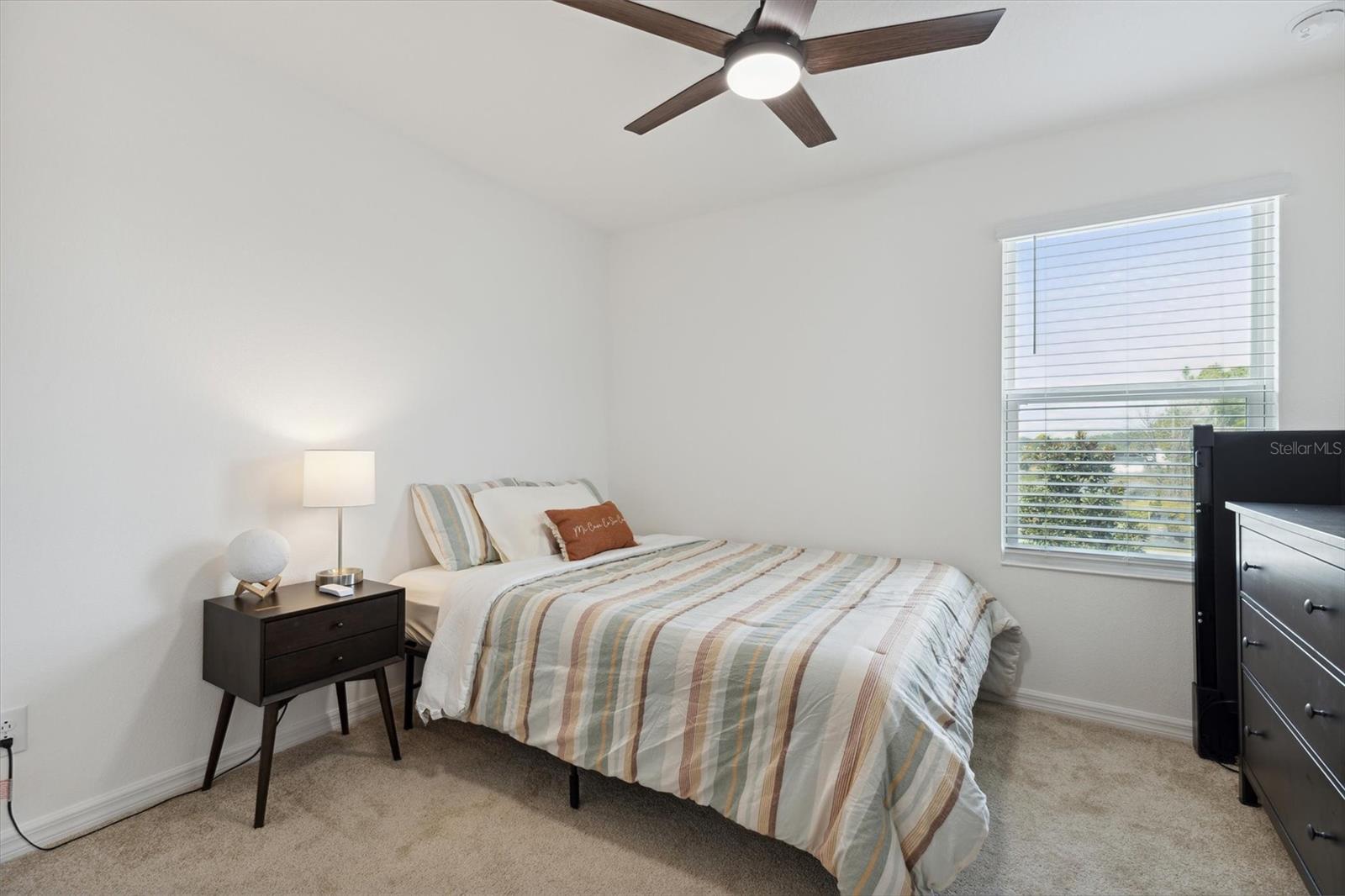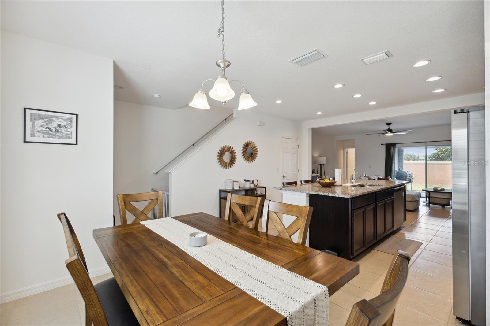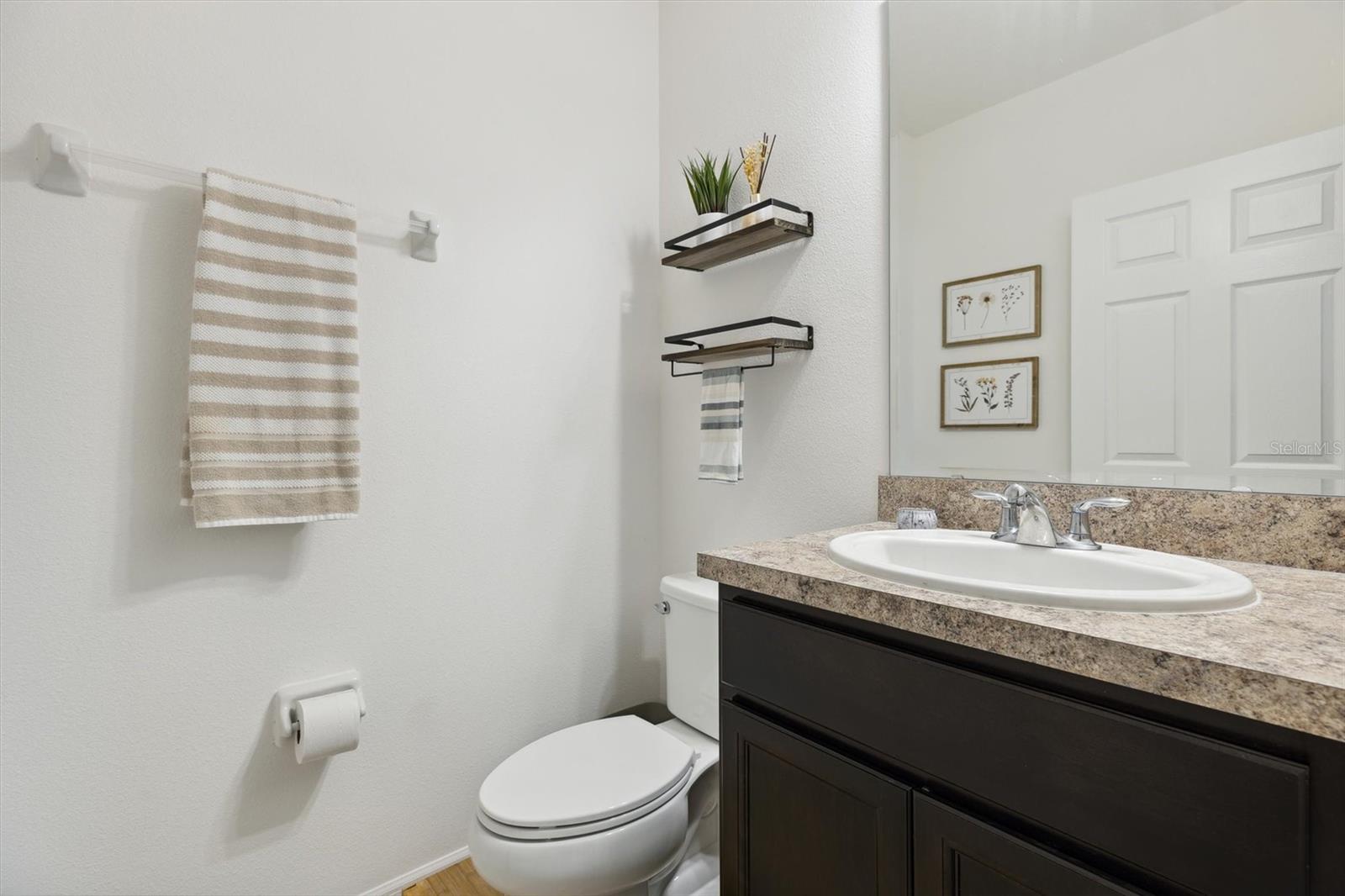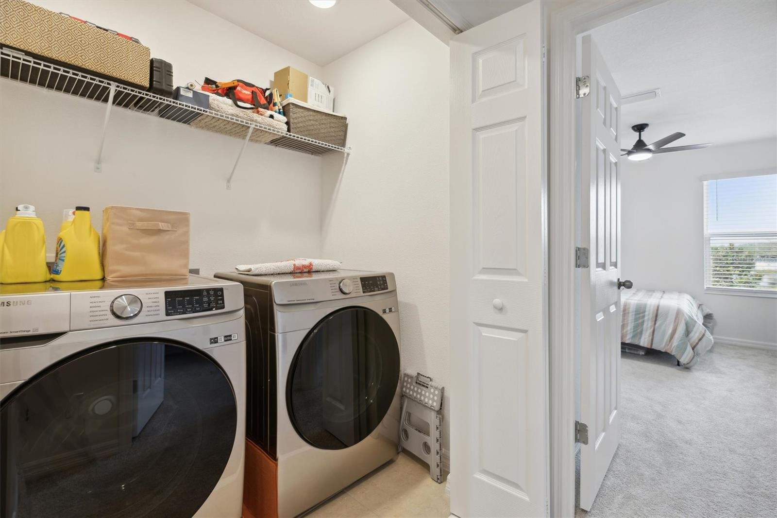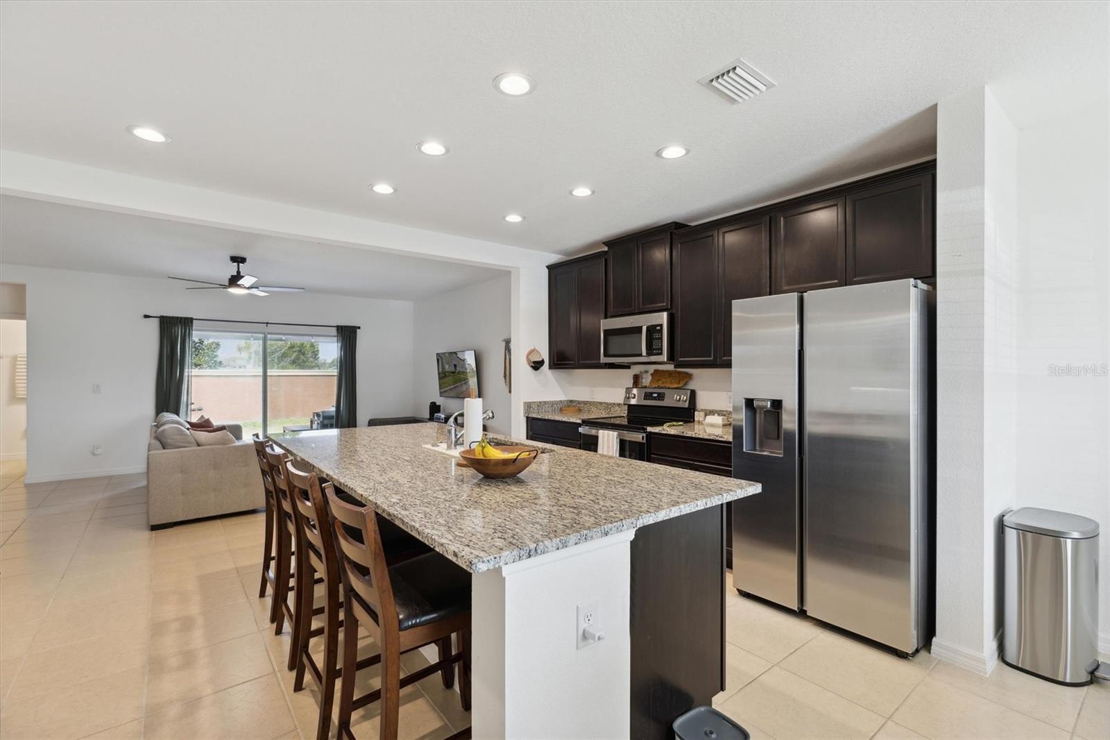Step into this stunning townhome nestled within the popular Williams Preserve gated community in Davenport, built in 2022! Revel in the seamless flow of the open floor plan, adorned with tile flooring throughout the first floor, featuring sleek espresso cabinets, granite countertops, stainless steel appliances, and stylish lighting fixtures. The inviting living room showcases sliding glass doors, with no rear neighbors. Ascend the carpeted stairs to discover three bedrooms on the second floor, including a luxurious master suite complete with an en-suite bathroom and a spacious walk-in closet. The en-suite bathroom features a walk-in shower with sliding doors for added elegance. Additional highlights include generously sized bedrooms, a guest bathroom with a shower and tub combination, ceiling fans, a convenient laundry closet, open parking, and a half bath on the main level. Ideal for both residential living and investment purposes, this property promises versatility. Residents of this community enjoy access to walking trails, a picturesque community pool, and a playground. Conveniently located across from Davenport School of the Arts, this home offers easy access to Hwy 27, I-4, and US 192, as well as excellent shopping and dining options. Don't miss the opportunity to make this exceptional townhome yours—schedule your appointment today