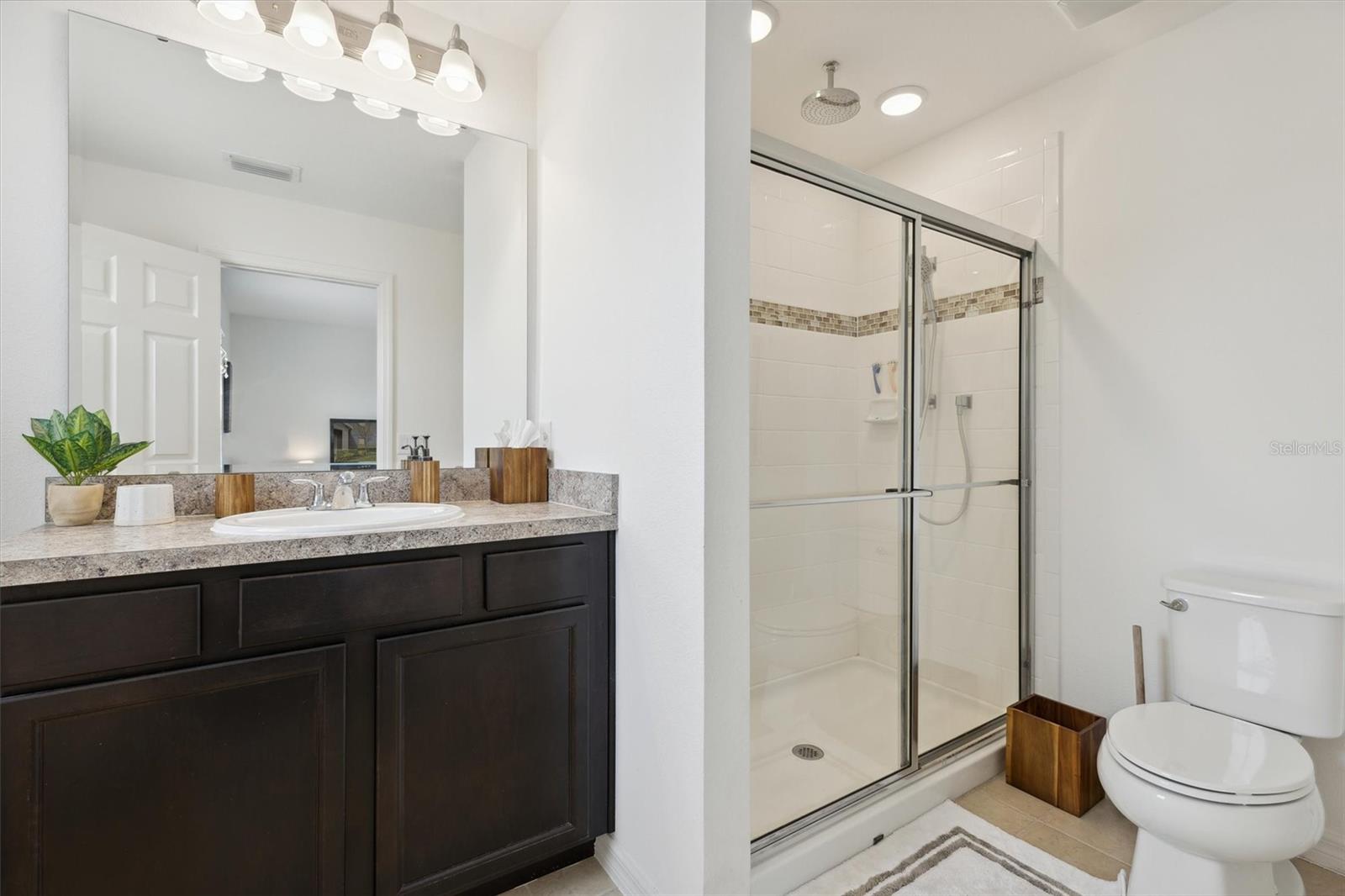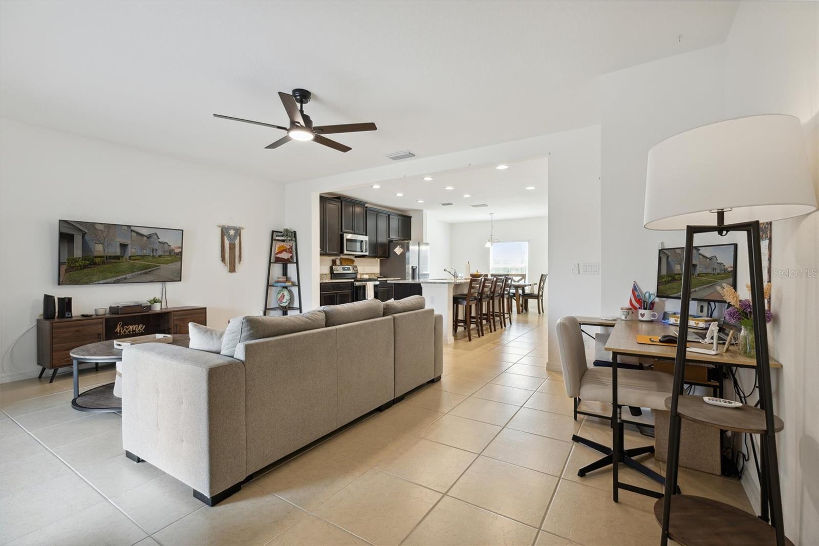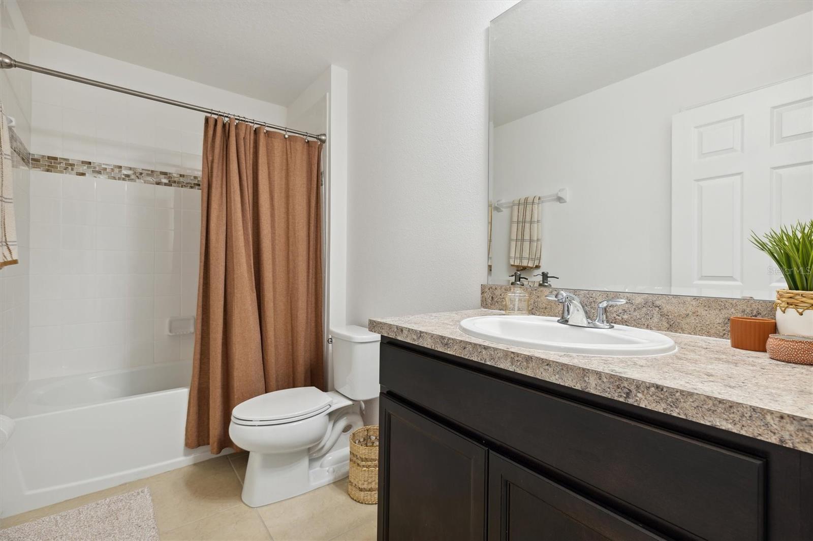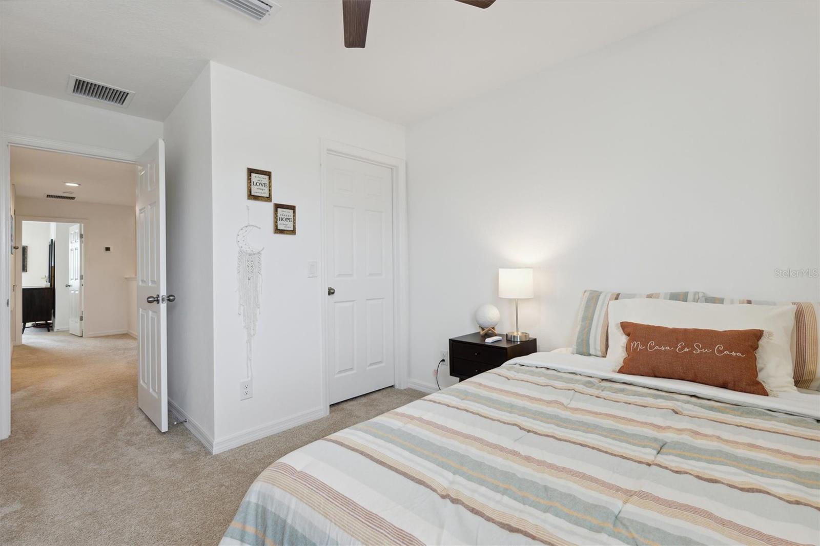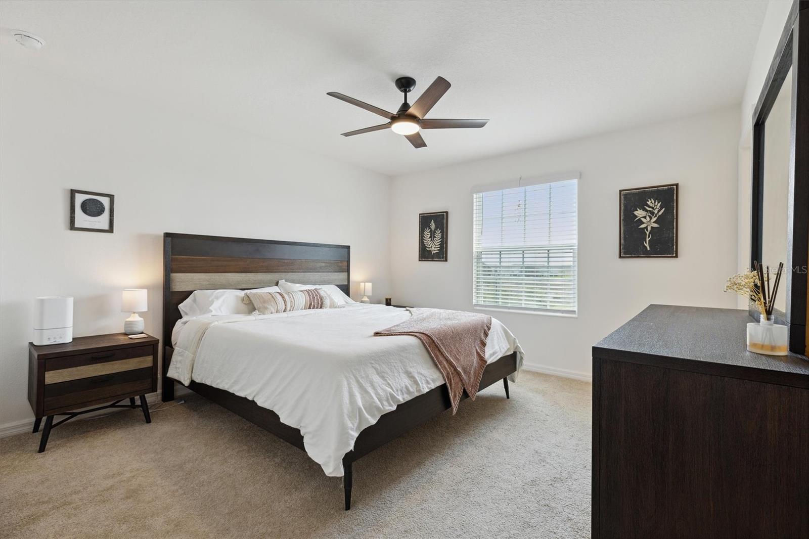 Step into this stunning townhome nestled within the popular Williams Preserve gated community in Davenport, built in 2022! Revel in the seamless flow of the open floor plan, adorned with tile flooring throughout the first floor, featuring sleek espresso cabinets, granite countertops, stainless steel appliances, and stylish lighting fixtures. The inviting living room showcases sliding glass doors, with no rear neighbors. Ascend the carpeted stairs to discover three bedrooms on the second floor, including a luxurious master suite complete with an en-suite bathroom and a spacious walk-in closet. The en-suite bathroom features a walk-in shower with sliding doors for added elegance. Additional highlights include generously sized bedrooms, a guest bathroom with a shower and tub combination, ceiling fans, a convenient laundry closet, open parking, and a half bath on the main level. Ideal for both residential living and investment purposes, this property promises versatility. Residents of this community enjoy access to walking trails, a picturesque community pool, and a playground. Conveniently located across from Davenport School of the Arts, this home offers easy access to Hwy 27, I-4, and US 192, as well as excellent shopping and dining options. Don't miss the opportunity to make this exceptional townhome yours—schedule your appointment today