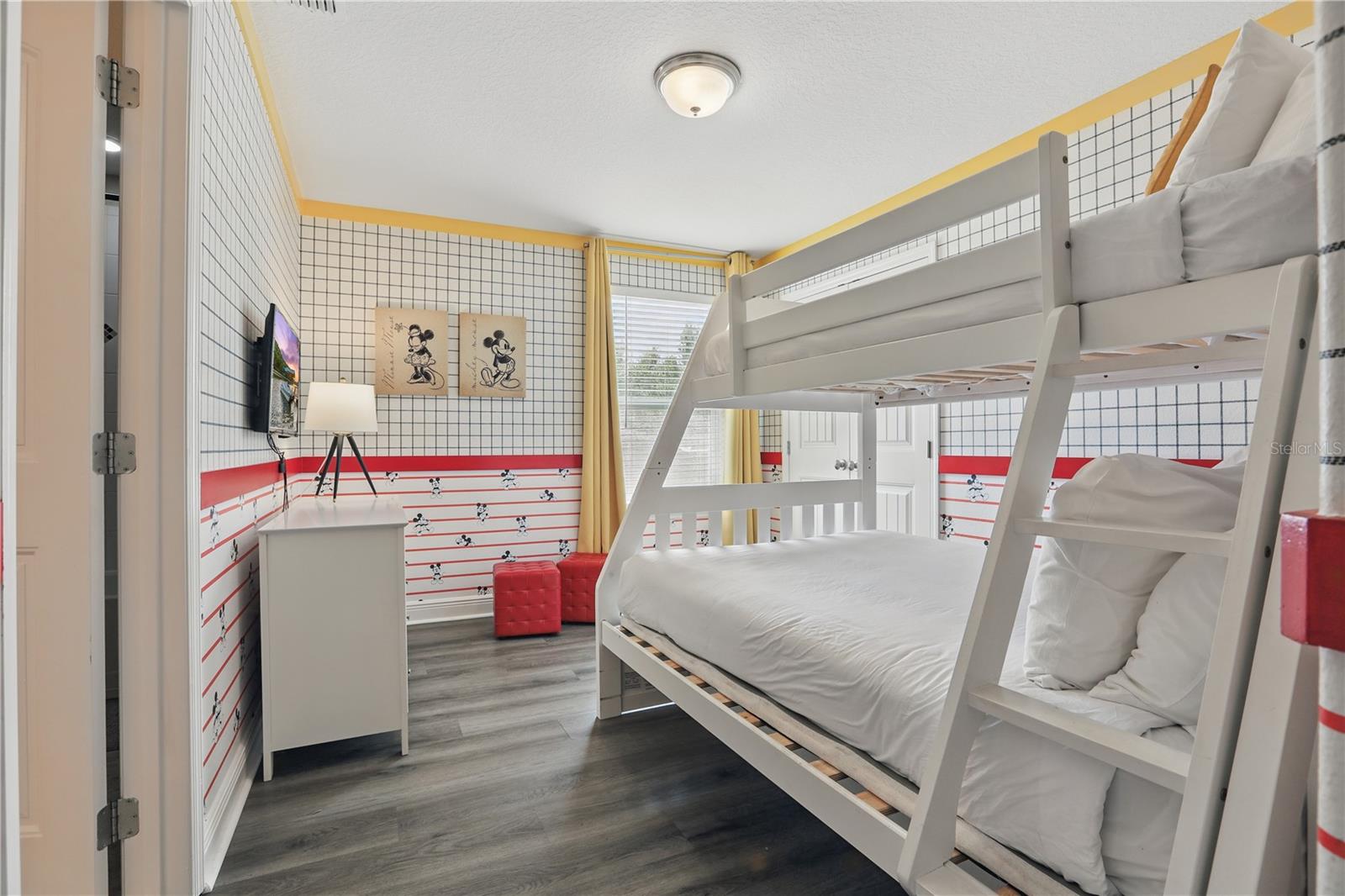 Calling all investors! Are you looking for a turnkey short-term rental near all the theme parks in Orlando? You’ve found the one! This fully furnished 3,000+sqft home has a pool and a rental history available. Solterra Resort is one of Central Florida’s best vacation home communities, offering amenities like a massive beach-entry pool, a lazy river, a water slide, a clubhouse, a fitness center, tennis/pickleball/volleyball courts, a playground, cafes, walking trails, 24-hr security and more. 4147 Oaktree Drive features a great open layout with 6 bedrooms (2 owner’s suites), LVP & tile floors, contemporary fixtures, custom millwork and BONUS rec space. The well-equipped kitchen anchors the main level and boasts granite countertops, stainless appliances & a large curved island with plenty of seating. The kitchen overlooks the spacious living room, which has a slider leading to the pool deck. This backyard oasis includes a covered lanai for dining, plus a beautiful screened-in pool & spa, with plenty of deck space to lounge in the sun. The property feels very private, as the lot is lined by thick trees and there are no immediate back neighbors. Back inside, the main-level owner’s bedroom has private access to the pool deck and includes an ensuite with dual sinks, a custom-tiled shower and a separate soaking tub. At the top of the stairs, you’ll find a loft area set up as another living/media room. The stunning second owner’s bedroom offers a private ensuite, while the guest rooms are configured with a queen, bunks or 2 twin beds. The guest rooms have access to a cleverly designed Jack & Jill or full hallway bathroom with double sinks. Back on the main level, the formal dining room offers lots of room to host large groups, and the Hogwarts-themed garage can be used as a BONUS rec room with a TV plus table & video games. What a great location! Solterra Resort is about 10 mins from all the shopping and dining at Champions Gate, with numerous golfing options close by, too. You’ll be less than 12 miles from Disney World, 16 miles from Sea World and 20 miles from Universal Studios. Whether you are looking for a primary home in Central Florida or a cash-flowing vacation rental, this move-in-ready home fits the bill! Schedule your showing now.
