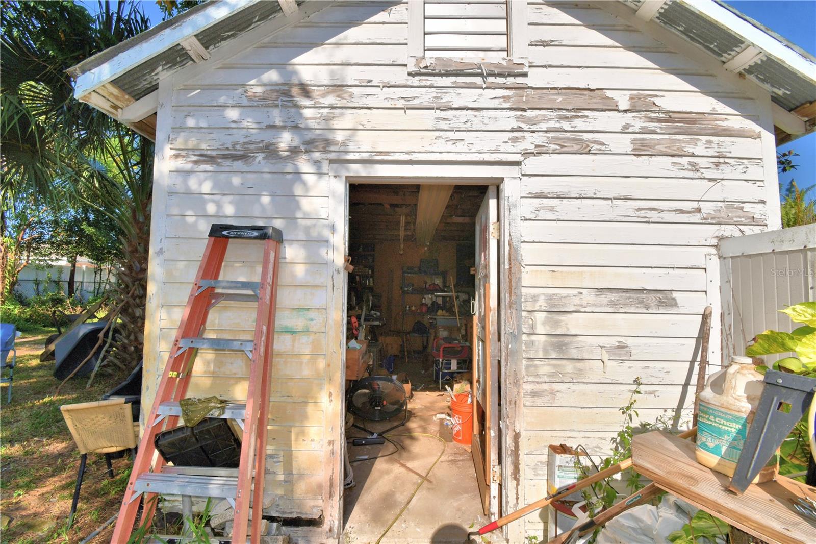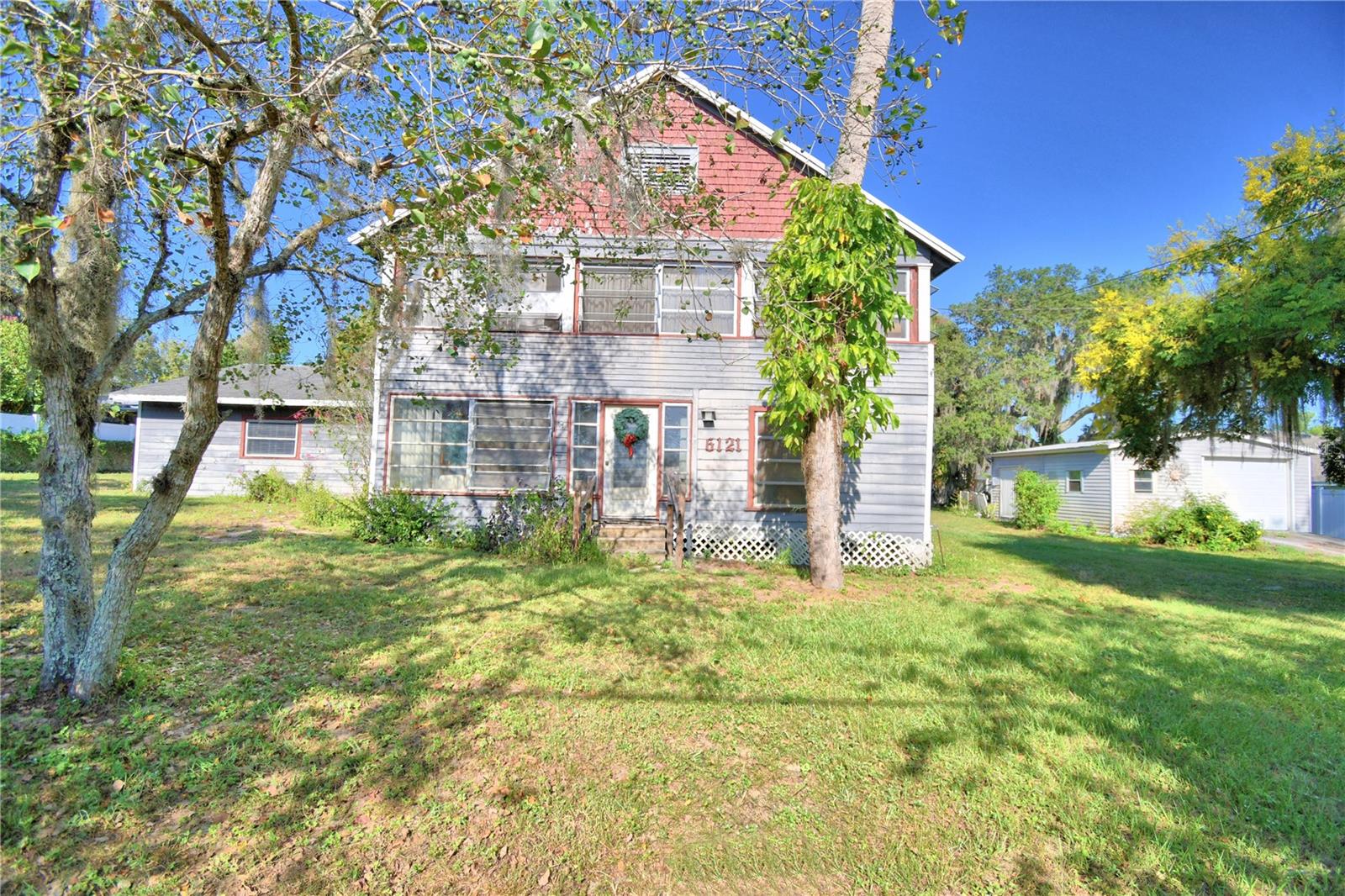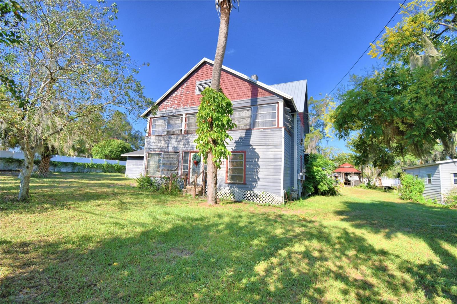 In the heart of GROWING Loughman/DAVENPORT area, this 117 year old historic home is located in the Champions Gate corridor and centrally located near Hwy 27, I-4 and 17/92. Home has an updated kitchen with locally made cabinets and built-in bench/table. Downstairs porch with an upstairs balcony which offers two bedrooms upstairs with a built in book case along the wall up the stairs. The Master Bedroom with walk-in closet located downstairs. Bathroom has a walk-in shower. 28x28 Florida Room with bar and built in shelves offers plenty of room for entertaining with family and friends. Home has some original craftsmanship still in place with oak wood plank floors in Master Bedroom and inside Laundry room. Property is on .62 acre with a detached garage and storage. Gazebo, two storage sheds and workshop located around the property. Covered Double Porch with ceiling fans to enjoy the mature landscaping. Metal Roof was installed 2/2018. AC in place but inoperable at this time. Wall Units are being used. Home has lots of potential AS-IS or Replaced/Rebuilt into something NEW and awaits NEW OWNERS. CASH ONLY.
