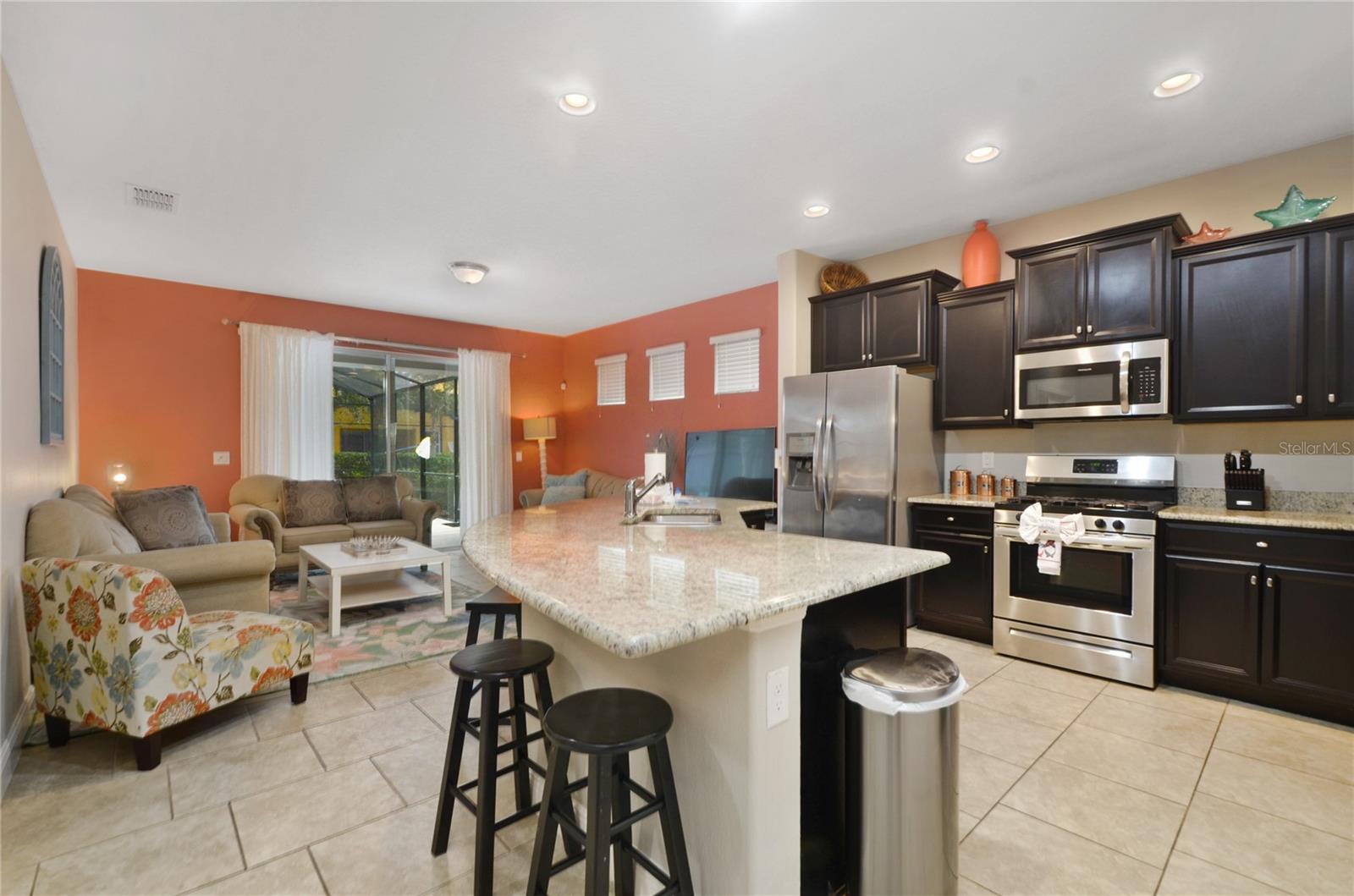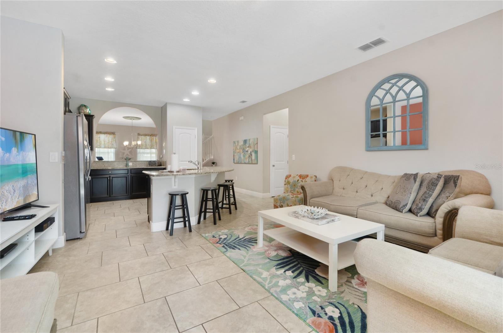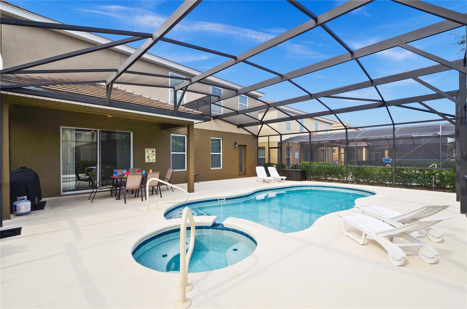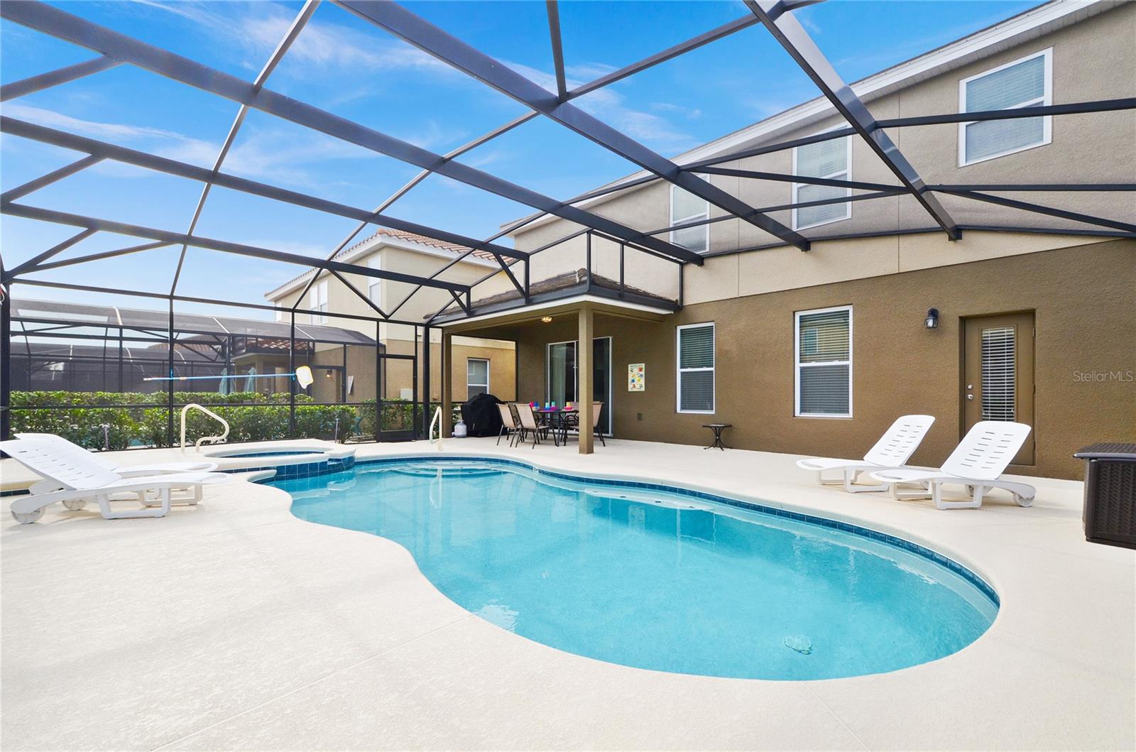 Check out this fantastic vacation experience for your year round personal use or a great investment in Solterra Resort! 5 bedrooms, 4 and a half bathrooms in this contemporary colonial is only scratching the surface. 2 master suites, one on the main floor and one upstairs. Large kitchen with granite counters, tons of counter and cabinet space, a gas range and all stainless steel appliances are waiting for you! Ceramic tile throughout the main floor and upstairs you have the large loft for movie time and the 3 additional spacious bedrooms with carpeting. Outside you have a beautiful covered patio to enjoy the heated pool and spa all screened in! When you are ready to entertain you can use the garage that is all set up for a large game room. Oh, and the games are all included! This amazing home is being sold fully furnished and ready to move into or lease! Located within minutes of all of Central Florida's Main attractions, yet it retains the quiet and serene setting to soothe and relax. Only a few short minutes from Walt Disney World and a short drive to Orlando's other famous attractions like Universal Studios, Seaworld, and Legoland. This Solterra Resort villa sits nestled off Interstate 4 and Hwy 27, which has easy access to shops, restaurants, and world class golf!