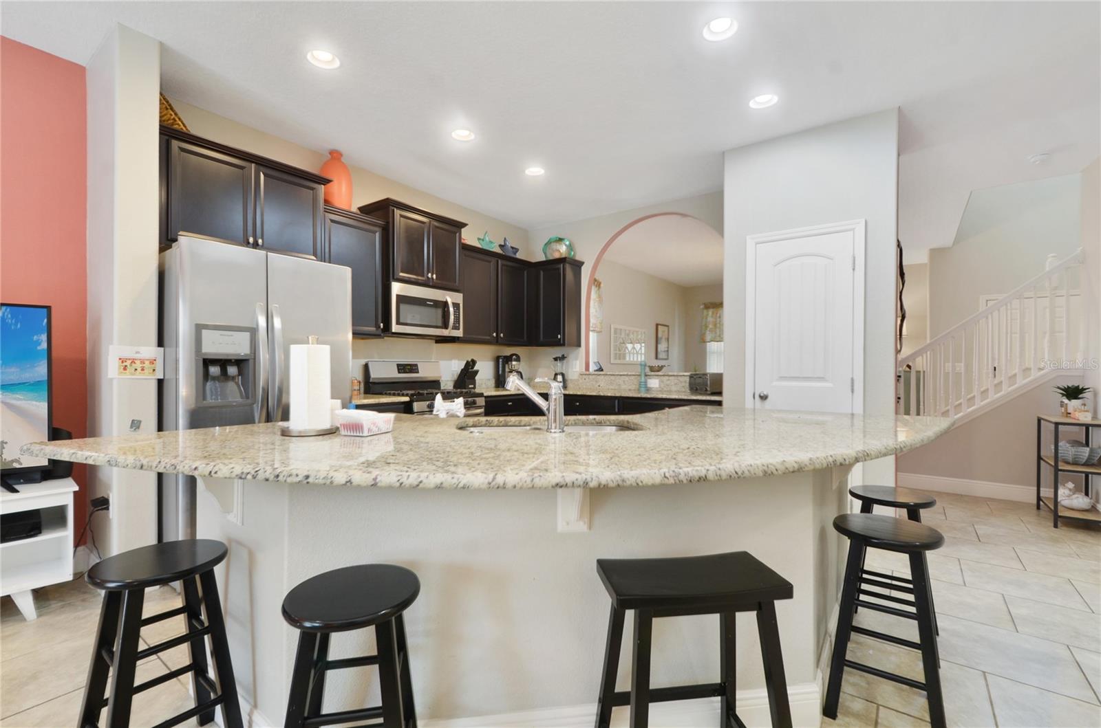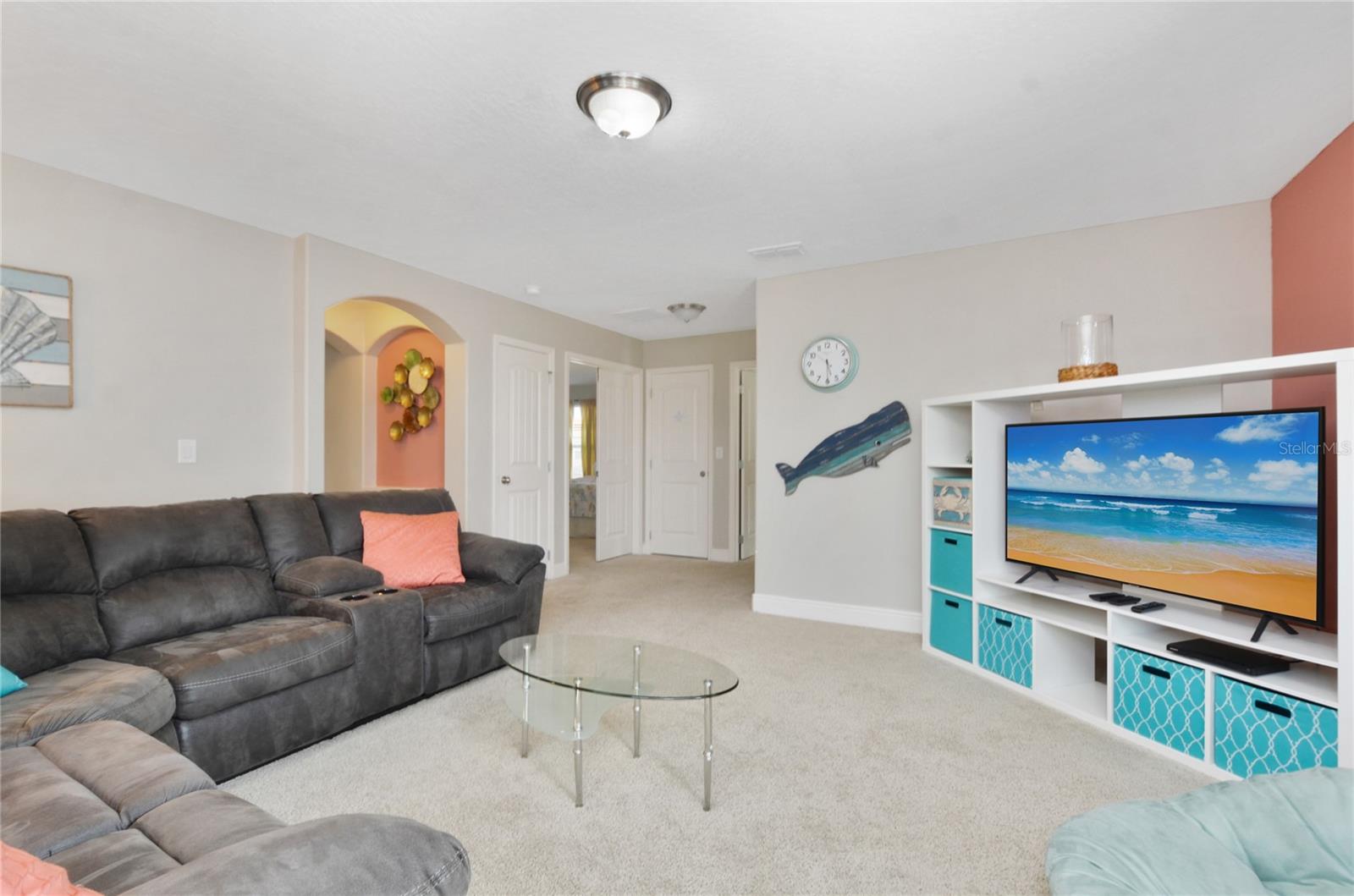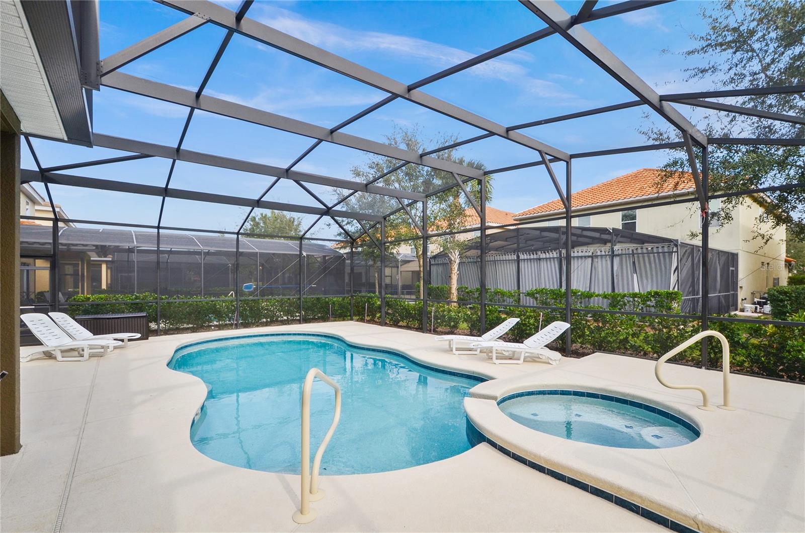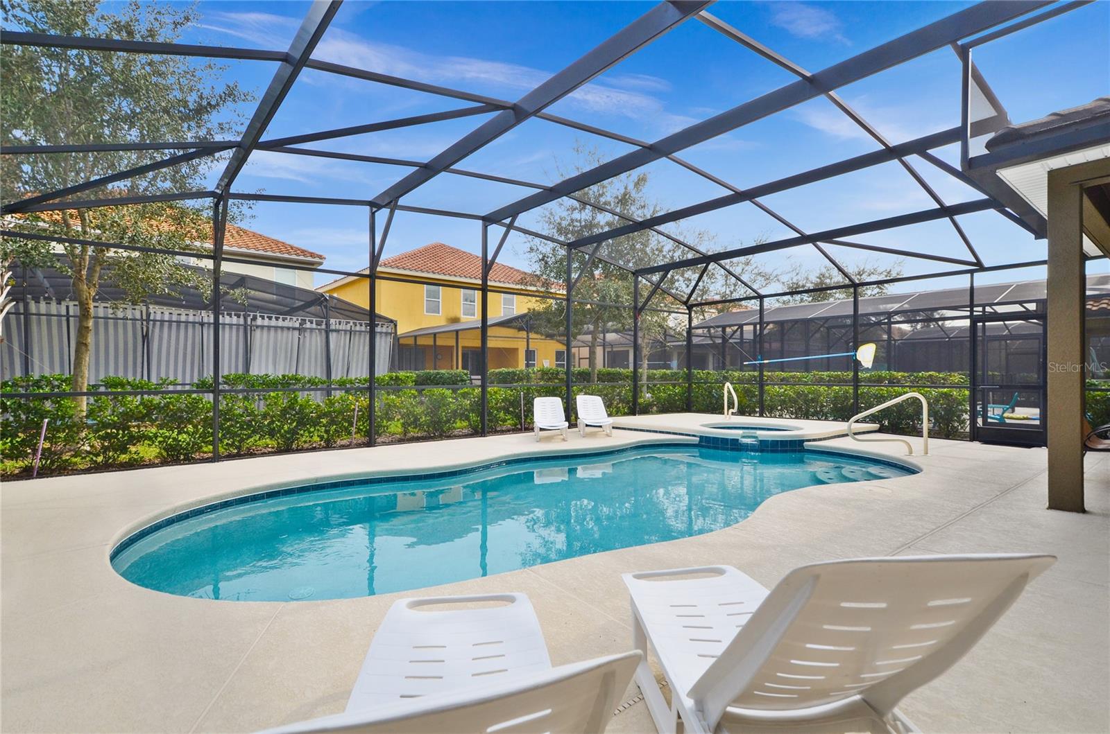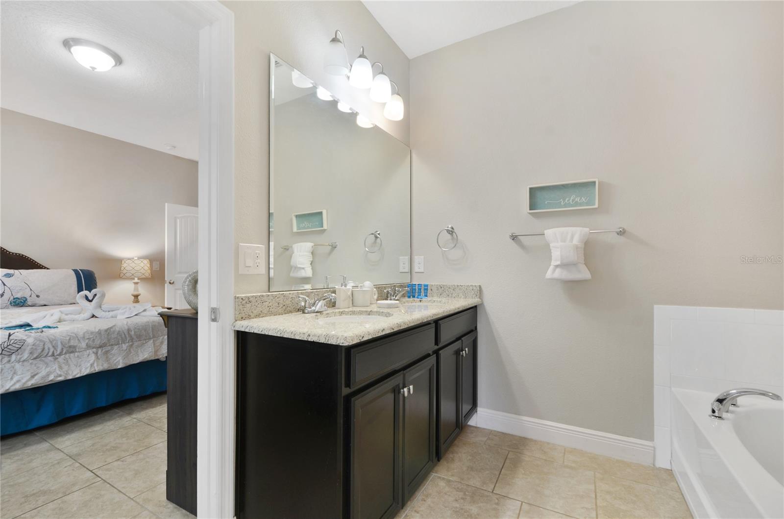 Check out this fantastic vacation experience for your year round personal use or a great investment in Solterra Resort! 5 bedrooms, 4 and a half bathrooms in this contemporary colonial is only scratching the surface. 2 master suites, one on the main floor and one upstairs. Large kitchen with granite counters, tons of counter and cabinet space, a gas range and all stainless steel appliances are waiting for you! Ceramic tile throughout the main floor and upstairs you have the large loft for movie time and the 3 additional spacious bedrooms with carpeting. Outside you have a beautiful covered patio to enjoy the heated pool and spa all screened in! When you are ready to entertain you can use the garage that is all set up for a large game room. Oh, and the games are all included! This amazing home is being sold fully furnished and ready to move into or lease! Located within minutes of all of Central Florida's Main attractions, yet it retains the quiet and serene setting to soothe and relax. Only a few short minutes from Walt Disney World and a short drive to Orlando's other famous attractions like Universal Studios, Seaworld, and Legoland. This Solterra Resort villa sits nestled off Interstate 4 and Hwy 27, which has easy access to shops, restaurants, and world class golf!
