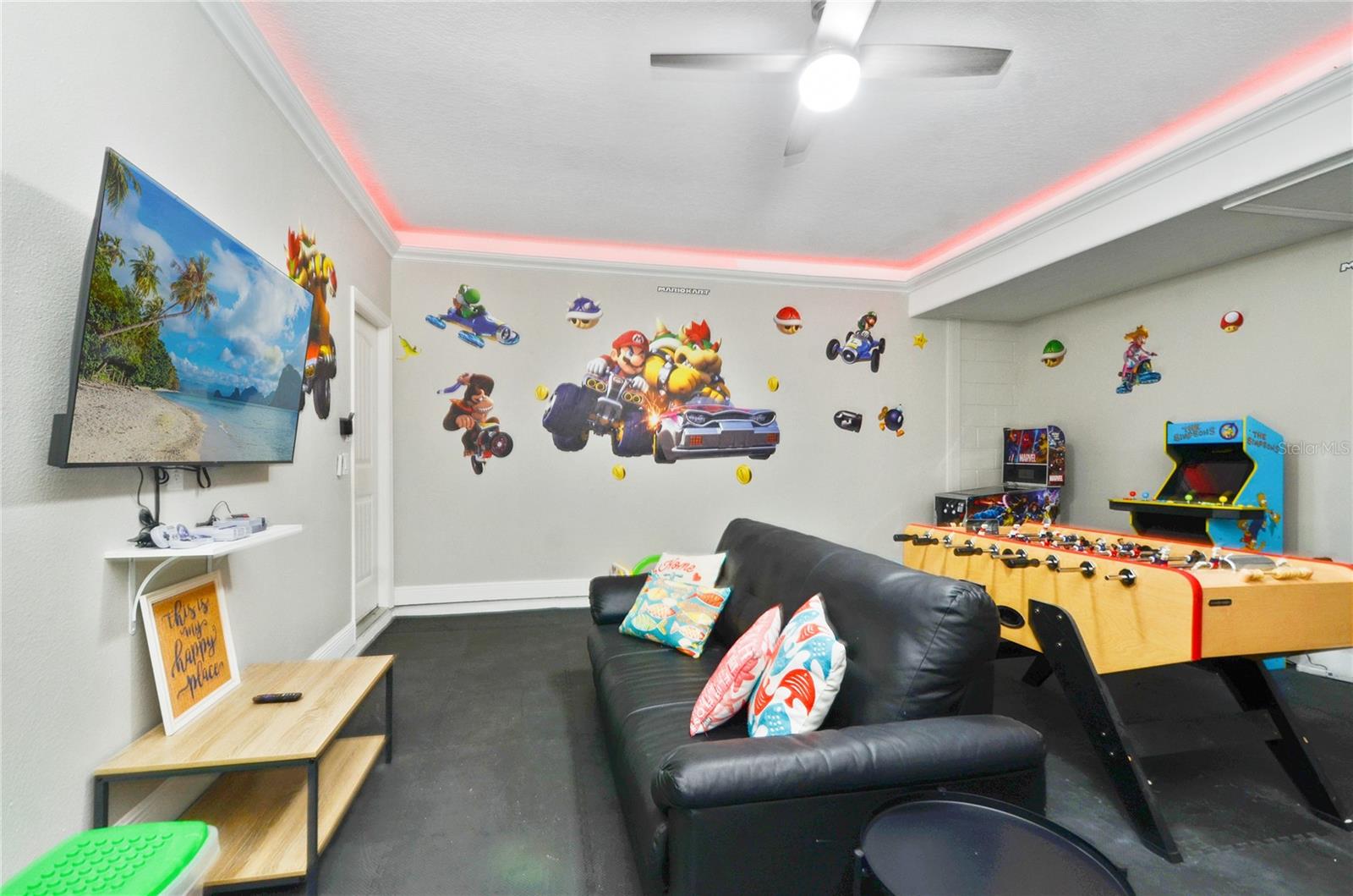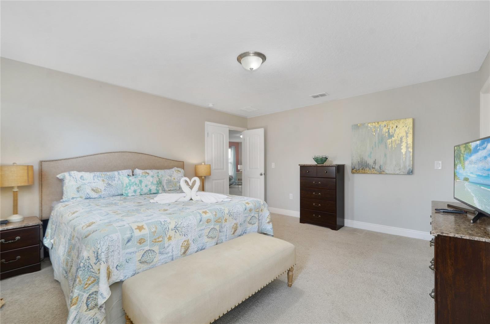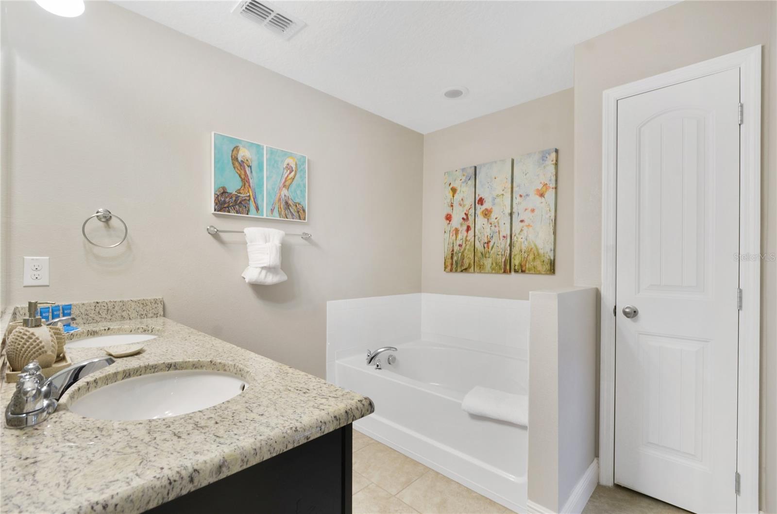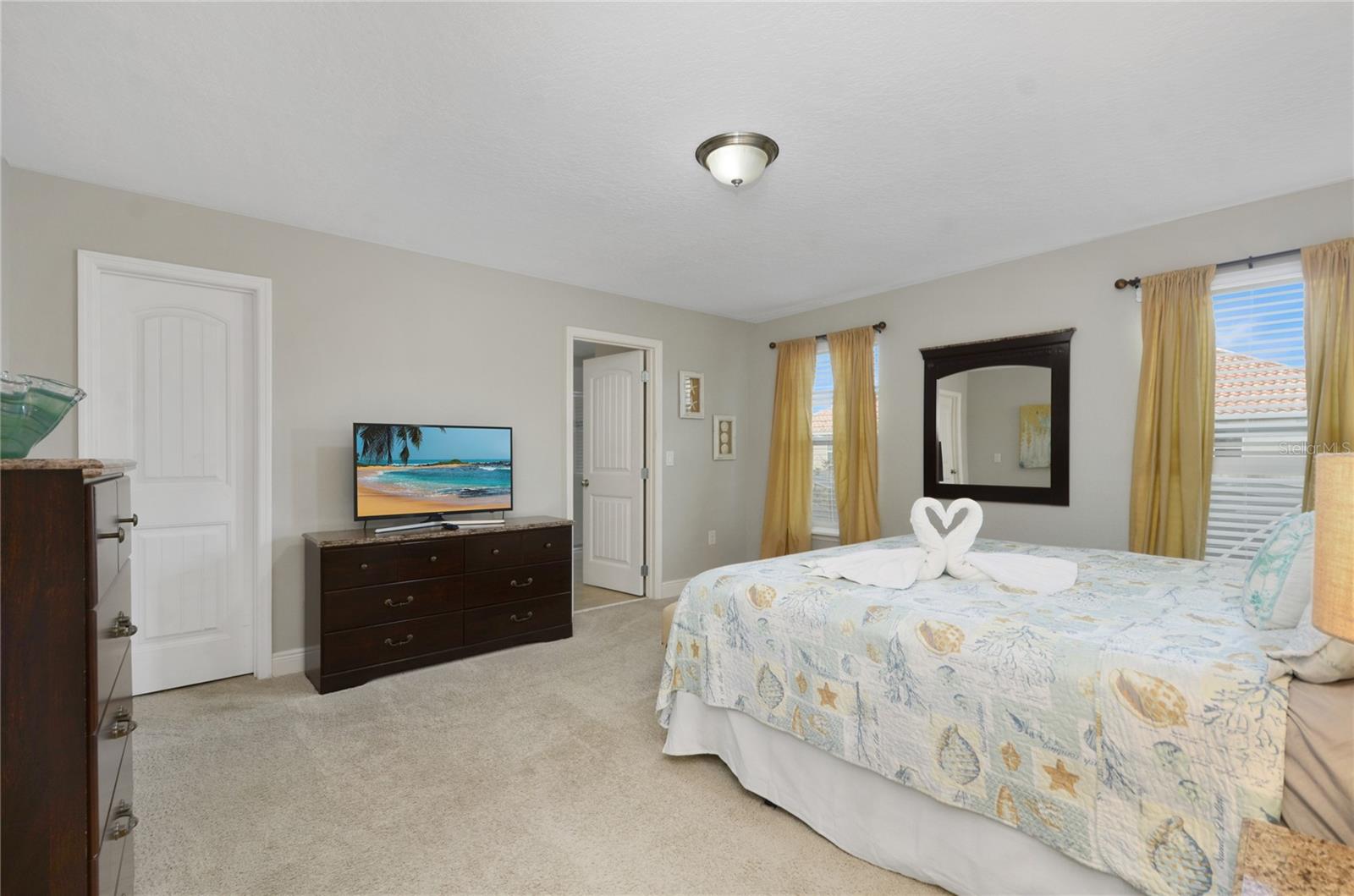 Check out this fantastic vacation experience for your year round personal use or a great investment in Solterra Resort! 5 bedrooms, 4 and a half bathrooms in this contemporary colonial is only scratching the surface. 2 master suites, one on the main floor and one upstairs. Large kitchen with granite counters, tons of counter and cabinet space, a gas range and all stainless steel appliances are waiting for you! Ceramic tile throughout the main floor and upstairs you have the large loft for movie time and the 3 additional spacious bedrooms with carpeting. Outside you have a beautiful covered patio to enjoy the heated pool and spa all screened in! When you are ready to entertain you can use the garage that is all set up for a large game room. Oh, and the games are all included! This amazing home is being sold fully furnished and ready to move into or lease! Located within minutes of all of Central Florida's Main attractions, yet it retains the quiet and serene setting to soothe and relax. Only a few short minutes from Walt Disney World and a short drive to Orlando's other famous attractions like Universal Studios, Seaworld, and Legoland. This Solterra Resort villa sits nestled off Interstate 4 and Hwy 27, which has easy access to shops, restaurants, and world class golf!