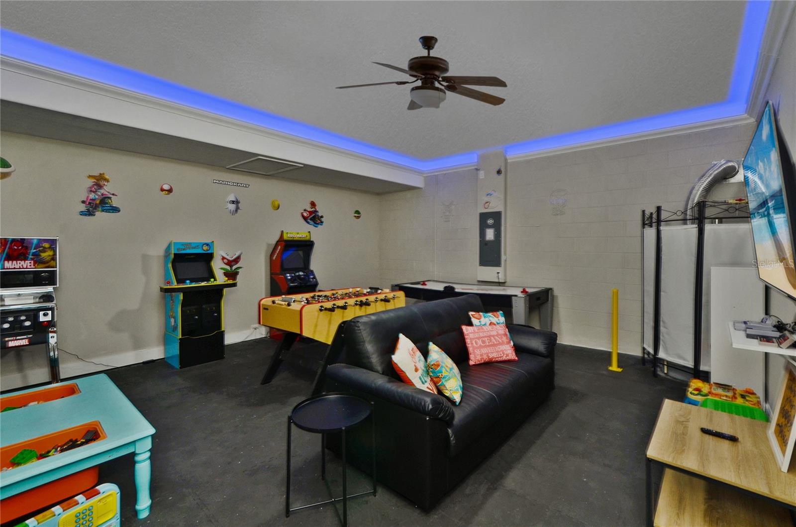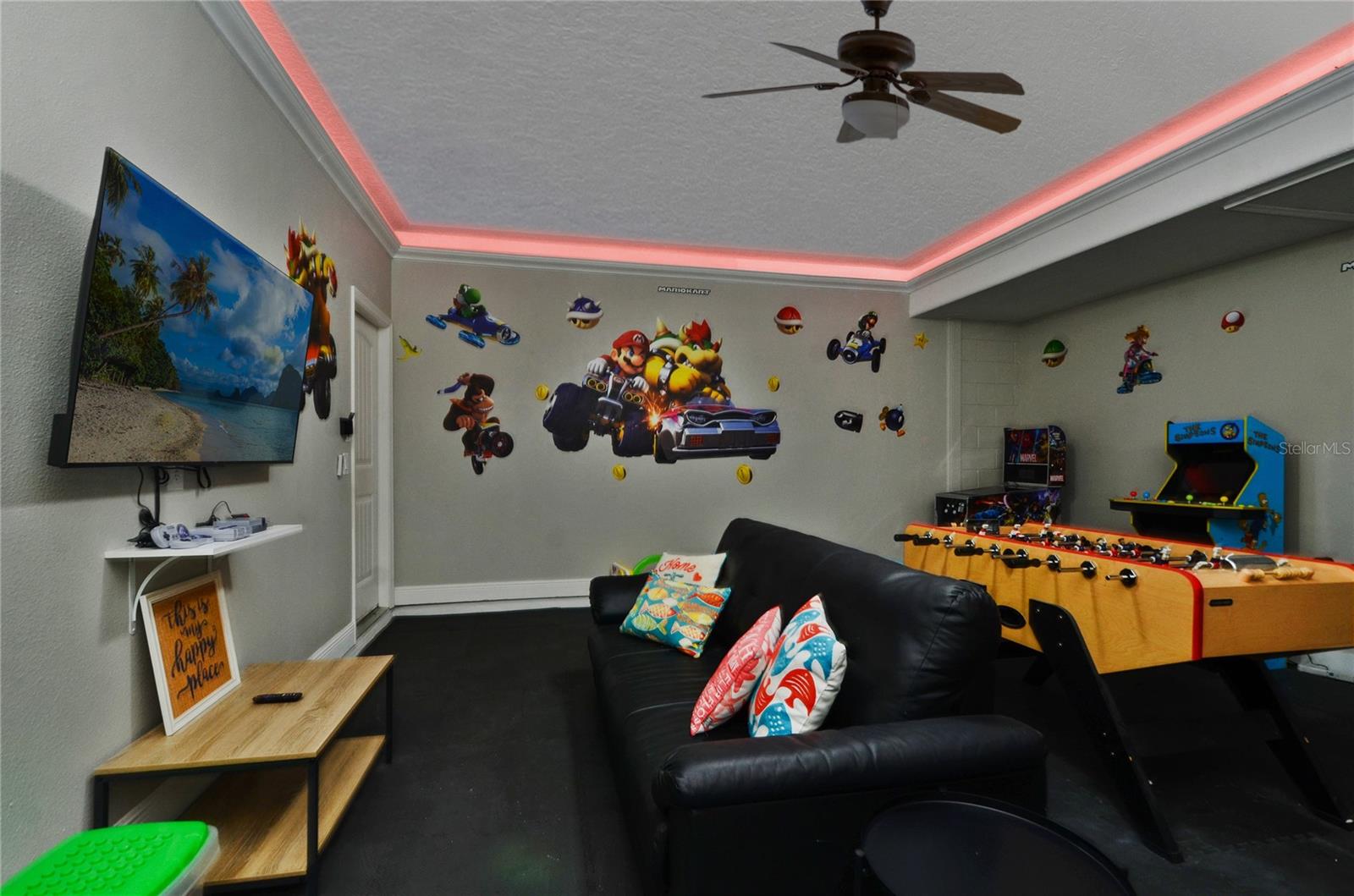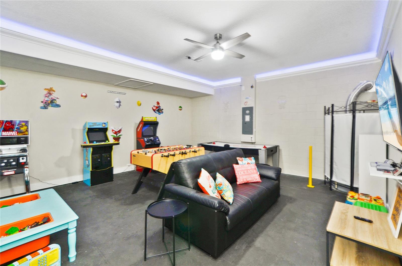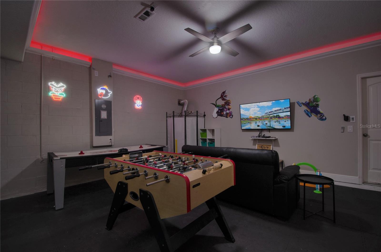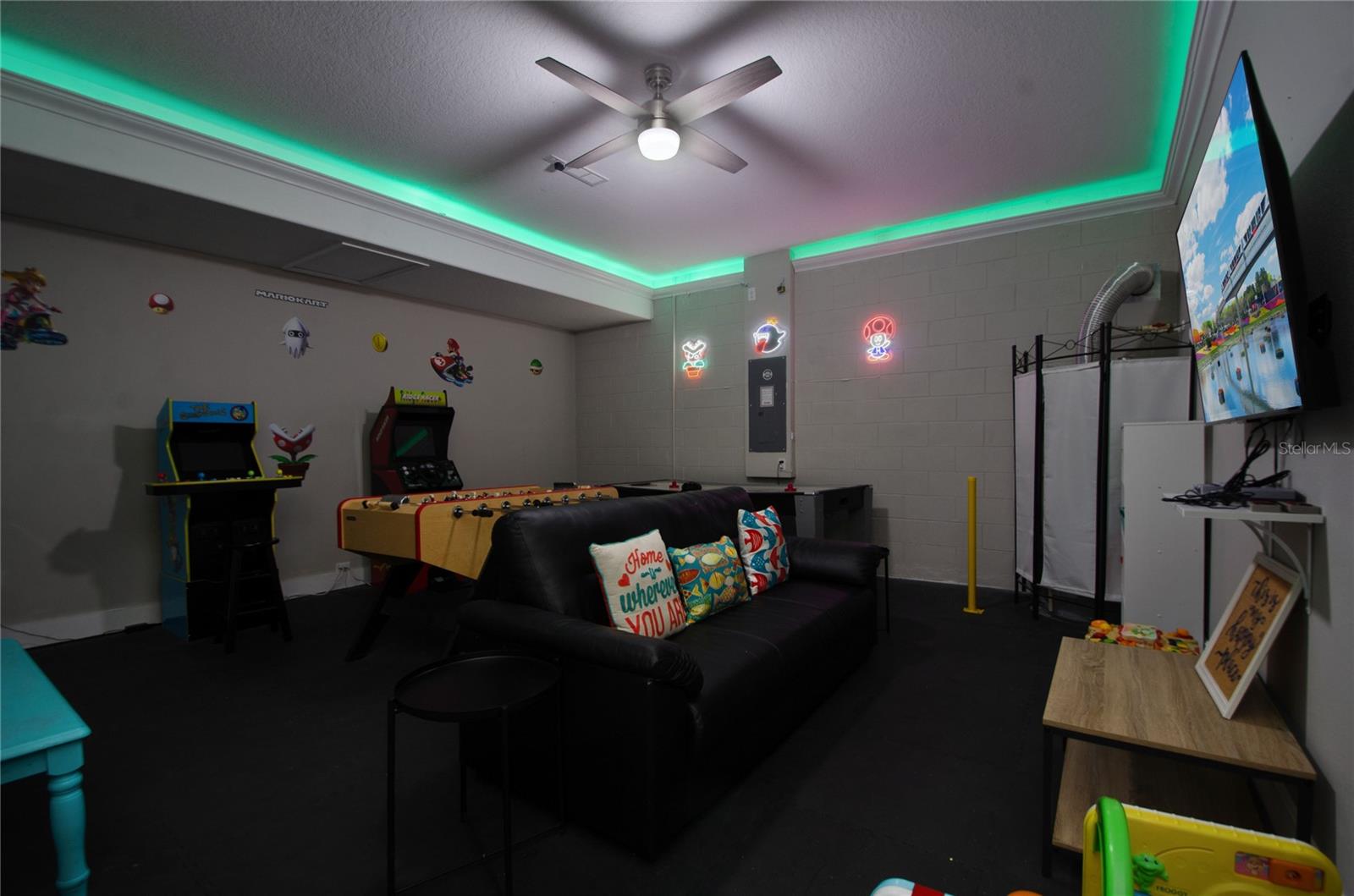Check out this fantastic vacation experience for your year round personal use or a great investment in Solterra Resort! 5 bedrooms, 4 and a half bathrooms in this contemporary colonial is only scratching the surface. 2 master suites, one on the main floor and one upstairs. Large kitchen with granite counters, tons of counter and cabinet space, a gas range and all stainless steel appliances are waiting for you! Ceramic tile throughout the main floor and upstairs you have the large loft for movie time and the 3 additional spacious bedrooms with carpeting. Outside you have a beautiful covered patio to enjoy the heated pool and spa all screened in! When you are ready to entertain you can use the garage that is all set up for a large game room. Oh, and the games are all included! This amazing home is being sold fully furnished and ready to move into or lease! Located within minutes of all of Central Florida's Main attractions, yet it retains the quiet and serene setting to soothe and relax. Only a few short minutes from Walt Disney World and a short drive to Orlando's other famous attractions like Universal Studios, Seaworld, and Legoland. This Solterra Resort villa sits nestled off Interstate 4 and Hwy 27, which has easy access to shops, restaurants, and world class golf!
