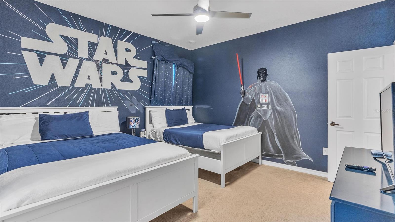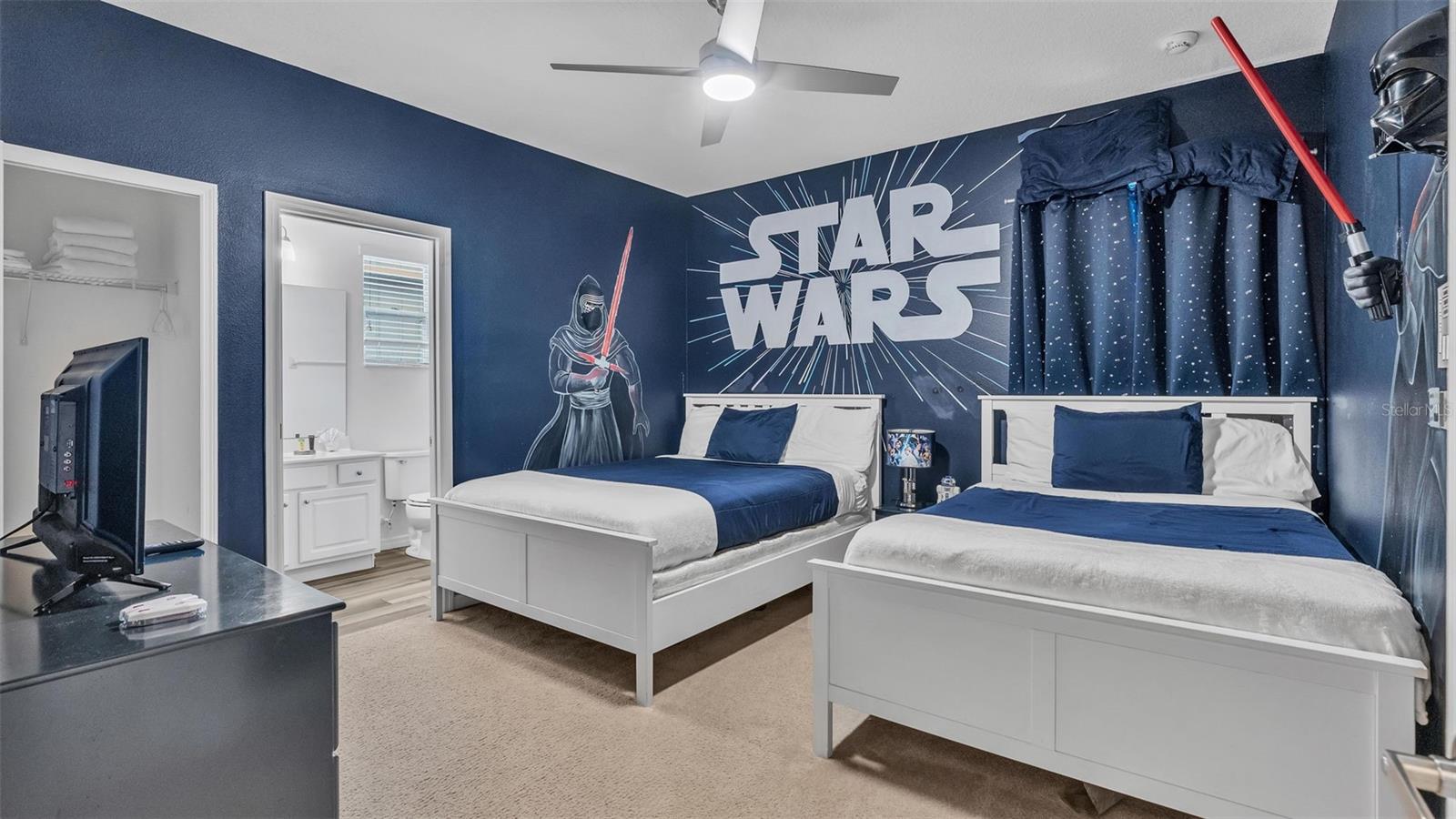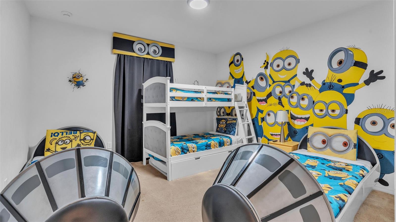 Spectacular investment property! Fully Furnished with 11 Bedrooms and 9.5 bathrooms. This is a fabulous opportunity to own a piece of Florida luxury investment property. perfectly designed to accommodate up to 28 guests. Located just minutes away from all major theme parks this property is a vacationers paradise. Featuring an expansive open floor plan with a large kitchen equipped with two refrigerators and granite countertops. The main floor has 3 main bedrooms downstairs and an additional 8 bedrooms upstairs including themed rooms such as Jurrasic Park, Mickey and Minnie Mouse, and Frozen. Dedicated movie room upstairs a fully converted game room for the entire family. The large loft upstairs comes fully equipped with a projector, screen, and bar area with a sink. When guests aren’t watching movies or lounging in the fully enclosed south-facing pool and spa they can enjoy their own mini arcade in the converted garage! Or venture out to enjoy the many amenities that Solterra Resort has to offer: pool, spa, fitness center, tennis and volleyball courts. A short drive will have guests at any of Orlando’s many attractions like Sea World, Disney World, and Universal Studios, Make this your dream vacation home or Vacation rental Large price reduction has been made for an October closing <iframe width="560" height="315" src="https://www.youtube.com/embed/C6fYSrbPD3g?si=m2YZs27fheFZPBlG" title="YouTube video player" frameborder="0" allow="accelerometer; autoplay; clipboard-write; encrypted-media; gyroscope; picture-in-picture; web-share" referrerpolicy="strict-origin-when-cross-origin" allowfullscreen></iframe>