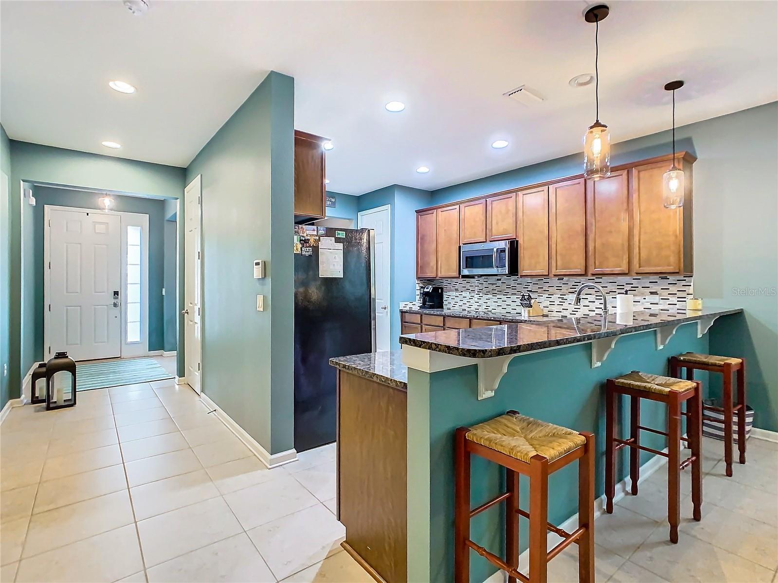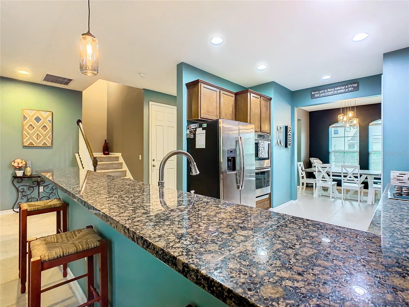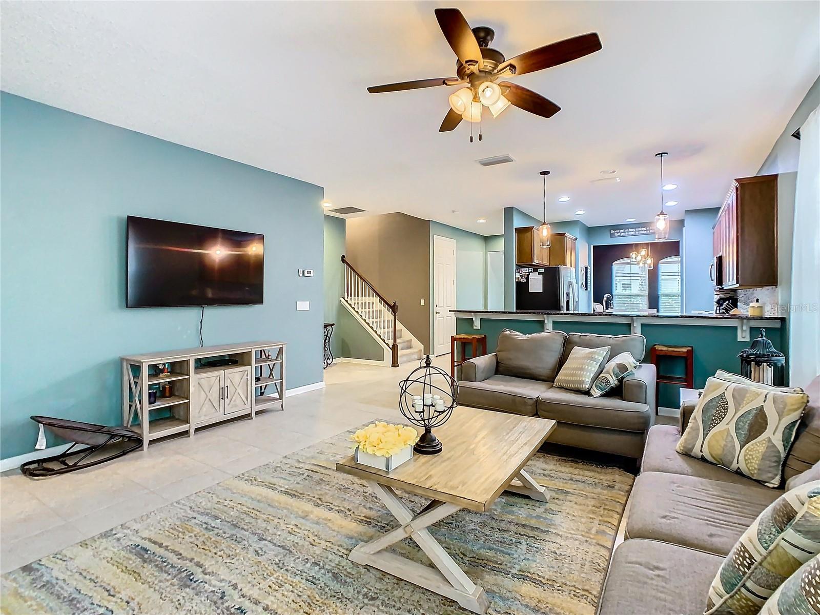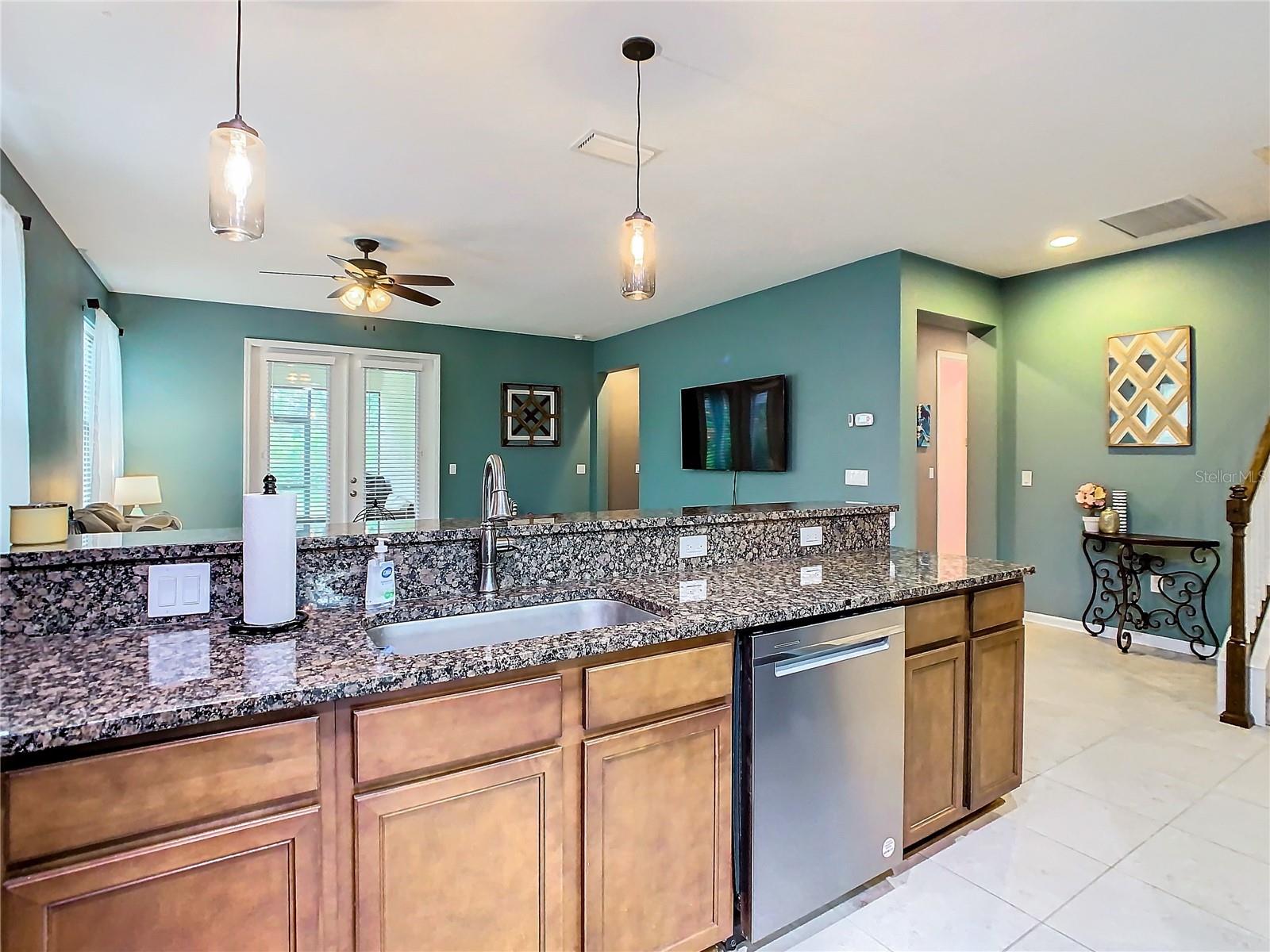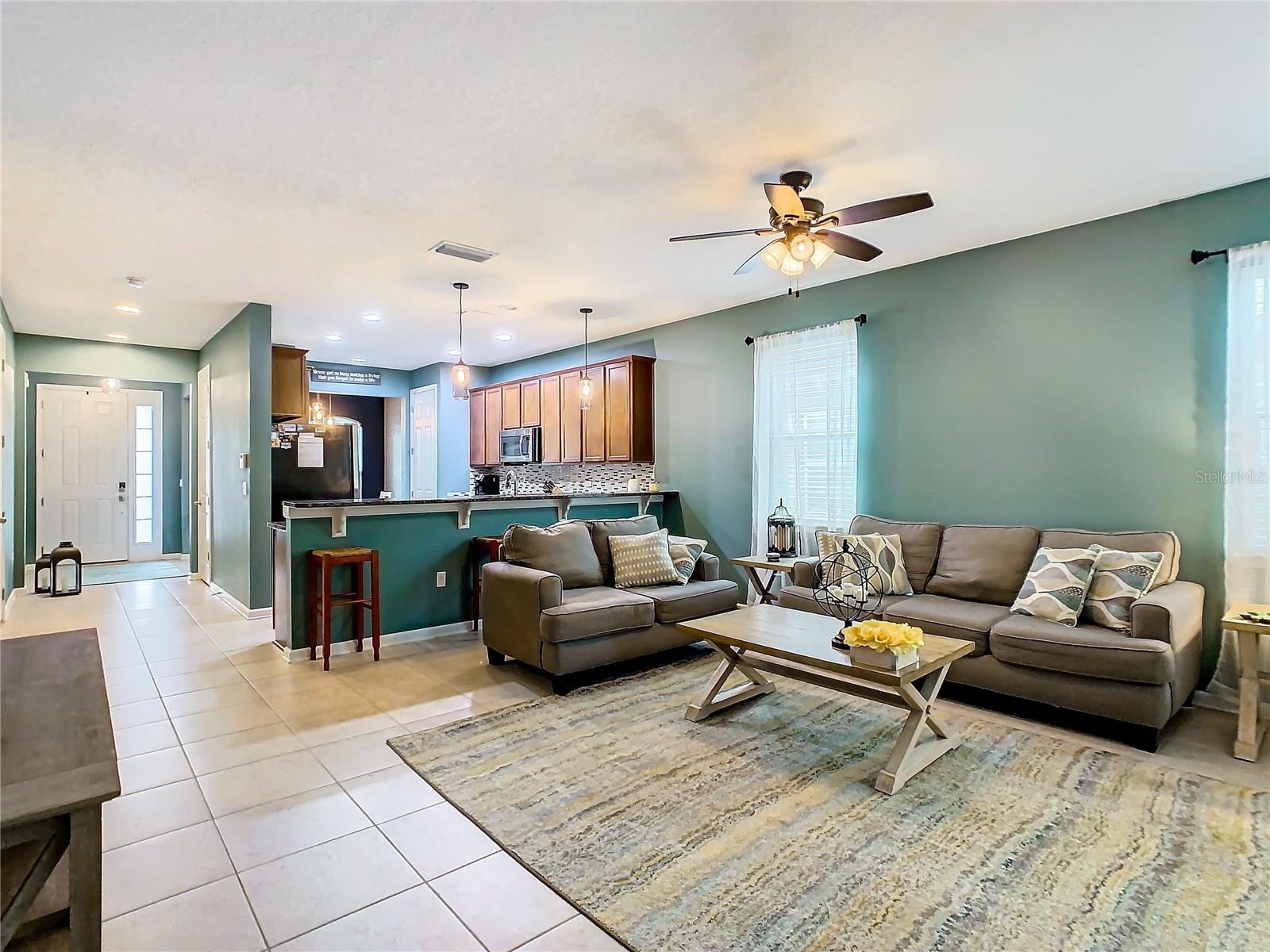 Price improvement on Davenport home with four bedrooms and three bathrooms! Upon entering the house, you are greeted by a foyer that leads to either the formal dining room or the open concept kitchen and family area down the hall. With oak cabinets, granite countertops, stainless steel appliances, a closet pantry, and a bar that looks out onto the family room, the kitchen has an abundance of counter and storage space. Located on the ground floor of the house, the main bedroom features an en suite bathroom featuring a walk-in closet, dual vanity basins, a soaking tub, and a walk-in shower. The other two bedrooms share a full bathroom and are located on the lower floor as well. A spacious loft/bedroom with a full bathroom and walk-in closet can be found upstairs. You can unwind outside on your screen back porch. Located in Davenport, this home is convenient for shopping, dining and I-4, for an easy commute to Orlando, Tampa or other surrounding areas, as well as near Disney