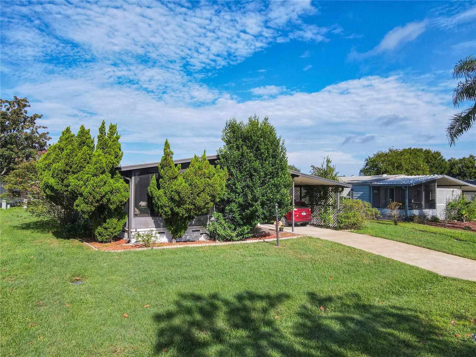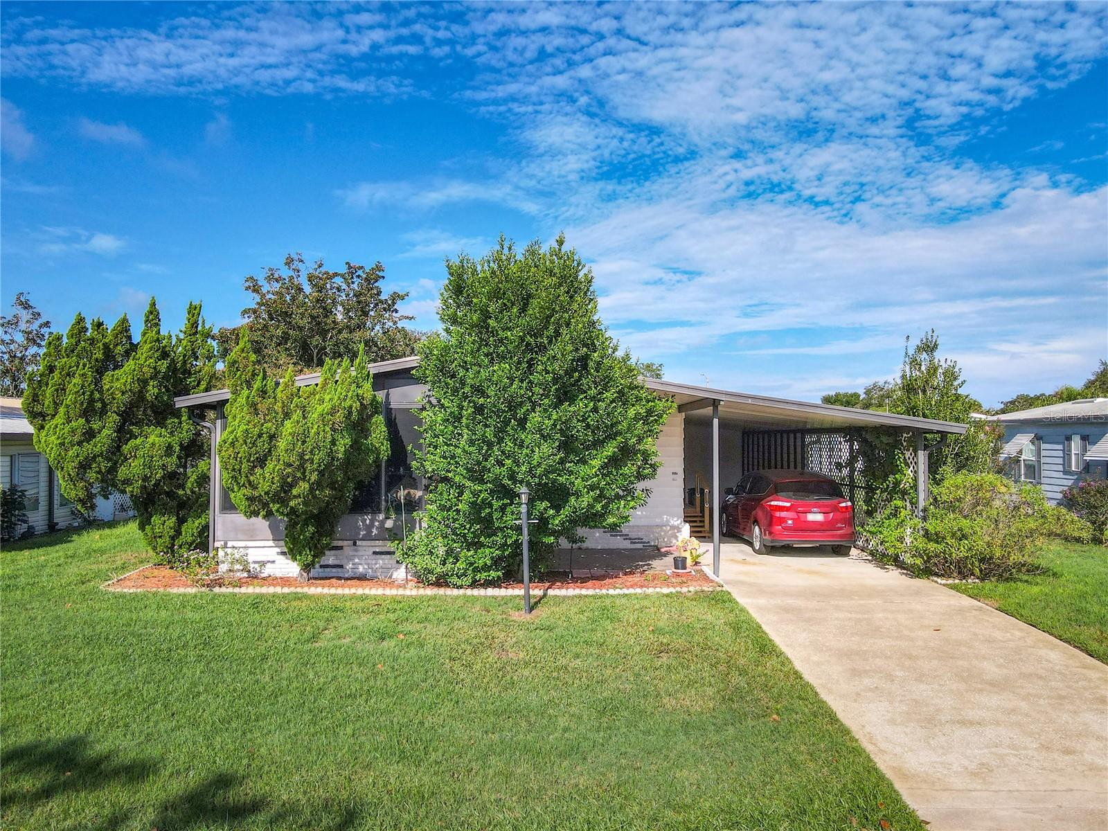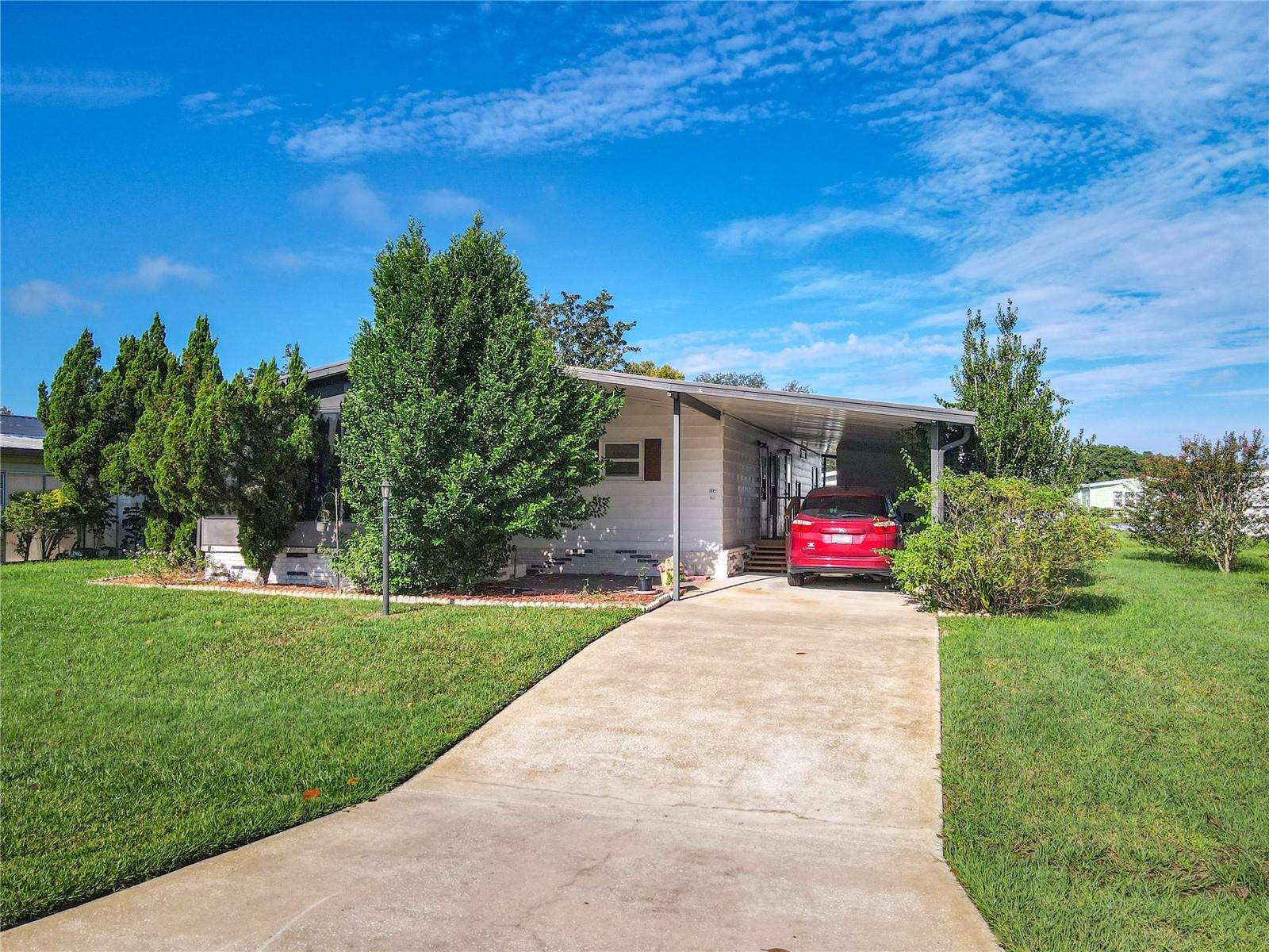 Spacious 2 bed 2 bath home with open floor plan design in the ever popular 55+ golf community of Polo Park West. This wonderful home comprises of great room, dining area, kitchen, 2 larger than normal bedrooms, 2 full bathrooms, glassed in Florida room, 2 storage sheds, carport for 2 cars (tandem). Roof was replaced in 2018. Home has been replumbed and also benefits from storm windows. Truly Nolen installed mesh around the crawlspace to keep out pesky critters! Polo Park offers many activities and amenities including 2 pools, 2 clubhouses, tennis & pickle ball courts, horseshoes and fitness center. All of this for low HOA fees of $60 a month! This wonderful community enjoys a great location directly off Hwy 27, minutes from 192 and easy access to I-4, theme parks, grocery stores, medical facilities, restaurants, shopping, Margaritaville & more….Don't delay!! Call to request a viewing today!!