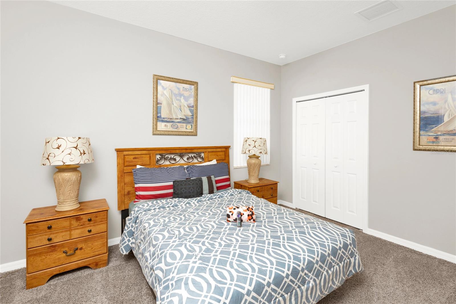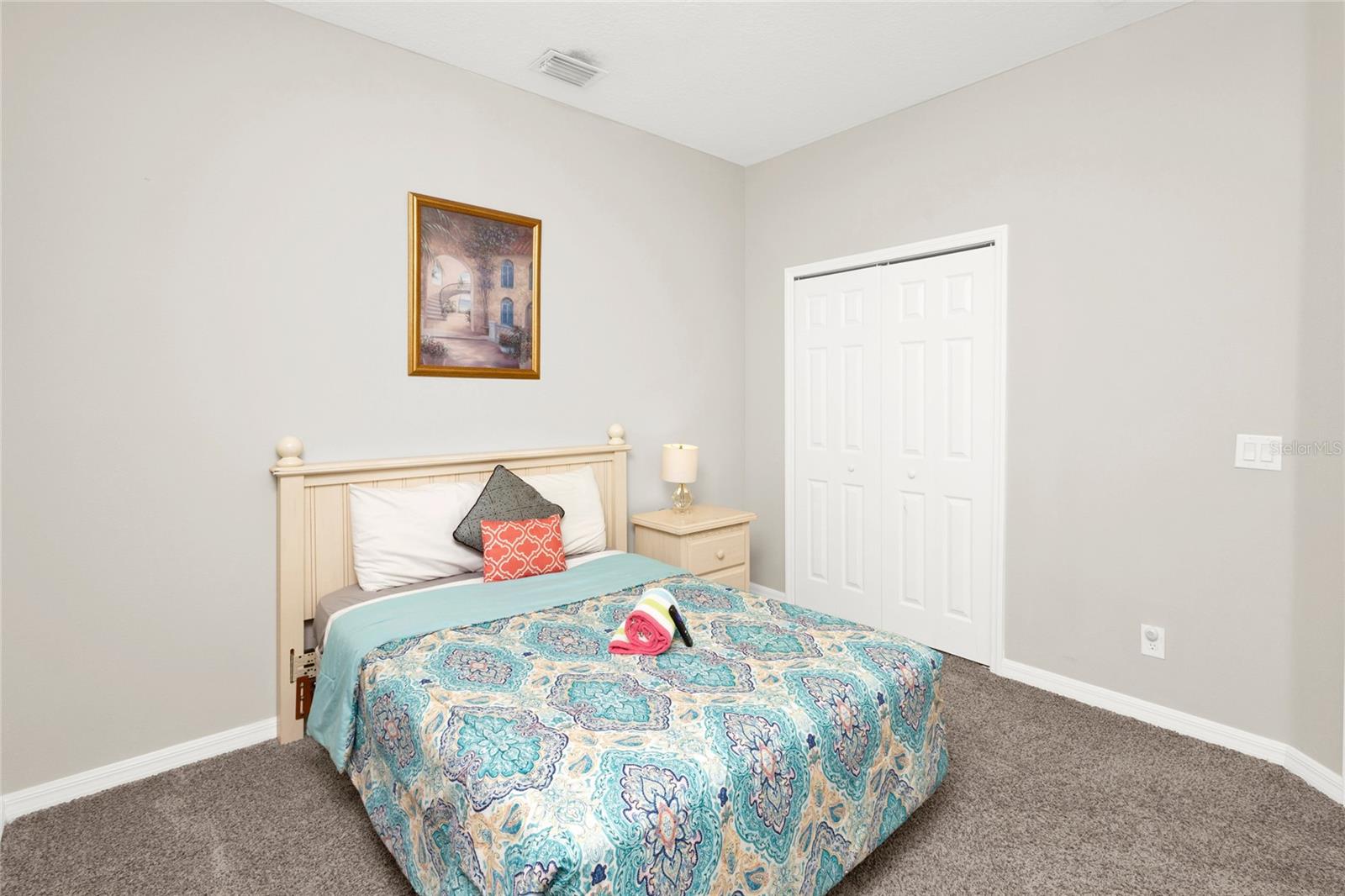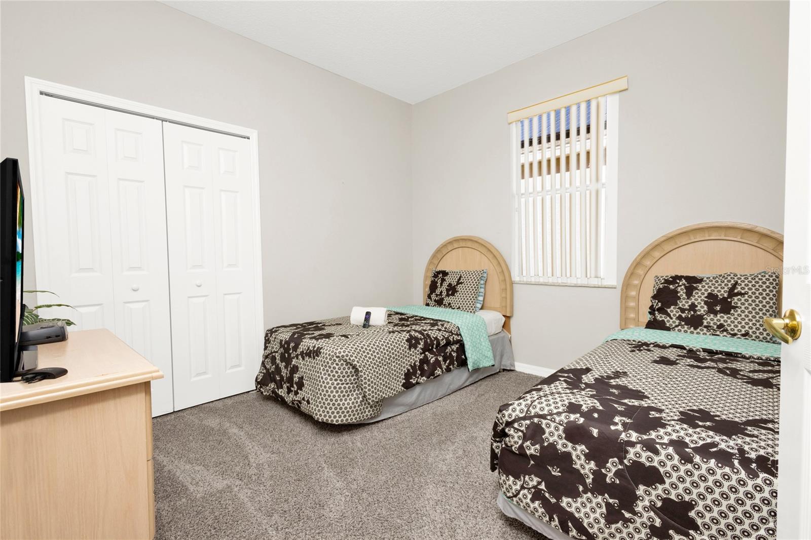 BEAUTIFUL FULLY FURNISHED , TURN KEY READY HOME WITH PRIVATE POOL! HOME HAS SHORT TERM RENTAL INCOME ALREADY TO TRANSFER OVER TO BUYER IF YOU ARE LOOKING FOR A INVESTMENT HOME. OR HOME CAN BE USED AS A PRIMARY HOME FOR YOUR SELF! OPEN FLOOR PLAN , HOME HAS NEW CARPET, NEW PAINT INSIDE HOME, PRIMARY BEDROOM HAS A PRIVATE BATHROOM , KING BED. SECOND ROOM HAS A PRIVATE BATHROOM AND A QUEEN BED. THIRD ROOM HAS A FULL BED, FOURTH ROOM HAS TWO TWIN BEDS AND THEY SHARE A FULL BATHROOM. GARAGE HAS BEEN MADE INTO A GAME ROOM, BUT CAN BE TURNED BACK INTO FULL PARKING GARAGE BY SIMPLY GETTING RID OF GAMING EQUIPMENT AS FLOOR HAS BEEN PAINTED WITH GARAGE FLOOR EPOXY PAINT. POOL LOOKS OVER LARGE WOODED AREA AND NO REAR NEIGHBORS. THE POOL AREA IS IN LARGE SCREENED IN ENCLOSURE AND TABLE AND CHAIRS SIT UNDER A COVERED LANAI WITH LIGHTS AND FAN SO YOU CAN ENJOY HAVING BREAKFAST, LUNCH OR DINNER OUT BY POOL RAIN OR SHINE! CALABAY PARC IS A LOVELY DEVELOPMENT HIGHLY SOUGHT AFTER FOR SHORT TERM RENTALS OR RESIDENTIAL LONG TERM. NEAR MANY STORES, RESTUARANTS, NEAR LOCAL PARKS.. YOU CAN BE TO WALT DISNEY WORLD IN ABOUT 30 MINUTES AND TO EITHER COAST LINE IN ABOUT A HOUR AND HALF. DRIVEWAY HOLDS 2 CARS FOR PARKING. SCHEDULE A SHOWING AND SEE HOME AND ALL IT OFFERS!