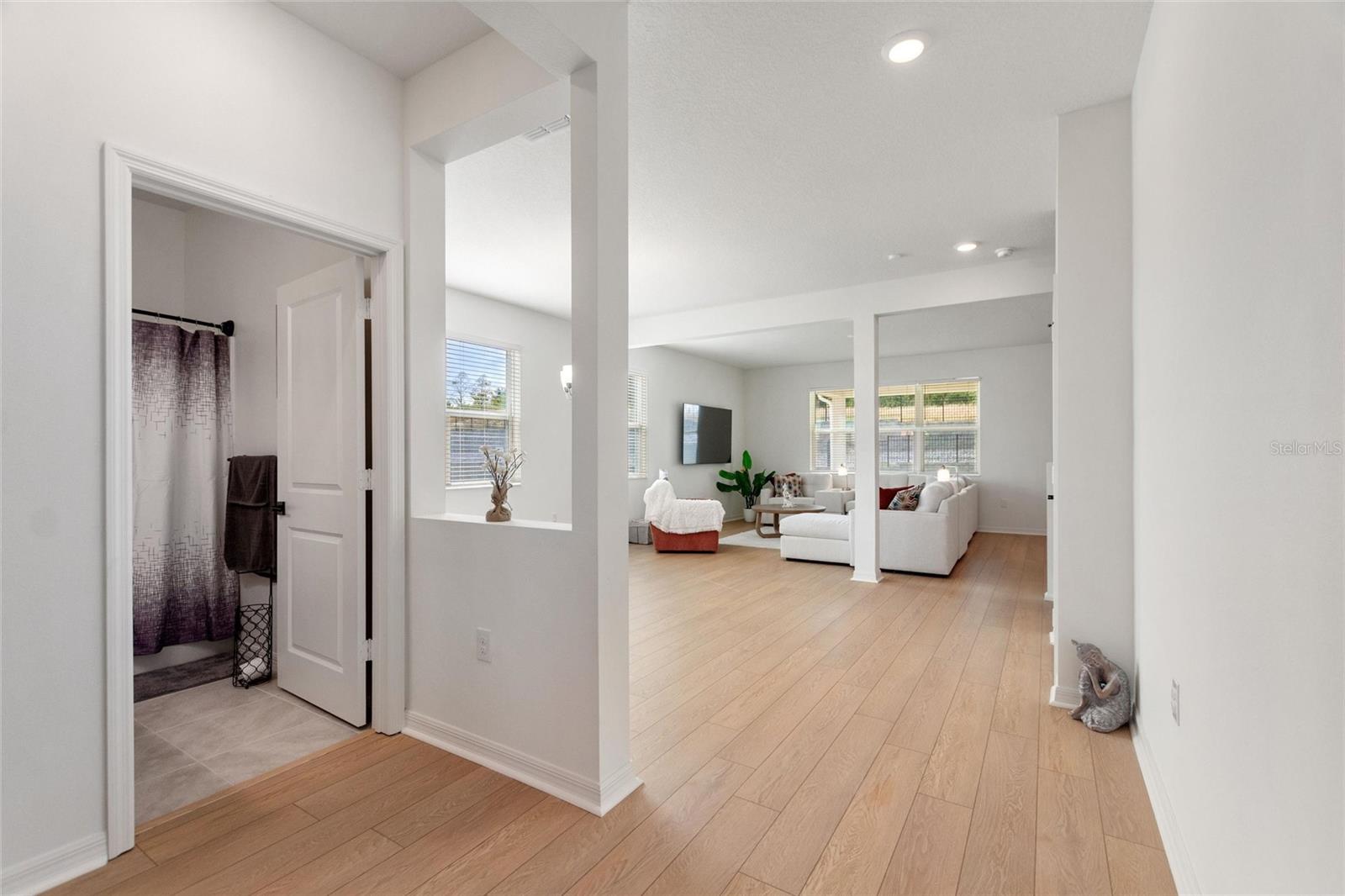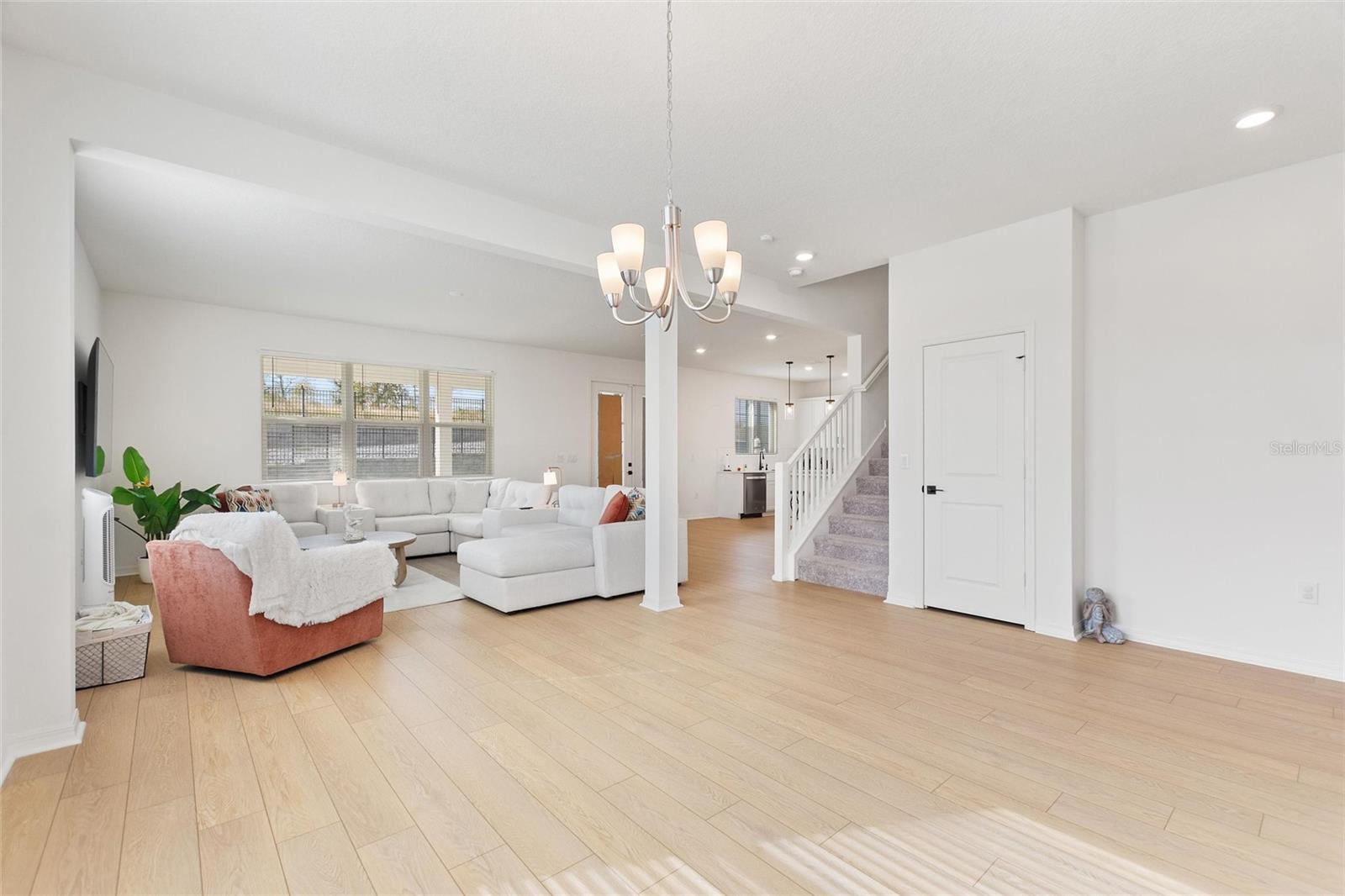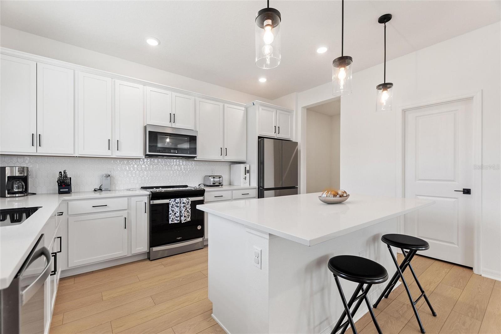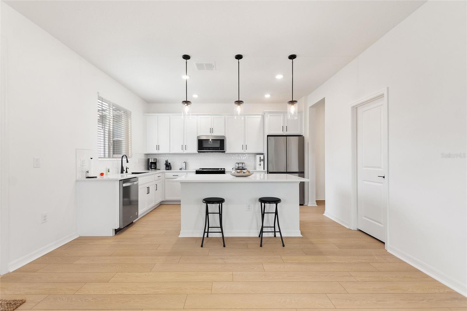 Nestled in a picturesque neighborhood on a desirable corner lot with no rear neighbors, this stunning 2023-built home offers the perfect blend of modern comfort and style. Boasting 5 spacious bedrooms and 3 full bathrooms, this property is ideal for families or anyone seeking a serene yet convenient location near the magic of Disney World. The primary suite is a luxurious retreat, featuring a walk-in closet and ample space to unwind. The four additional bedrooms provide flexibility for family, guests, or even a home office. The heart of the home is the open-concept kitchen and living area, perfect for entertaining or everyday living. The kitchen is a chef’s dream, equipped with upgraded, top-of-the-line appliances, modern finishes, and plenty of counter space for culinary creations. Soaring vaulted ceilings add a touch of elegance, while over $40,000 in KB Home upgrades ensure every detail has been thoughtfully designed. With its premium location, stunning features, and high-end touches, this home is a rare find that offers style, comfort, and convenience. Don’t miss the chance to make this exceptional property your own!