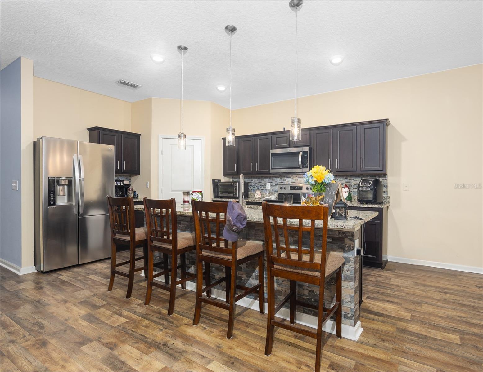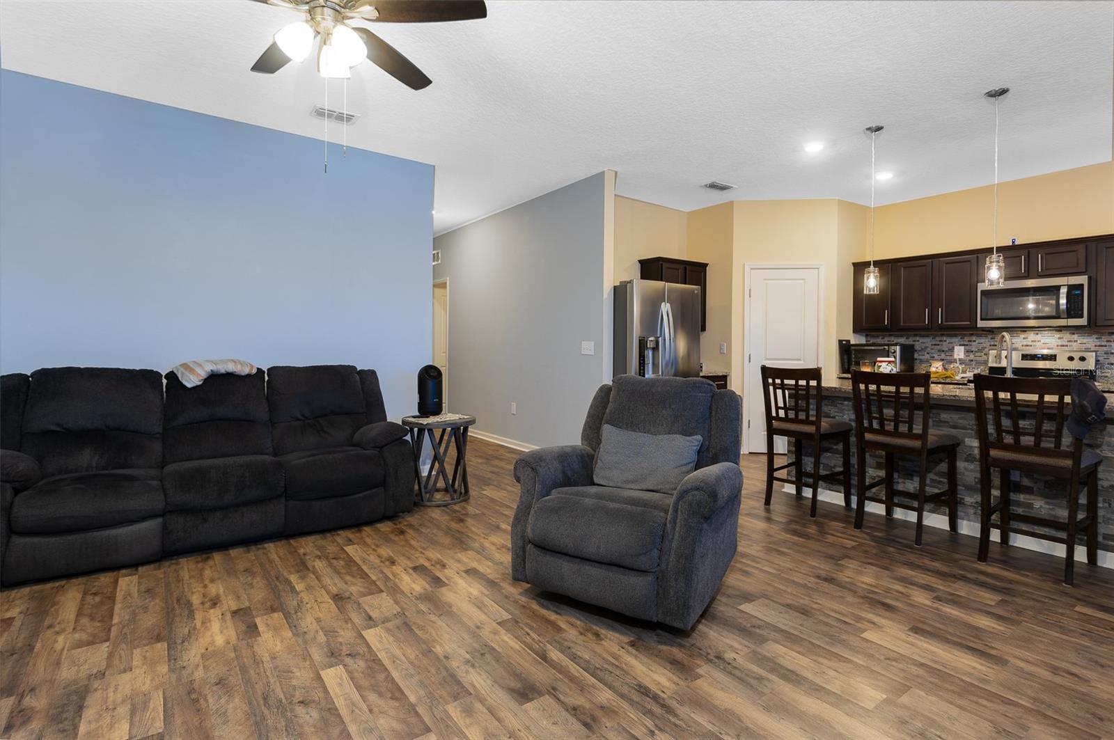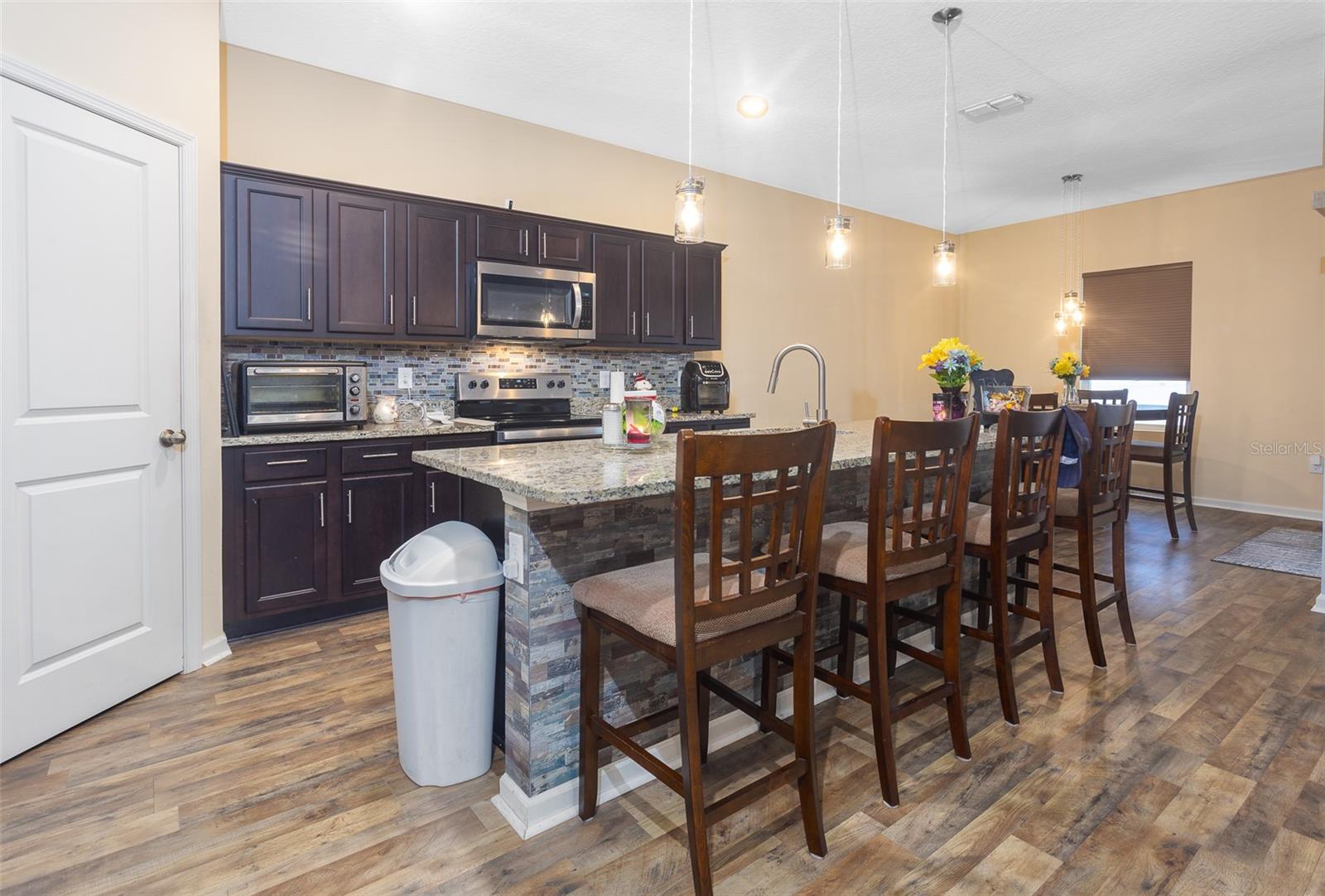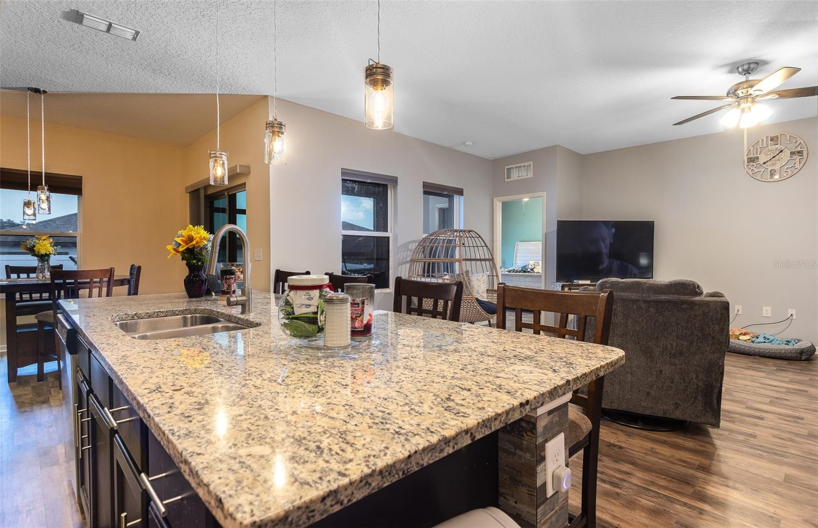 *** MAJOR PRICE IMPROVEMENT *** MOTIVATED SELLER - EXCELLENT HOME PACKED WITH UPGRADES - SEAMLESS FLOORING THROUGHOUT - FENCED BACKYARD - TINTED WINDOWS - EPOXY GARAGE FLOORING - STAINLESS STEEL APPLIANCES - CORDLESS SHADES & MUCH MORE! This beautifully maintained 3-bedroom, 2-bathroom home offers 1,779 sq ft of move-in ready living space in a highly desirable location. Designed with a functional split floor plan, the home features updated vinyl seamless flooring and smoke-tinted windows for enhanced privacy and energy efficiency. The kitchen opens seamlessly into the main living area, showcasing large granite countertops, stainless steel appliances, and coordinated pendant lighting that adds a modern, cohesive touch to the kitchen and dining space. A dedicated laundry room with washer/dryer hookups makes chores convenient and organized. The spacious primary suite includes a generous walk-in closet and a stylish master bath with distinctive barn doors. Additional bedrooms provide ample storage, perfect for guests, family, or home office needs. Step outside to enjoy the screened-in veranda and extended lanai—ideal for relaxing or entertaining. The fenced backyard and seamless rain gutters add to the home's practicality and curb appeal. The attached 2-car garage features durable epoxy flooring and attic access for extra storage. Located in a sought-after, walkable community with top-tier amenities including a resort-style pool, dog park, playground, and more, this home offers the perfect blend of comfort, style, and functionality. Located in the heart of growing Davenport, close to shopping centers and theme parks. Seller is motivated—don't miss your chance to own this upgraded gem! Schedule your private tour today!
