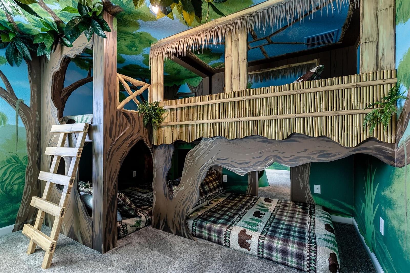 Luxury 7 bedroom vacation home in Champions Gate, Davenport, Florida with private pool and short-term rental approval near Disney. Built in 2021, this fully furnished 5 bathroom pool home offers over 4,000 square feet of living space and is located in the highly desirable Stoneybrook South community within Champions Gate Resort. Designed for the vacation rental market, the home features an open floor plan, quartz countertops, stainless steel appliances, themed entertainment spaces including a Marvel game room, and a custom treehouse-style bunk room that attracts short-term rental guests. The private screened saltwater pool and spa with no rear neighbors create a true resort-style experience. Champions Gate offers access to a water park, clubhouse, fitness center, golf, tennis, restaurant, and 24-hour guard security. HOA includes cable, internet, and community amenities. Located in Osceola County with convenient access to Disney, Universal, and Orlando attractions. Ideal for buyers searching for a 7 bedroom vacation rental in Davenport, an Airbnb investment property near Disney, or a Champions Gate pool home with strong income potential in Central Florida.