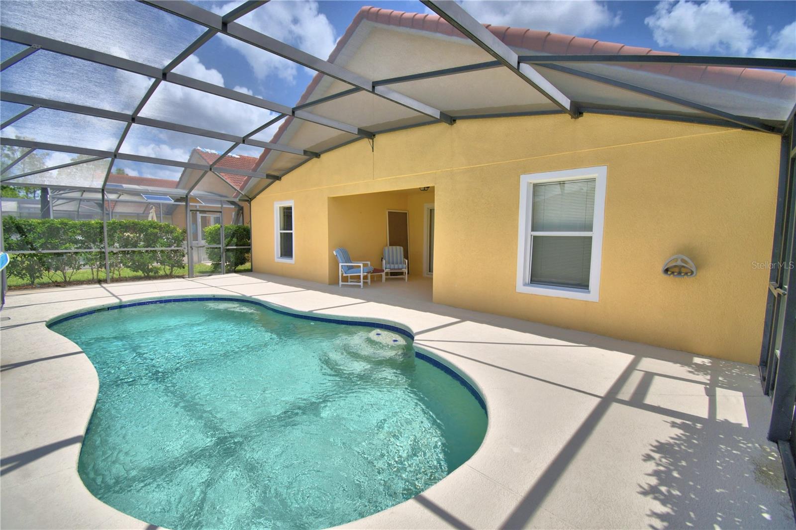 Welcome to 123 Hummingbird Pass, located in Lake Wilson Preserve which has NO CDD and an affordable HOA! This spacious 4-bedroom, 3-bathroom home features two primary suites with walk-in closets and ensuite bathrooms, for flexible living options, and a private heated pool. Home is move-in-ready, clean and bright, has an open feel, featuring high ceilings, and tile flooring in the main living area. Enjoy your front porch or back yard screened pool deck that has been freshly painted. These enhance both outdoor living and curb appeal. Recent updates include whole house fresh interior paint (2026), new luxury vinyl flooring in all 4 bedrooms(2026), new water heater (12/2024), new pool pump motor (2025), expanded paver driveway for 2 car parking and discreet trash storage enclosure off of the garage. Conveniently located near everyday essentials like grocery stores, restaurants, pharmacies, fitness centers, golf, and all major theme parks! Easy access to I-4 and SR-429, great opportunities for employment. This home offers both comfort and connectivity.