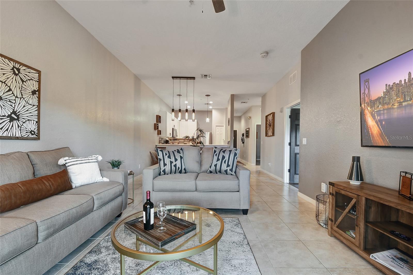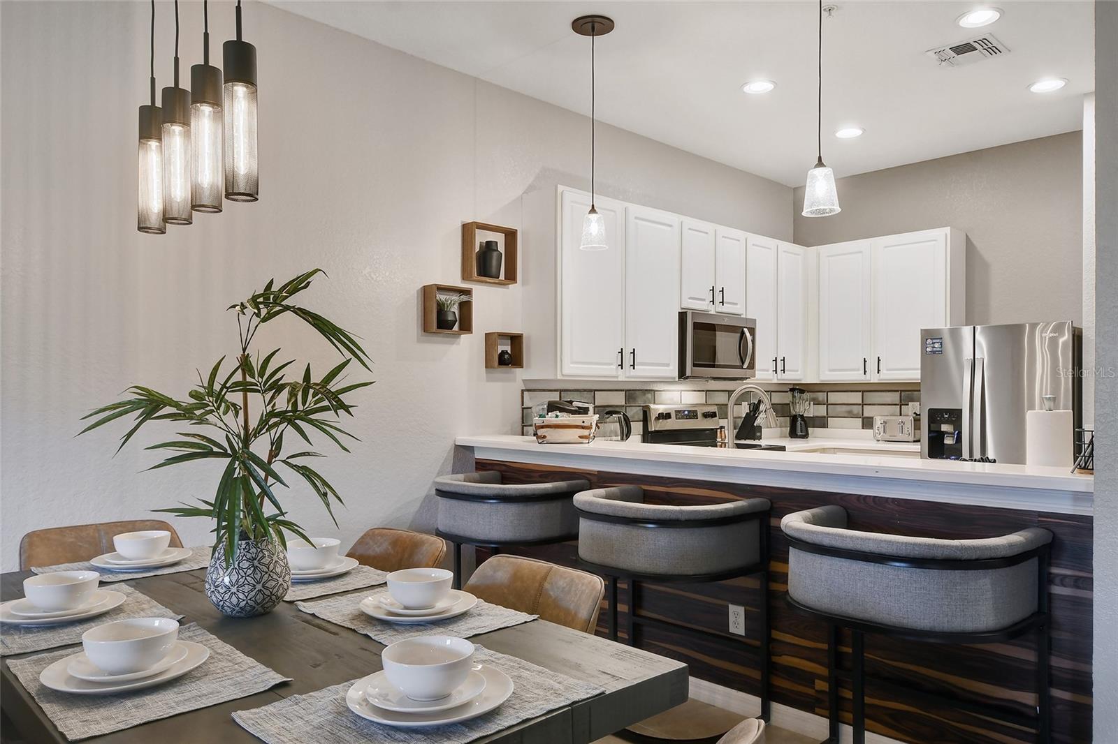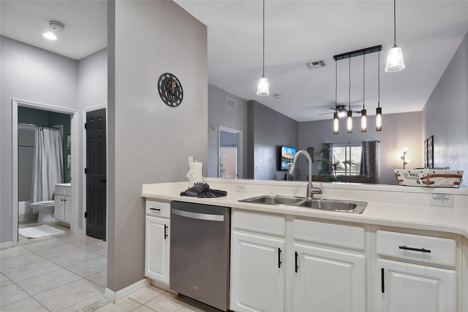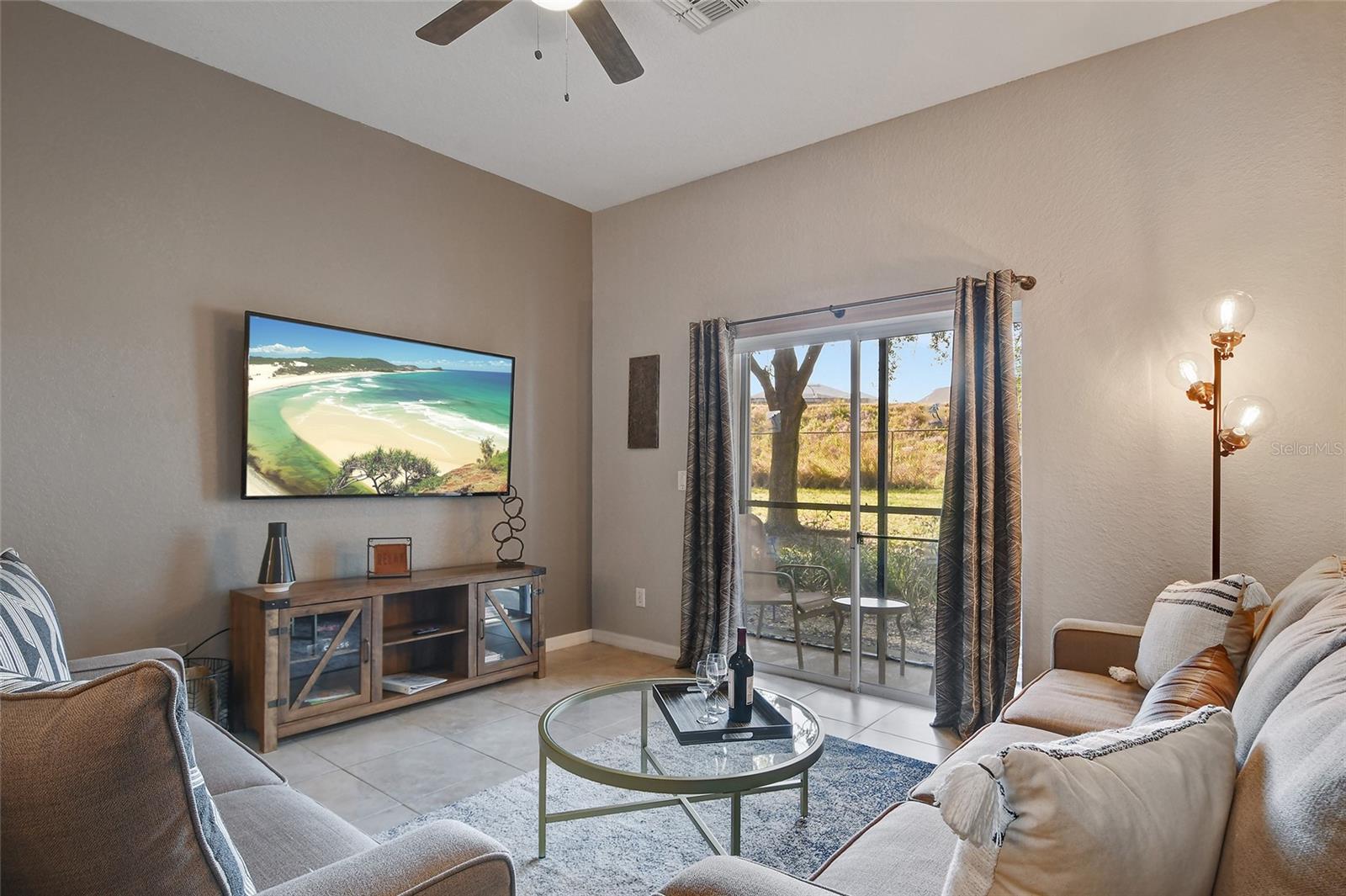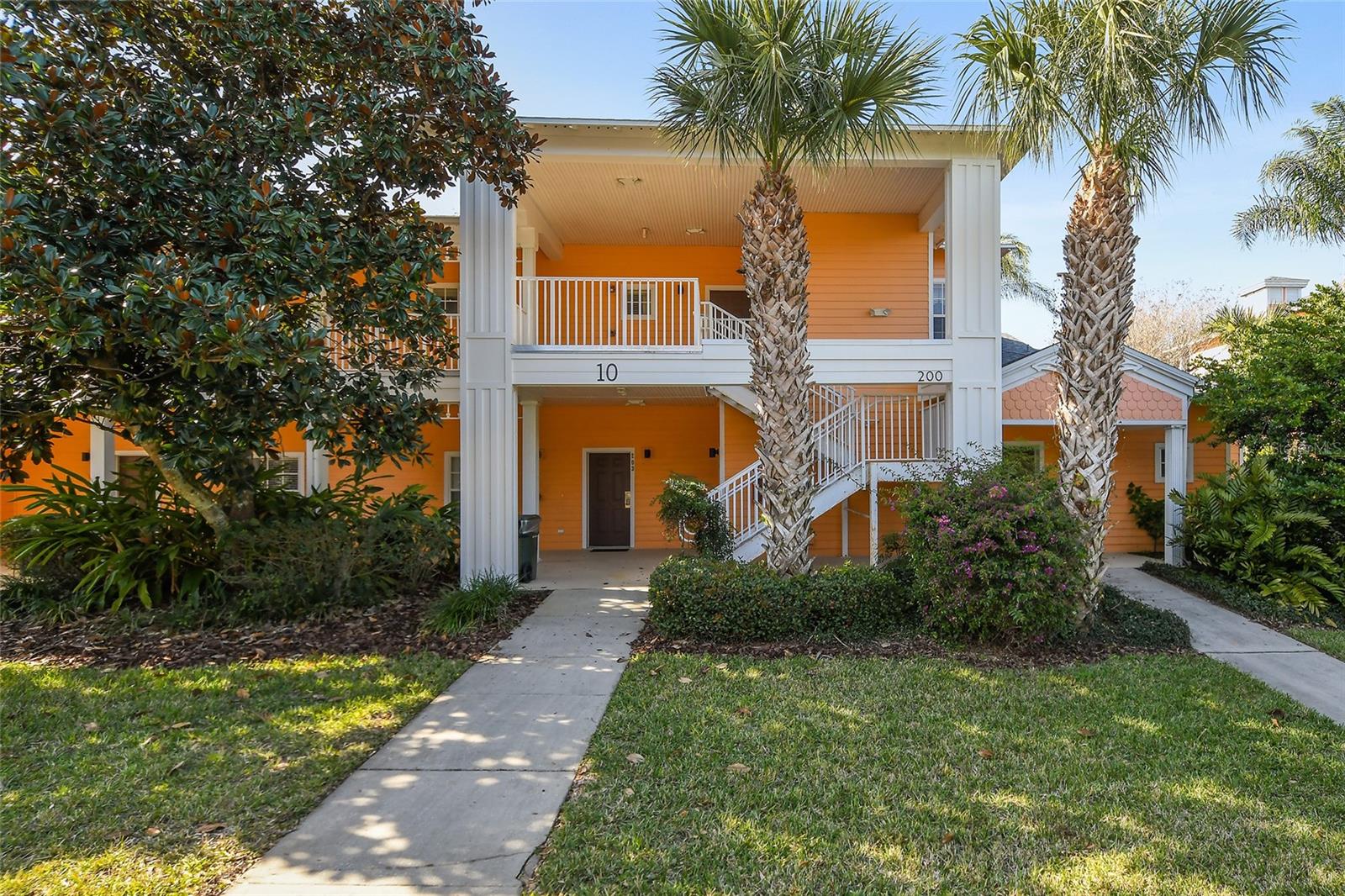 Reduced price! Discover this unique floorplan in Building 10, a rare ground floor unit in a two-story building—one of only two in the entire resort, housing just six exclusive units. This beautifully decorated 2-bedroom condo features a spacious lanai and a large great room with dining and living areas that open to the patio through sliding doors. Inside, you'll find no carpets—just laminate flooring in the bedrooms and tile throughout the rest of the unit. The kitchen boasts stainless steel appliances installed in 2021. The master bedroom, with its en suite bathroom, offers direct access to the patio, complete with outdoor furniture and no rear neighbors, ensuring privacy and tranquility. The second bedroom is charmingly decorated with a bunk bed and a unique collection of limited edition Mickey Mouse figures adorning the wall. The second bathroom is updated with a new vanity, and both bathrooms feature bathtubs. Additionally, the unit includes a convenient laundry room equipped with a washer and dryer. Don't miss the chance to own this exceptional condo in a prime location!