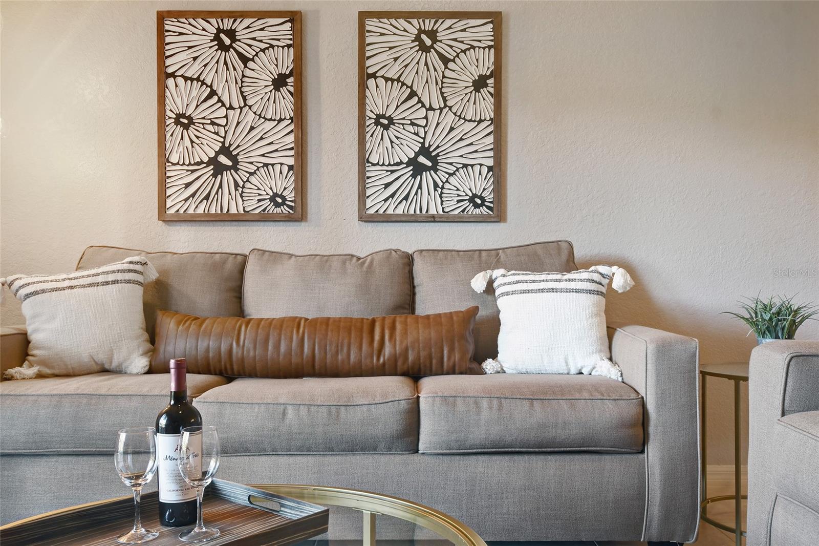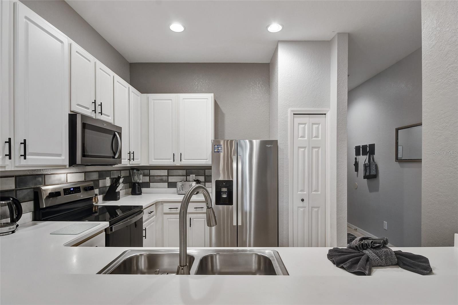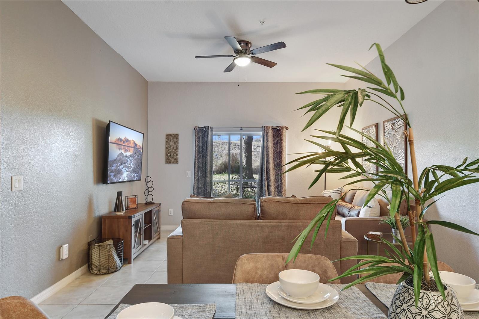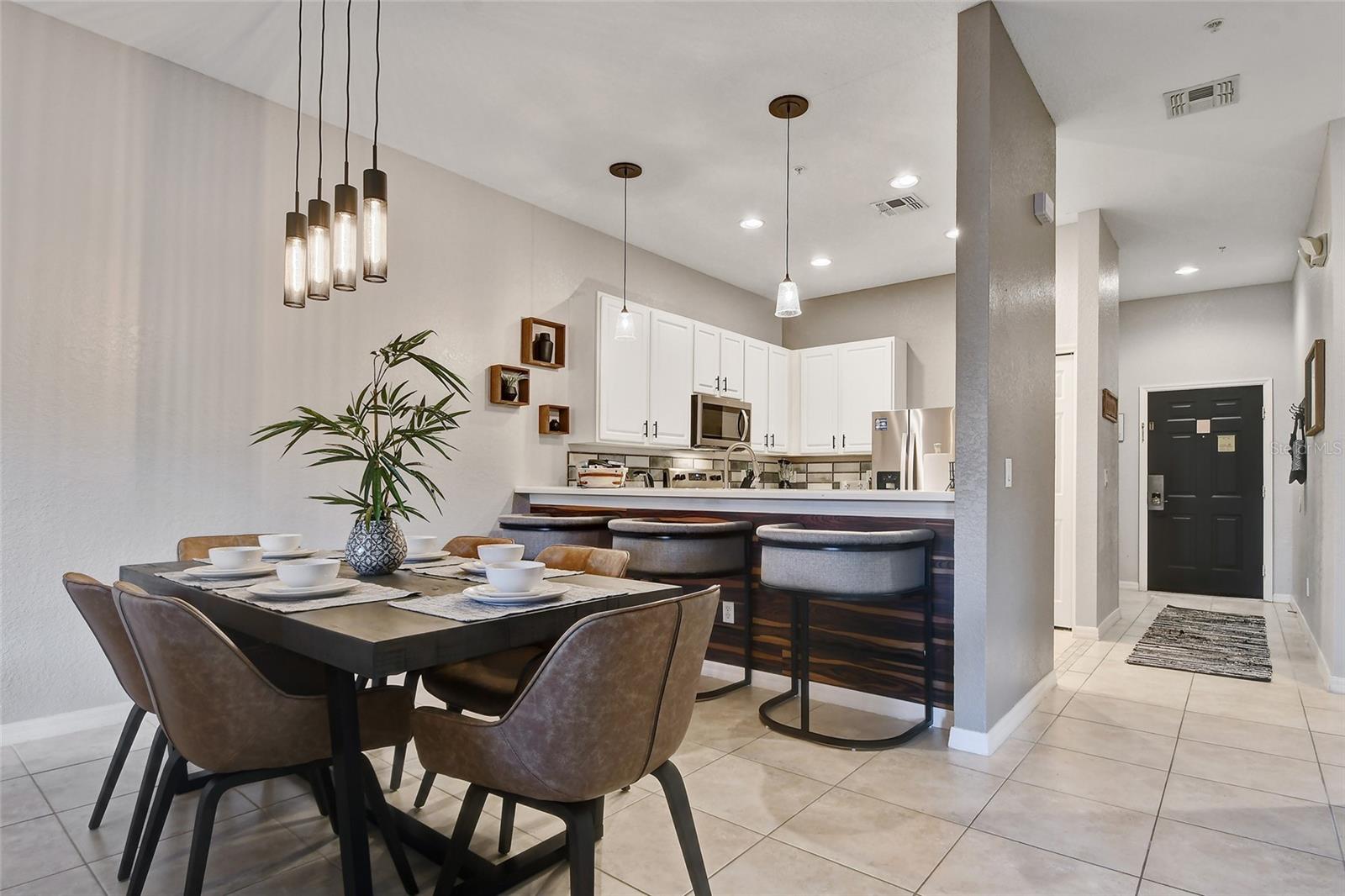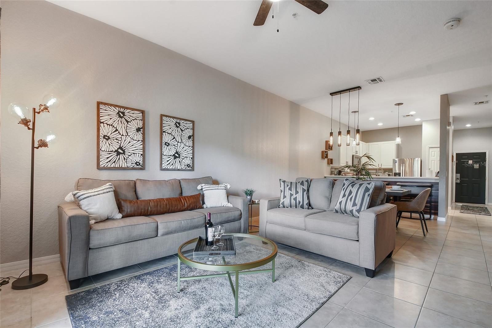 Reduced price! Discover this unique floorplan in Building 10, a rare ground floor unit in a two-story building—one of only two in the entire resort, housing just six exclusive units. This beautifully decorated 2-bedroom condo features a spacious lanai and a large great room with dining and living areas that open to the patio through sliding doors. Inside, you'll find no carpets—just laminate flooring in the bedrooms and tile throughout the rest of the unit. The kitchen boasts stainless steel appliances installed in 2021. The master bedroom, with its en suite bathroom, offers direct access to the patio, complete with outdoor furniture and no rear neighbors, ensuring privacy and tranquility. The second bedroom is charmingly decorated with a bunk bed and a unique collection of limited edition Mickey Mouse figures adorning the wall. The second bathroom is updated with a new vanity, and both bathrooms feature bathtubs. Additionally, the unit includes a convenient laundry room equipped with a washer and dryer. Don't miss the chance to own this exceptional condo in a prime location!
