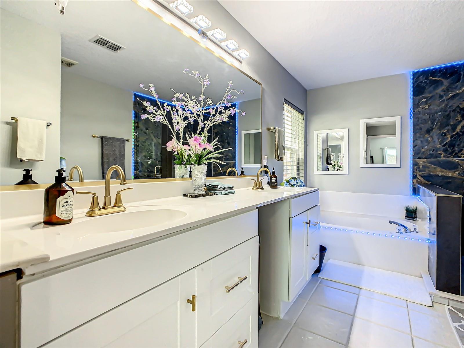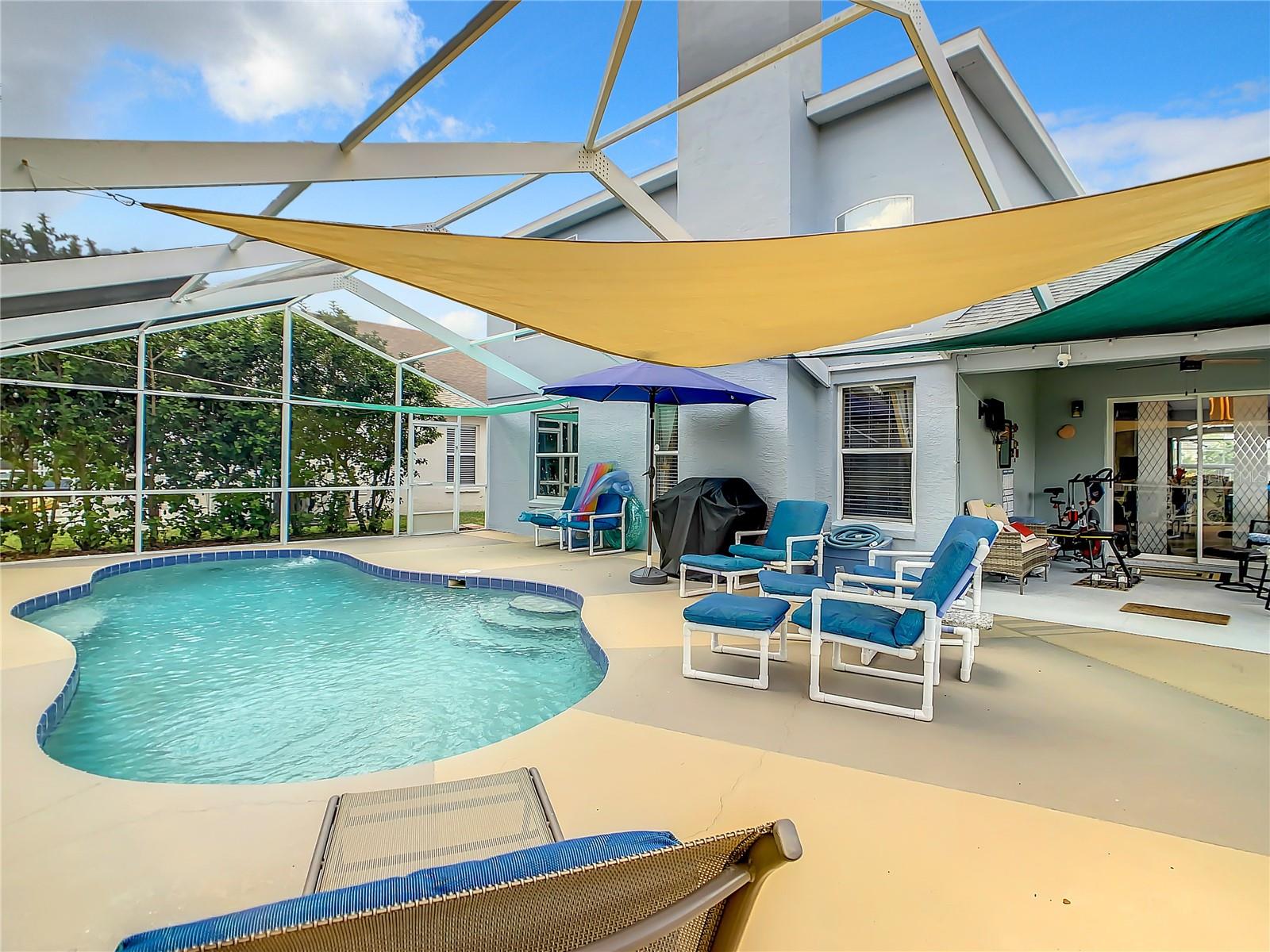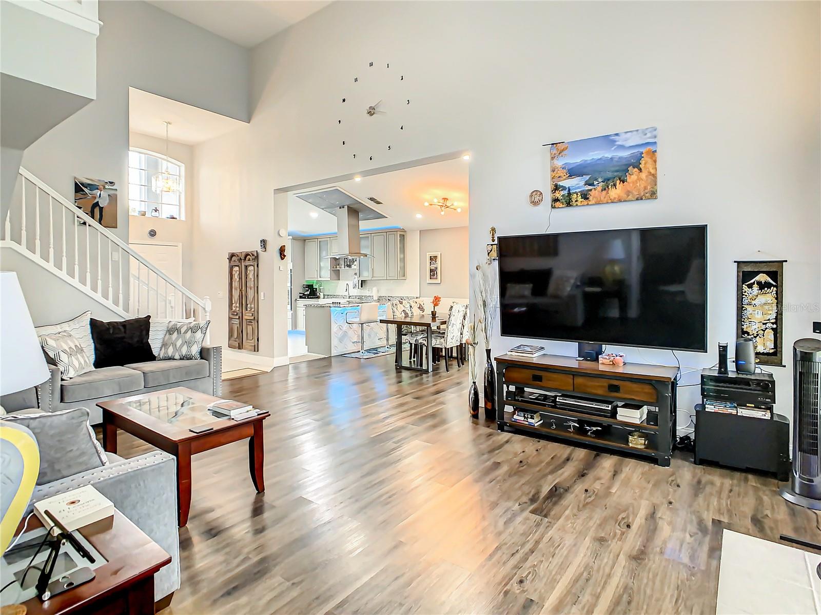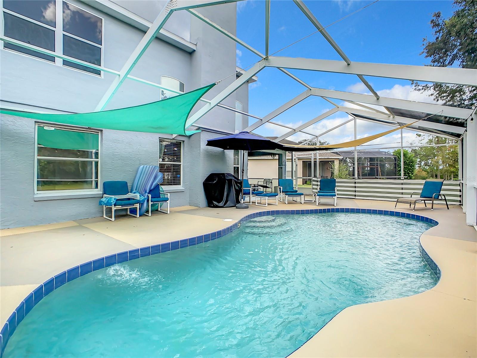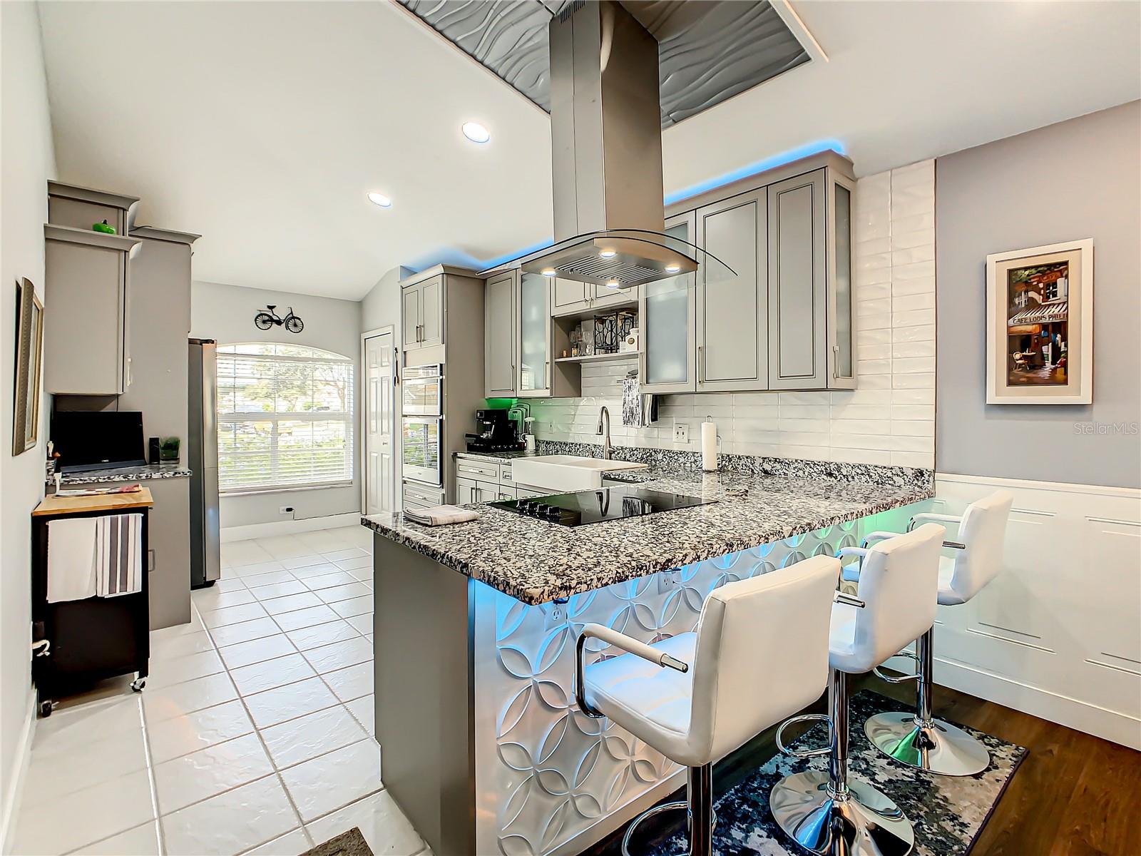 Prepare to be captivated by this exceptional property that defies ordinary descriptions. This exquisite home embodies the pinnacle of perfection, showcasing unparalleled finishes, meticulous arrangement of décor and intricacies. An impeccable selection of top-tier materials has been curated. Every facet of this residence has been thoughtfully modernized, resulting in an awe- inspiring home. Boasting the entire square footage of meticulously designed living space, the provisions for storage and entertainment are boundless. From the moment you come in, you are bathed in natural light, amazing high ceilings and immersed in an open-space concept. Your attention will immediately be drawn to the enchanting fireplace, seamlessly integrating with the poolside ambiance, creating a tranquil oasis. The attention to detail is unparalleled. Resting on an expansive parcel of land, this home offers a haven of modern elegance. Painstakingly renovated, upgrades include a new roof, resplendent new flooring throughout, fully renovated bathrooms, fresh interior and exterior paint, and an exceptional kitchen with solid premium wood cabinets, merging with Luxurious stone countertops, and state-of-the-art appliances. The homeowner's association fees are attractively low, the community's pristine condition a reflection of their neighborhood care. To top it all off, your future home has additional amenities, like an 18-hole Golf Course, Dual Pools and Tennis, Playground and Parks, Residents, shaded pathways flanked by mature trees. And just minutes away from the enchantment of Disney.
