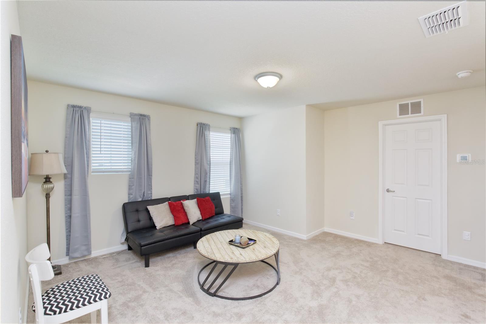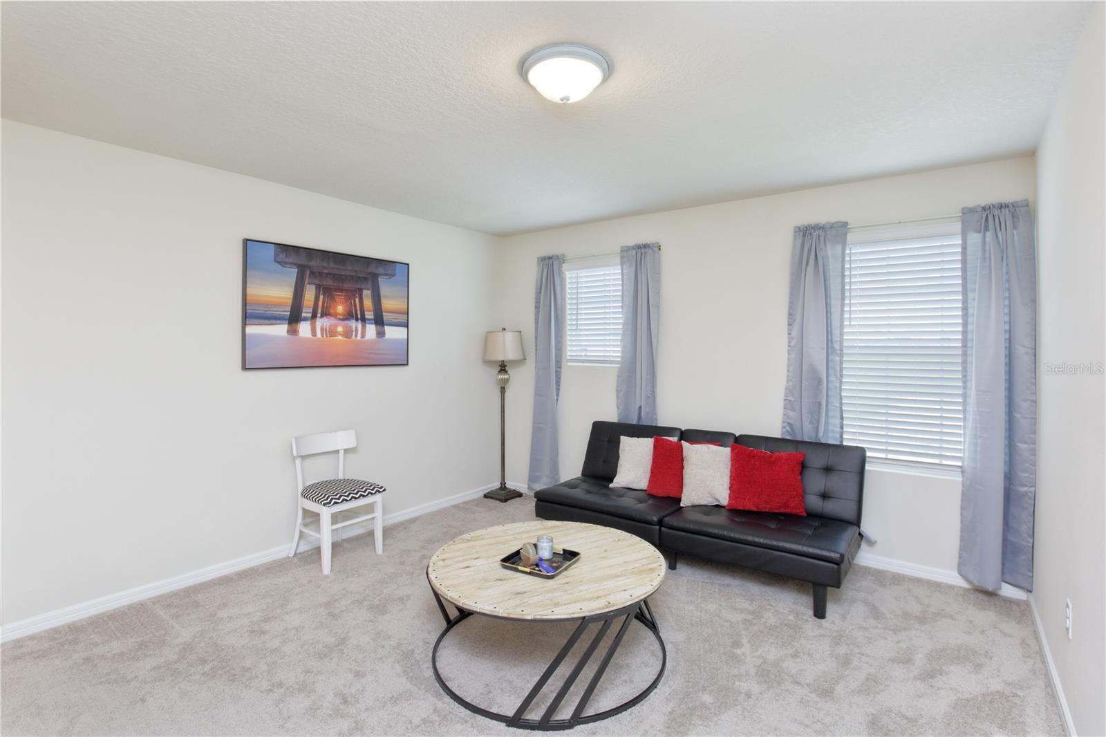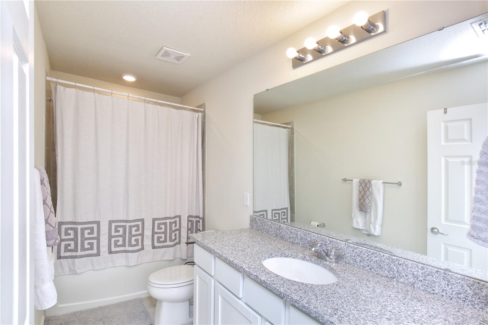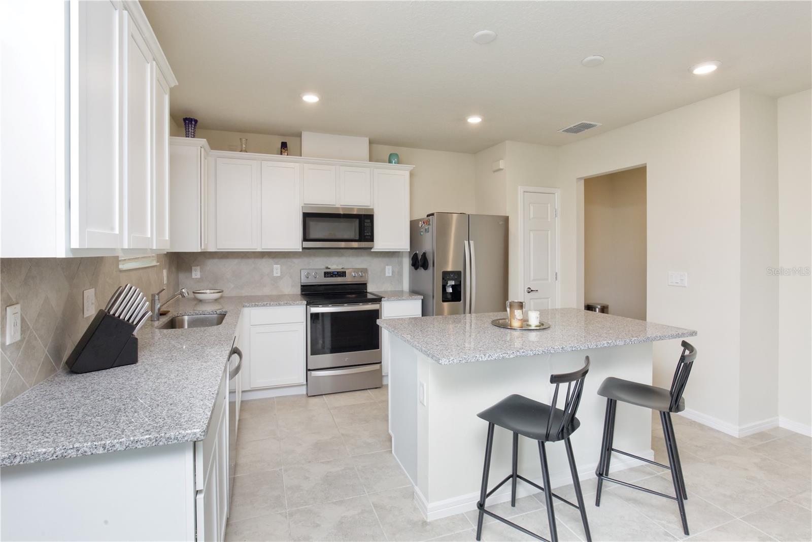 Short Sale. Practically NEW and move-in ready! Sellers’ relocating is your opportunity for a basically NEW home built by Pulte’s Centex moniker that includes a vinyl privacy fence and added screened-in patio with ceiling fan. Built to last by Pulte who stands behind their product with a transferable 10 year limited structural warranty! Beautiful, spacious open floor plan with high ceilings. Granite countertops throughout, ceramic tile & carpet flooring, energy-efficient systems and solar panels. 4 bedrooms, 2 full baths and a desired but rare 1st floor half bath, Office, Great room, spacious Loft and 2nd floor Laundry. Luxury Owners’ Suite with large walk-in closet and luxury bath. Kitchen has pantry and large island big enough for work and eating space. The community pool with play area is conveniently located across the street. No houses will ever be built across the street because of the dry pond area. Pulte Centex has sold out in the Forest Lake community so here is your chance to own a home by this award winning builder. Make your appointment to see this home that has only been LIVED IN FOR 6 MONTHS!