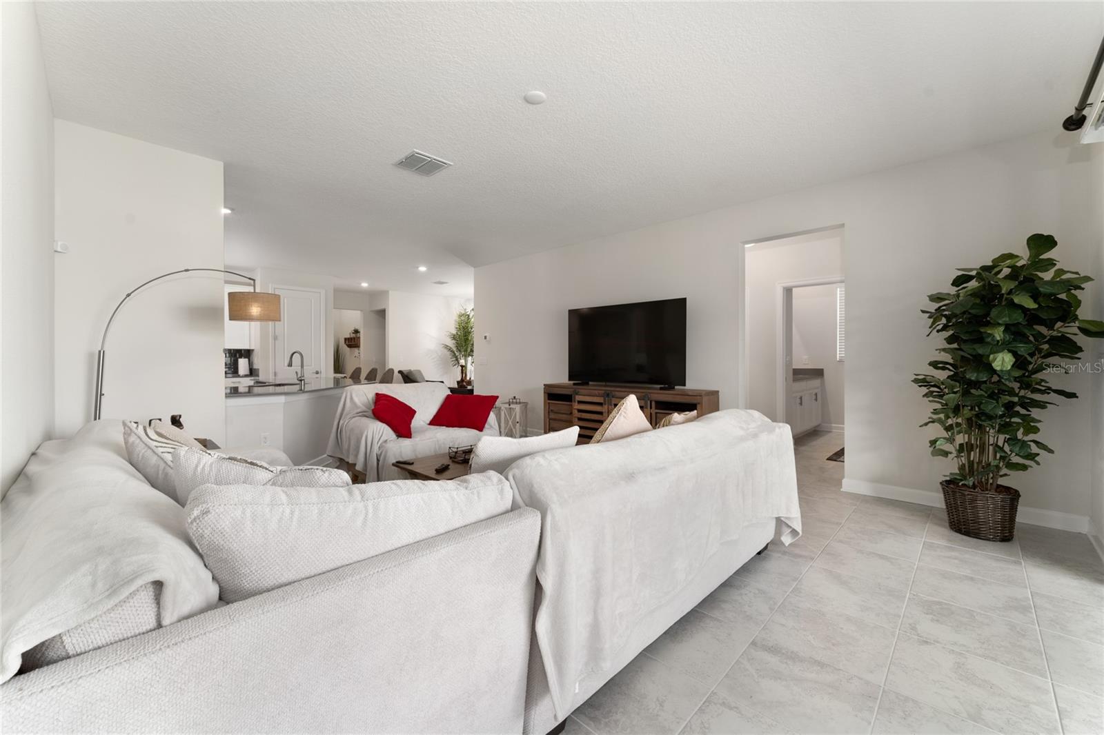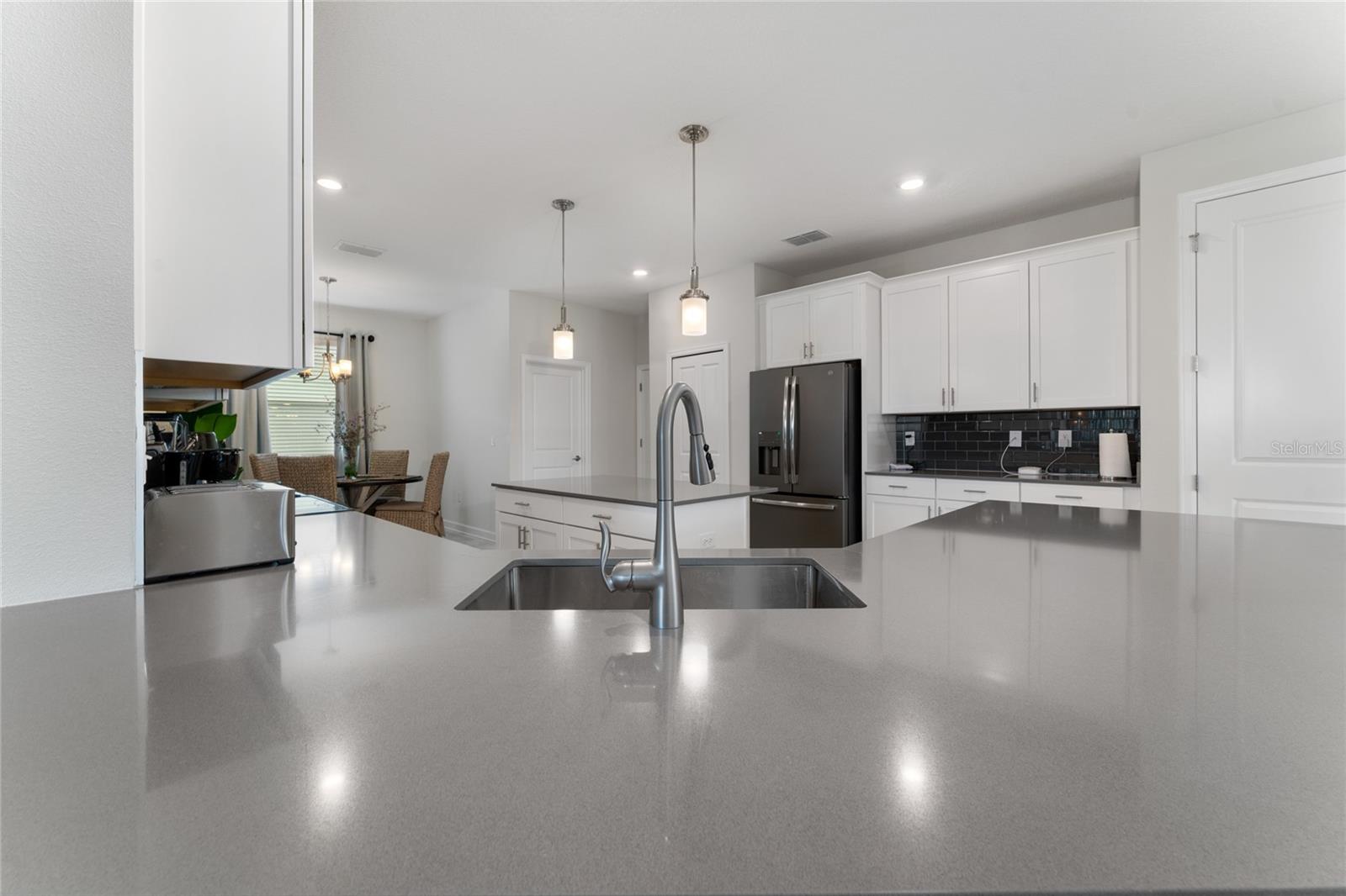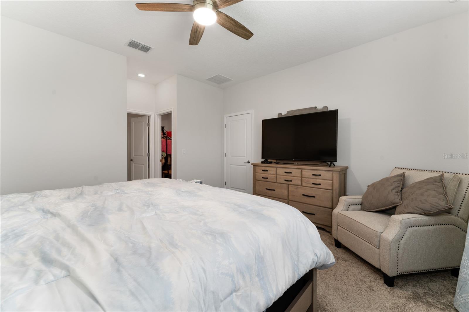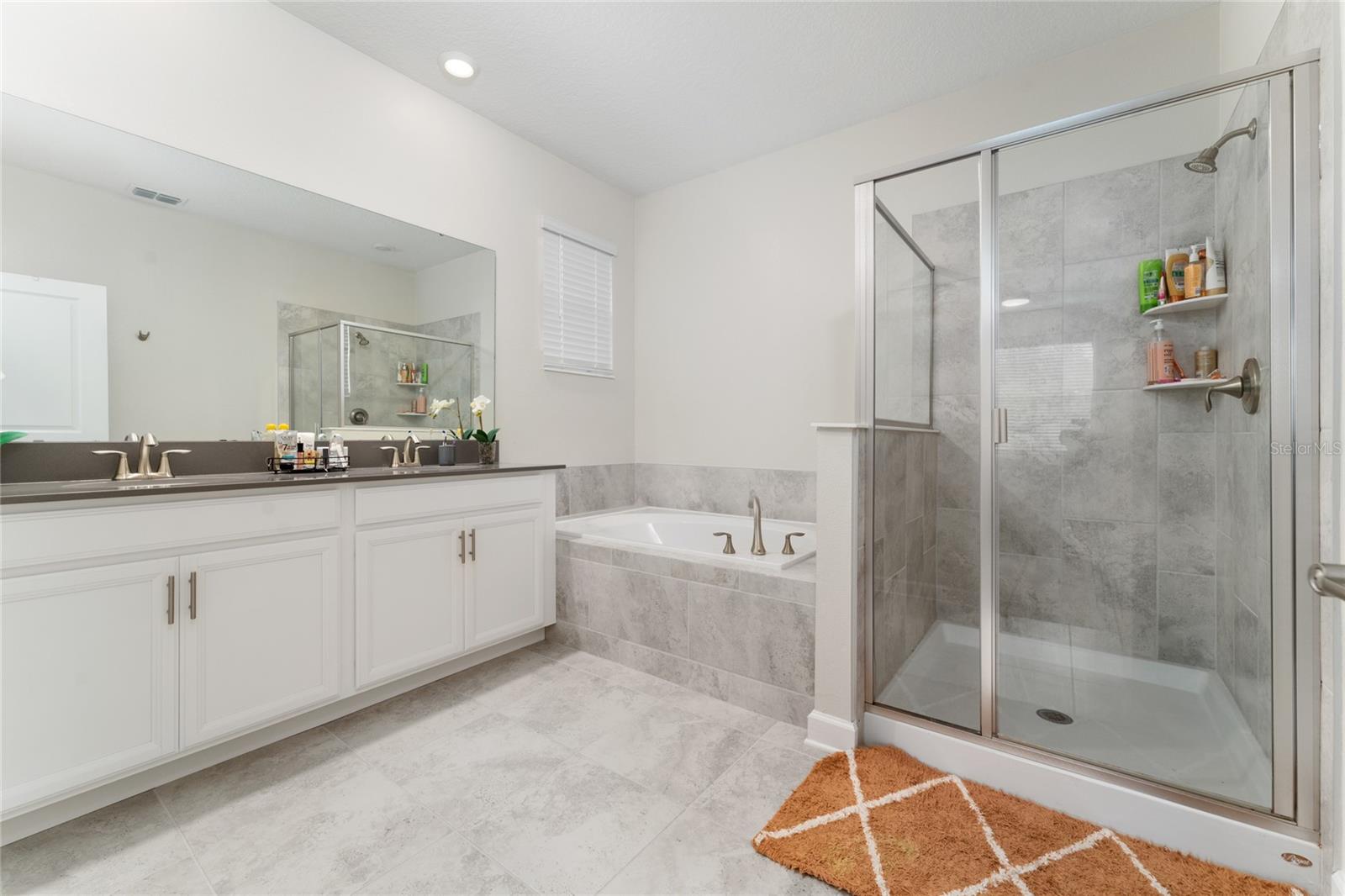 Motivated Seller!! Price Reduced Beatiful Corner Lot. This immaculate 4-bedroom, 3-bathroom home is a true gem. As you enter through the foyer, you'll immediately notice the thoughtfully designed layout. The kitchen, situated to your right, is a culinary enthusiast's dream. It boasts an abundance of cabinets, an inviting eat-in area, a convenient island with seating, an elegant backsplash, a pantry for storage, and exquisite crown molding. The master suite is a tranquil retreat with its own walk-in closet, providing ample space for your wardrobe. The master bathroom is equally impressive, featuring dual sinks, a separate shower, and a luxurious garden tub – perfect for unwinding after a long day. Step onto the screened-in patio, where you can relax comfortably while enjoying the outdoors. A cooling fan adds to your comfort, making it an ideal spot to unwind. The spacious backyard offers exciting possibilities, whether you envision a pool for those hot summer days or a flourishing garden. This home is nestled in a community that truly caters to your lifestyle. Enjoy a game of tennis, watch your little ones play at the playground, or make use of the clubhouse for gatherings. And when it's time to beat the heat, you have not one, but two swimming pools to choose from. Whether you're looking to swim laps or enjoy family time, these pools have you covered. With exciting features like slides and a walk-in area, everyone can have a great time. And for those who appreciate golf, the added bonus of a golf course within the community completes the picture. Don't miss out on this incredible opportunity. Contact us today to schedule your appointment and experience all that this home and community have to offer.