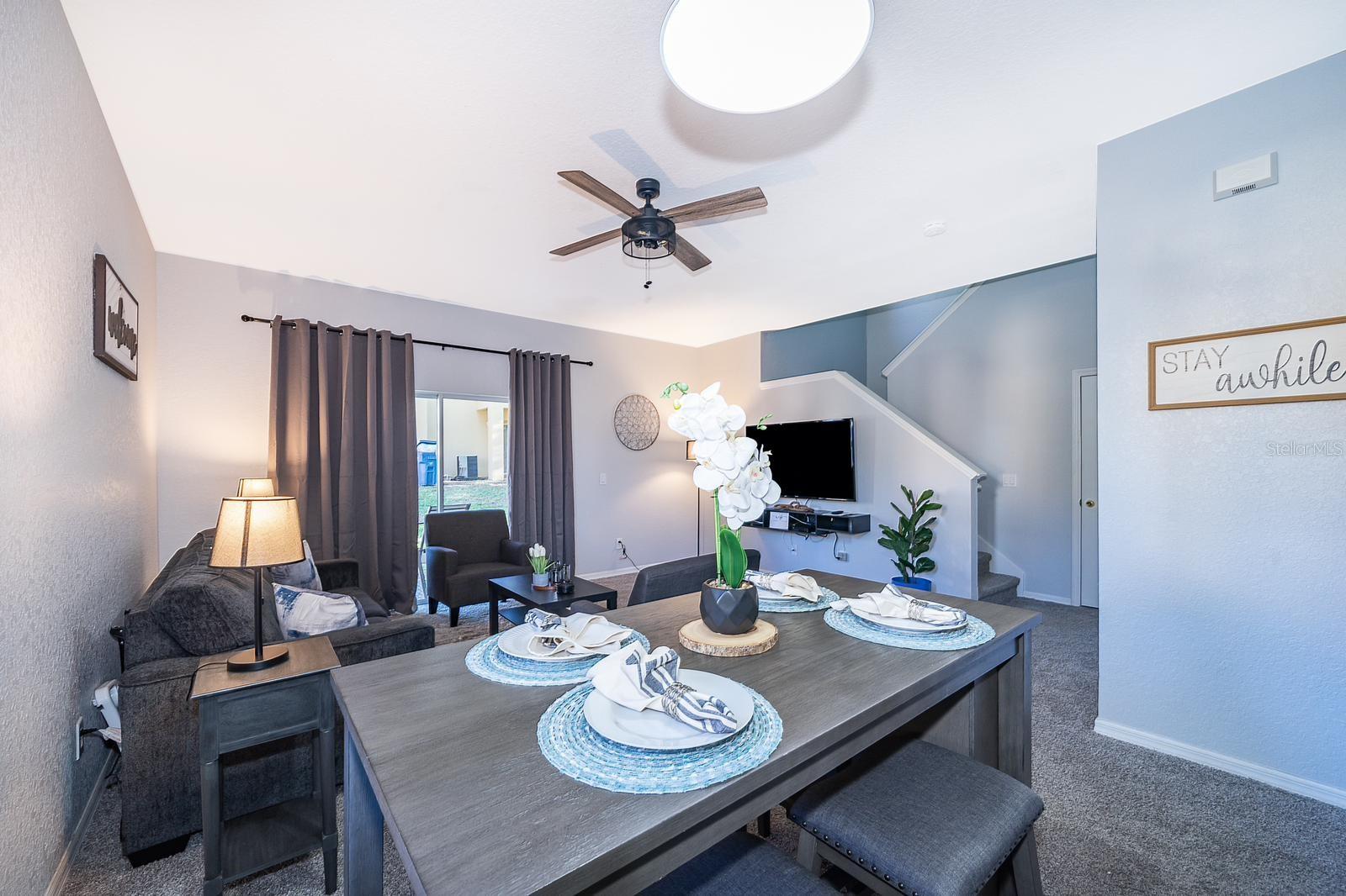 This home is eligible for up to $11,000 at closing for any borrower who is a first-time home buyer and currently lives in one of the designated zip codes could qualify for $5,000 of funds towards down payment, up to $5,000 for closing costs, $500 appraisal credit and $500 home warranty credit. Welcome to where vacation vibes meet the comfort of home! This bright and spacious FULLY-FURNISHED townhouse offers a haven of relaxation in a prime location. As you step inside, you'll be greeted by an open concept layout that effortlessly blends style and functionality. With four bedrooms and three bathrooms, there's plenty of space for you and your loved ones to unwind and recharge. The fourth bedroom located downstairs provides additional versatility, whether you need a guest room, home office, or play area. At 1856 square feet, this property ensures everyone has their own slice of paradise. Prepare to be wowed by the spectacular 5 star amenities that await you! From the shimmering pool to the well-equipped fitness center, there's something for everyone here! Located in a gorgeous resort with a resort style pool with a waterslide and lazy river, hot tub, indoor sauna, steam, tiki bar & restaurant, sand volleyball courts, arcade, playground, spa service and so much more! Explore nearby parks, stroll through charming shops and cafes, or indulge in delicious cuisine at local restaurants. Primely located just minutes from Disney World Theme Park and Resorts with easy access to major highways and public transportation, commuting is a breeze, making this home a commuter's dream. Whether you're seeking a permanent residence or a vacation retreat, this townhouse has it all! Don't miss out on the opportunity to make this your own slice of paradise. Call now to schedule a viewing and experience the endless possibilities that await you at this fantastic property!