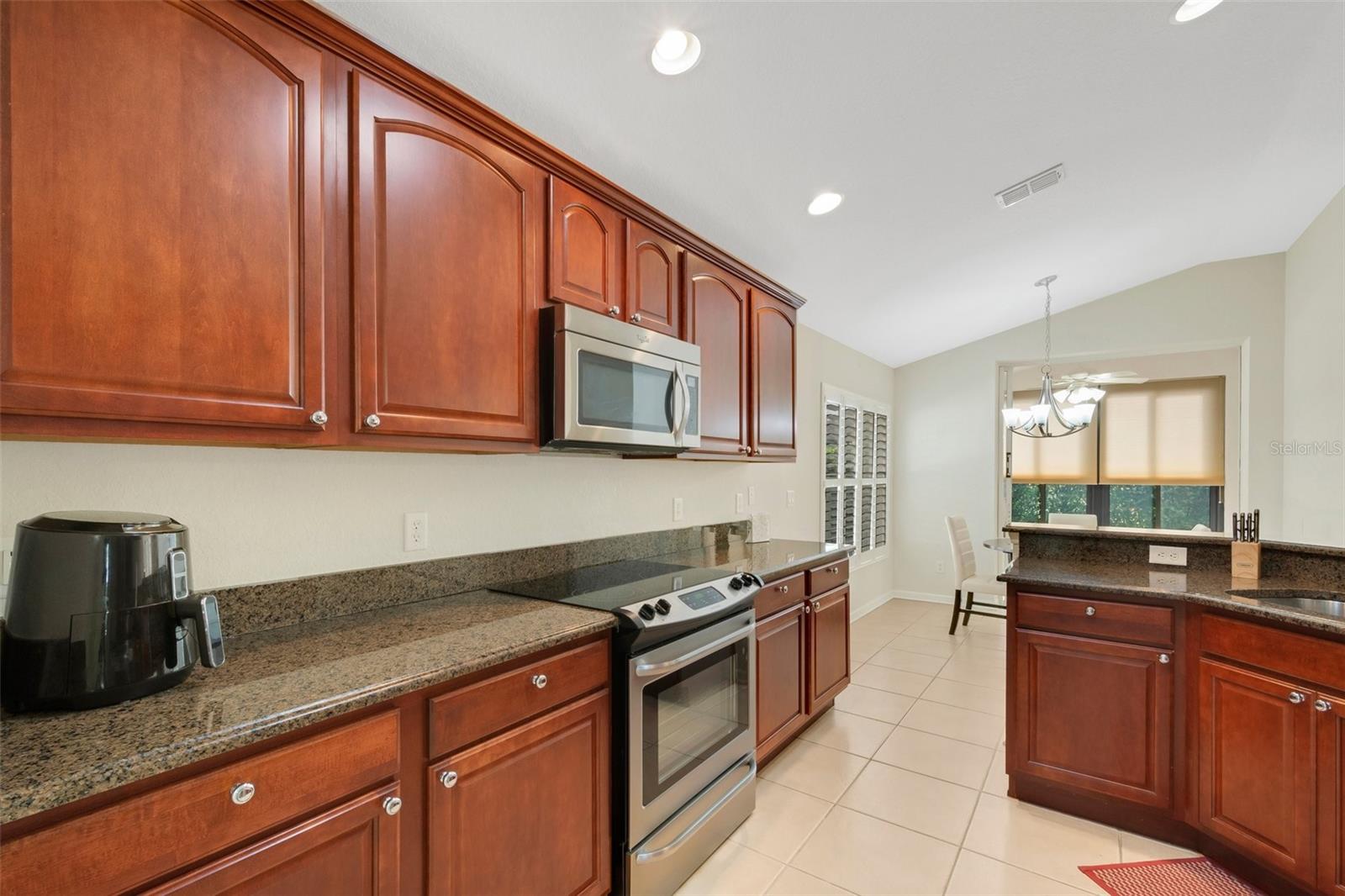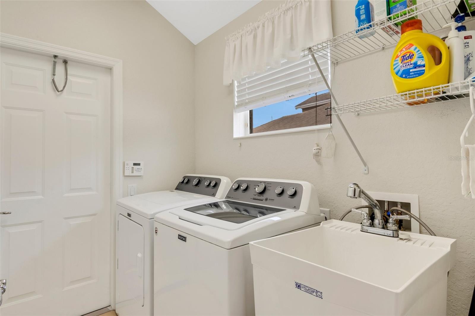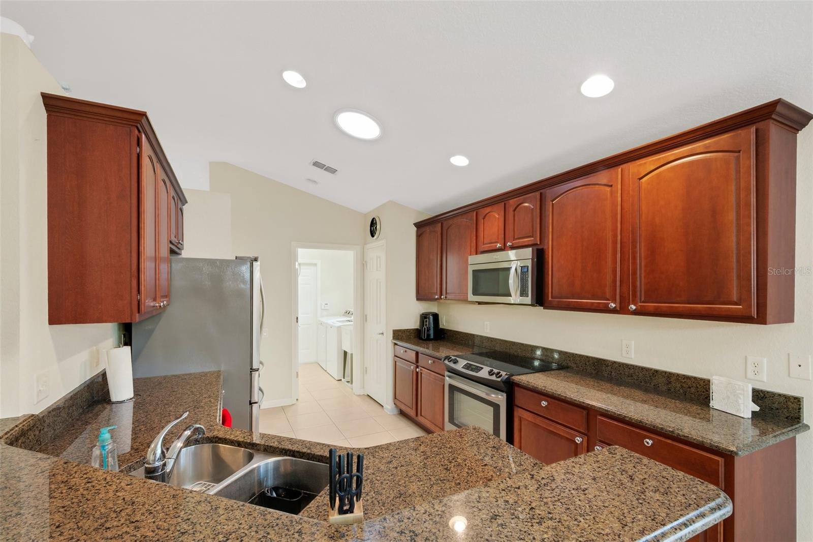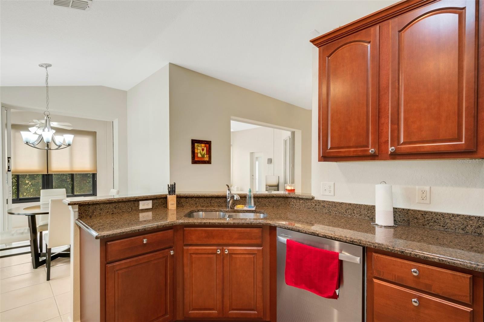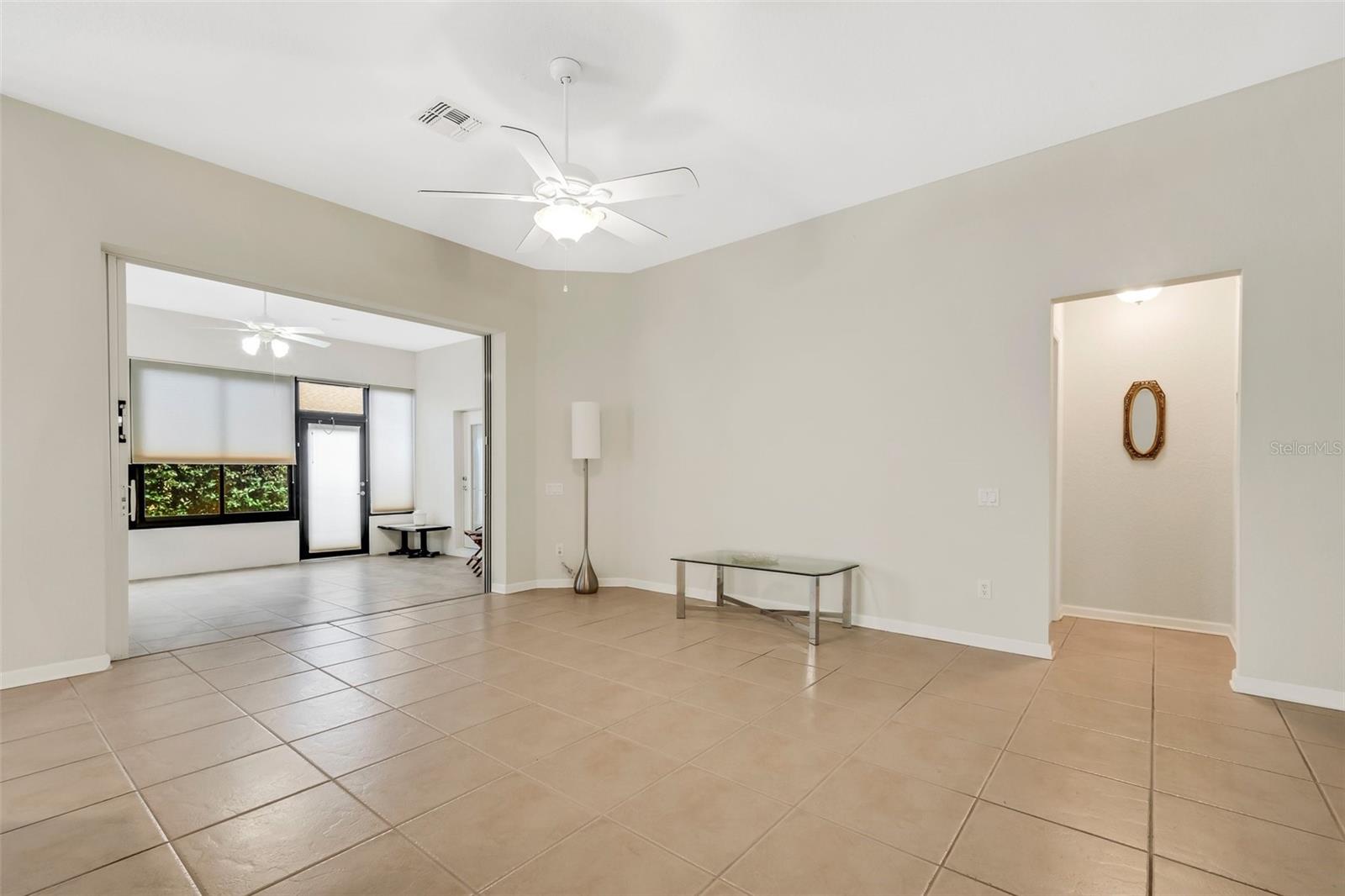 Welcome to Del Webb Orlando! A 55+ community situated inside the gates of Ridgewood Lakes. This popular Madrid floor plan home was built in 2007 and is in great shape. There are 2 bedrooms, 2 bathrooms, a office/den, and an enclosed Florida room perfect for relaxing. The primary bedroom is large with a walk in closet. It also has direct access to the Florida room. The bathroom has dual sinks as well as a separate tub and shower. The kitchen has beautiful cabinets, granite countertops, and gas appliances. Also note the extra light from the solar tube. This home has a formal dining area as well as a dining nook just off the kitchen. There is an inside laundry room with the included washer and dryer. Plantation shutters and ceiling fans are also nice features of most rooms.