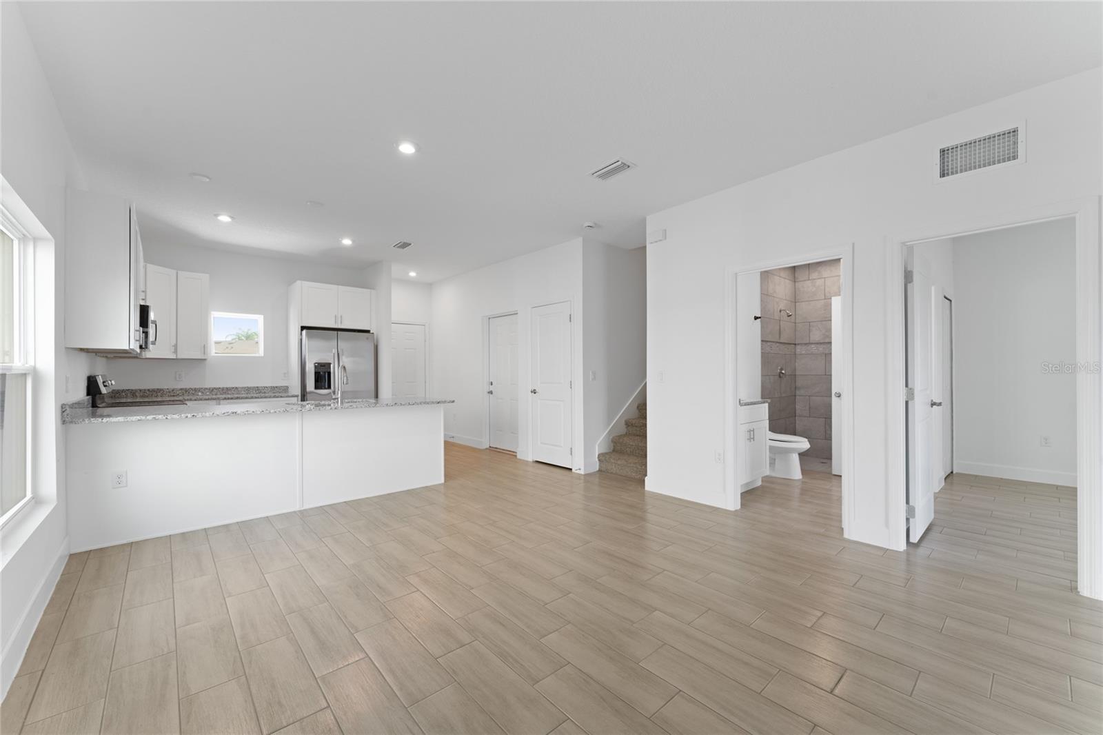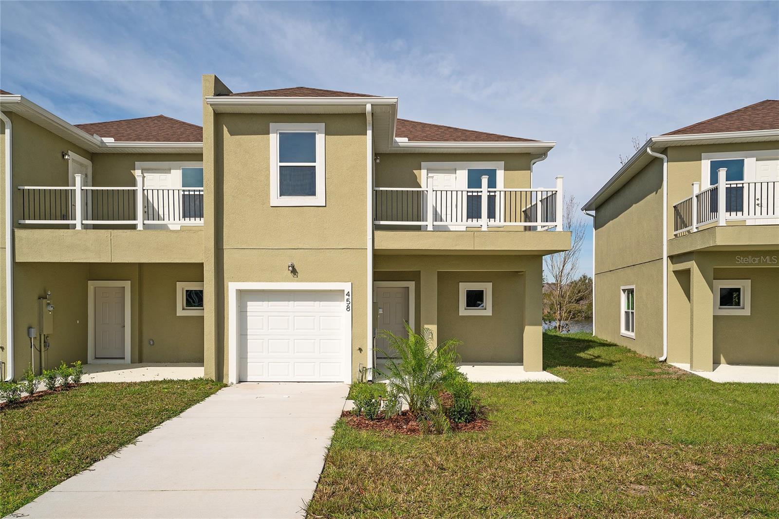 "New Price" Great Opportunity. Great Incentives to the Buyer. NEW 4 bedroom 4 bathrooms. Long Term and Short term Rental ( AIRBNB ) allow. The kitchen has nice countertops with solid wood cabinets including a stainless steel appliances package. Exquisite ceramic tile runs throughout the entire first floor. All bathrooms with granite counter tops. This home has energy efficient upgrades such as spray foam insulation and dual pane low-emittance windows. One bedroom is downstairs and the Primary Bedroom and two more bedrooms upstairs. Great private balcony with nice lake view on the back porch. Located near interstate 4, shopping centers, Reunion Golf Course and Orlando's world class attraction " Disney World ". This community allows short term, vacation rentals and long term rental. Great Investment or First home. Do not miss out on this dream opportunity!!!