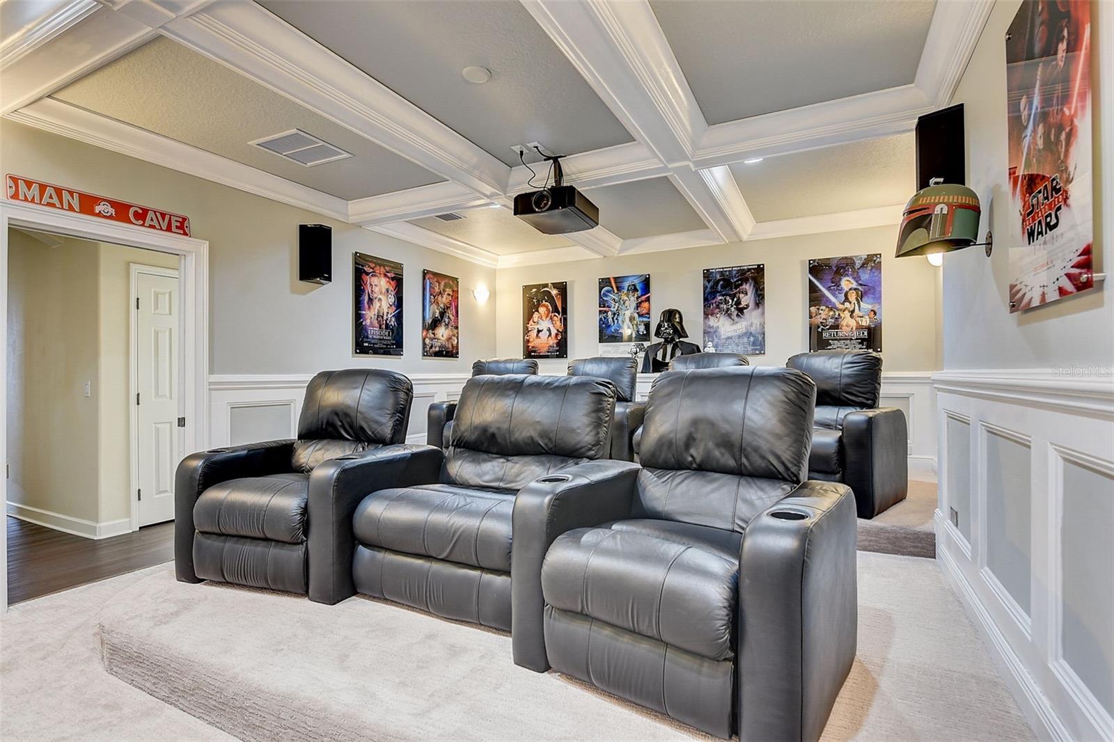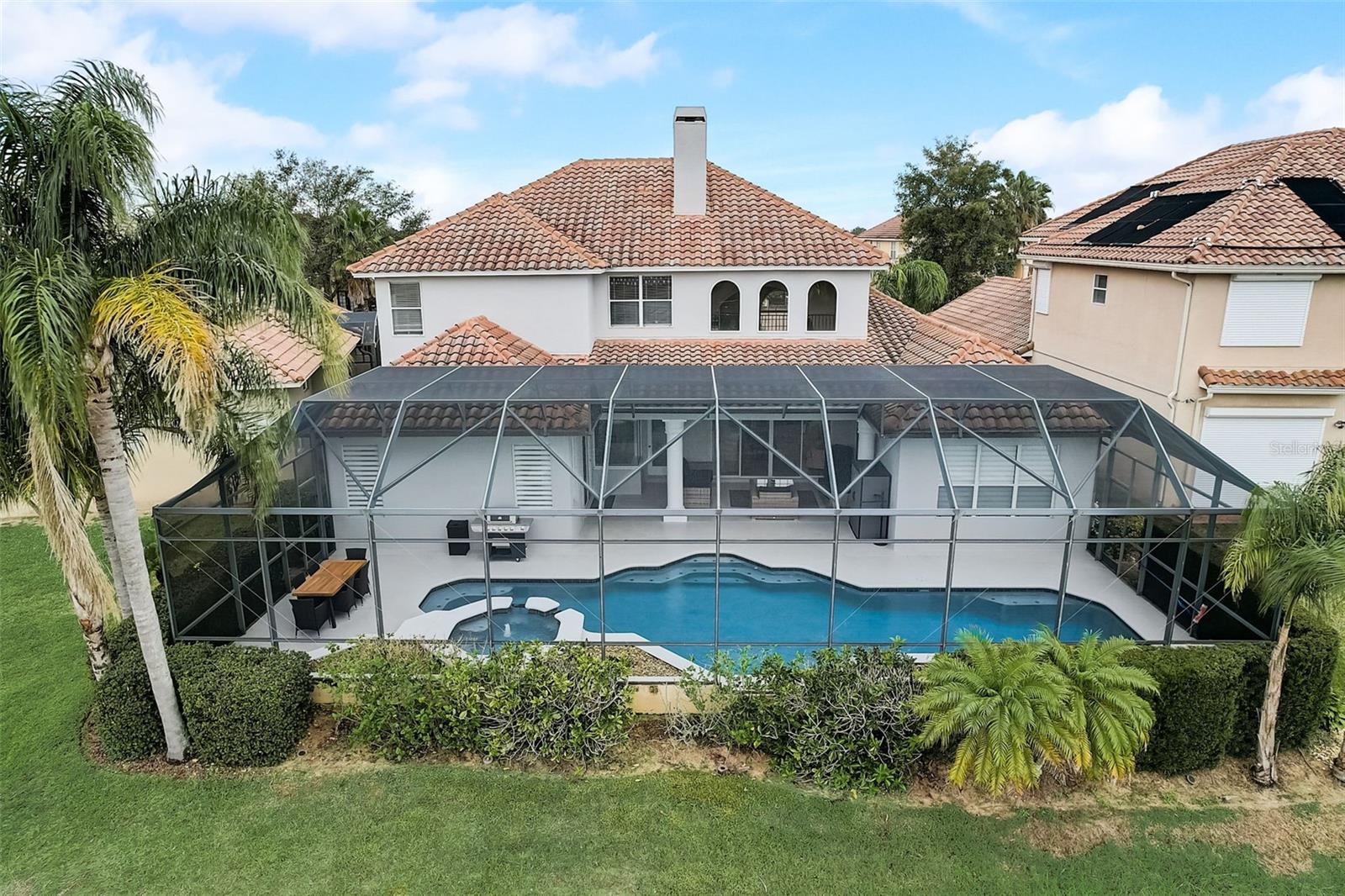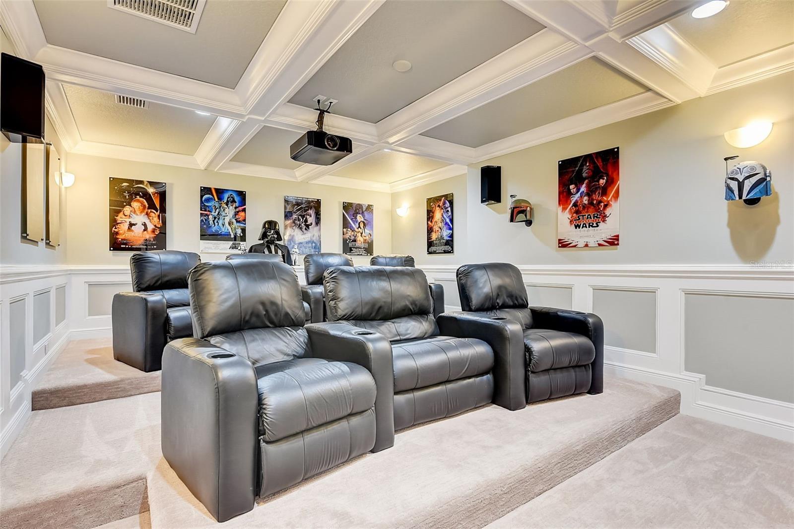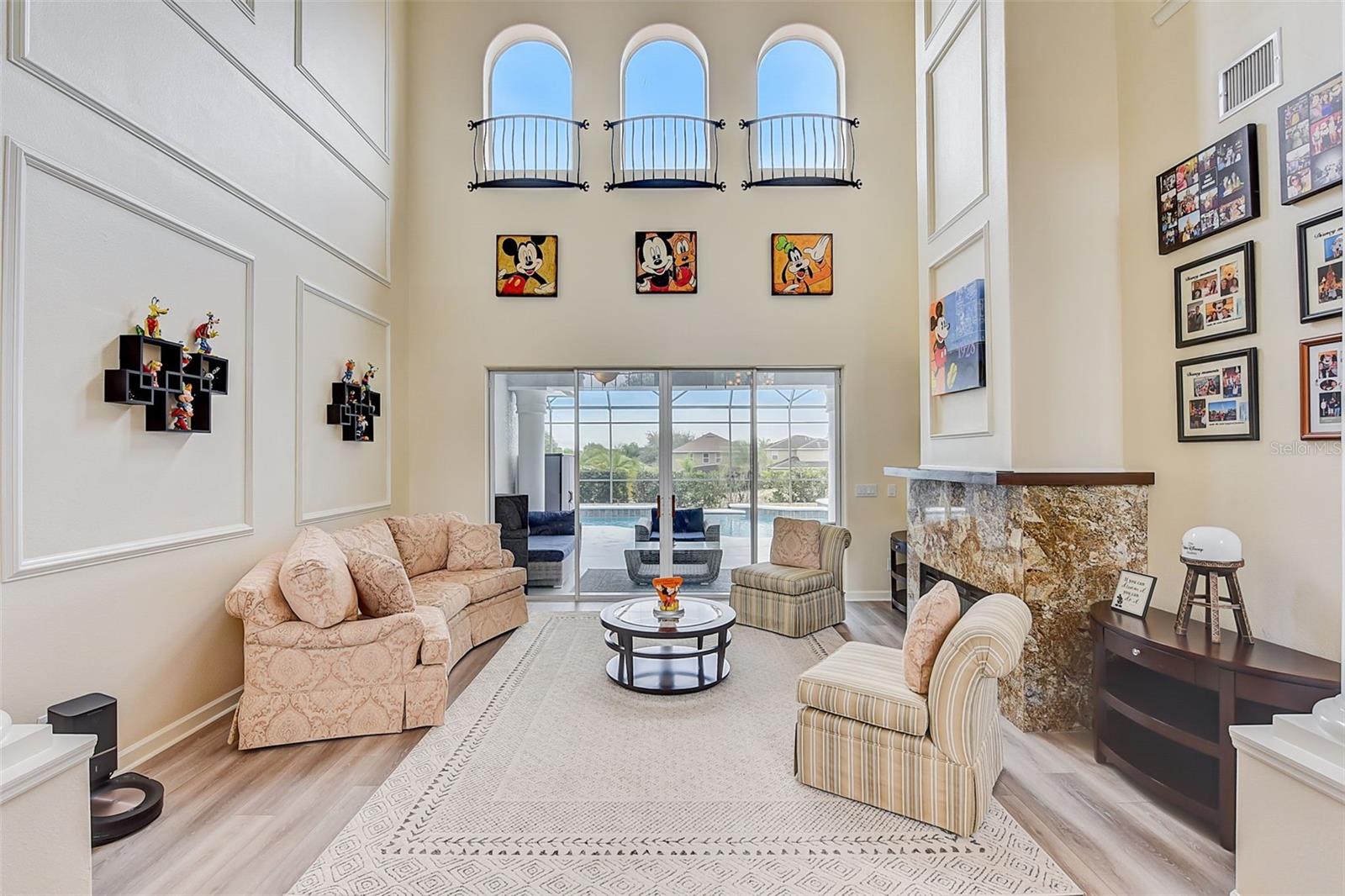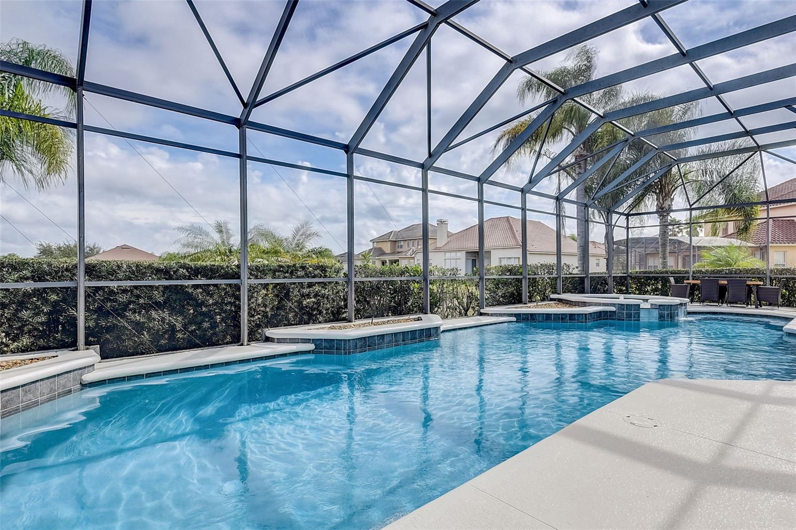 Welcome to this stunning home in the award-winning community of Providence in Davenport, Florida. This impeccably renovated 5-bedroom residence offers a luxurious living experience and an array of impressive features. Upon entering, you are greeted by new front doors and fresh interior & exterior paint, setting the tone for the elegance that awaits inside. The home boasts a spacious layout, with a theatre room and a downstairs office that can also serve as a 5th bedroom. The primary bedroom is located on the main level and occupies its own private wing, complete with double custom closets and a completely renovated bathroom featuring an oversized walk-in shower, stand-alone tub, and double vanities with beautiful waterfall countertops. Tray ceilings and LVP flooring add to the allure of the primary bedroom. The interior of the home has been thoughtfully enhanced with a host of upgrades, including new flooring throughout the first floor and stairs, new carpet in the theatre room, full interior paint, and upgraded lighting. The kitchen has been transformed with all-new quartz waterfall countertops, a farm sink, and updated appliances. It is truly a show piece of the home and adds a great place to entertain. Upstairs, there is a flex space loft that welcomes you at the top of the stairs. There are two additional bedrooms and two full bathrooms. The theatre room features tiered theatre seating and comes fully equipped for your viewing pleasure. Outside, the property offers a 3-car garage with an EV plug and new exterior paint. The landscaping and curbing have been meticulously updated, adding to the home's exceptional curb appeal. Additionally, a new pool heater has been installed, enhancing the allure of the outdoor living space. The pool area offers it's own private oasis complete with spa, oversized covered patio, and massive screen enclosure. Situated in the sought-after community of Providence, residents enjoy access to a wealth of amenities, including a 24-hour guarded gate, a zero-entry pool, a junior Olympic pool, sidewalks throughout, a clubhouse, golf course, dog park, fitness center, and tennis courts. This home represents an unparalleled opportunity to experience luxurious living in a prestigious community. Don't miss your chance to make this exquisite property your own. Schedule a showing today and prepare to be captivated by everything this home has to offer.