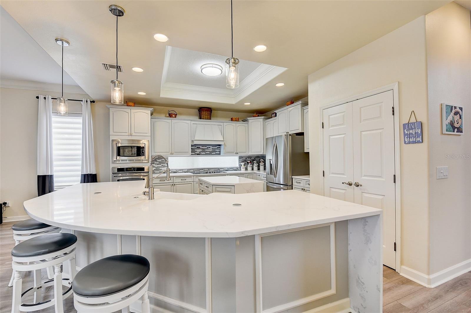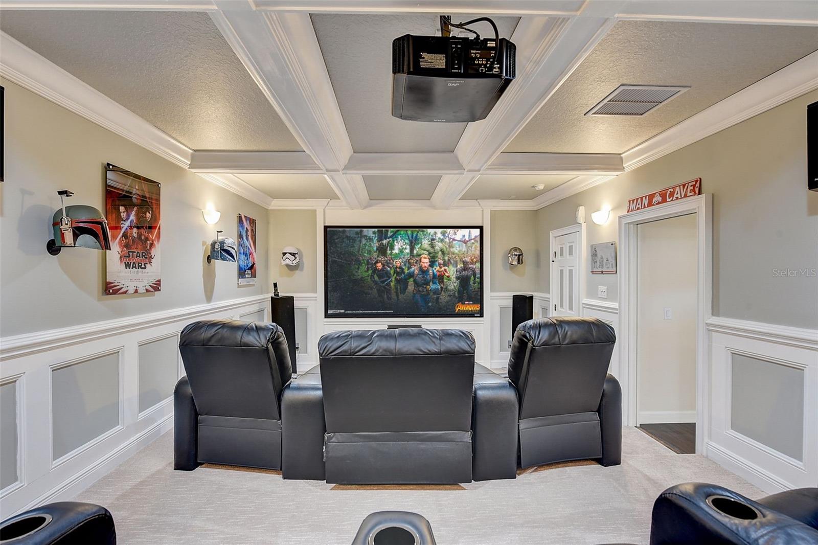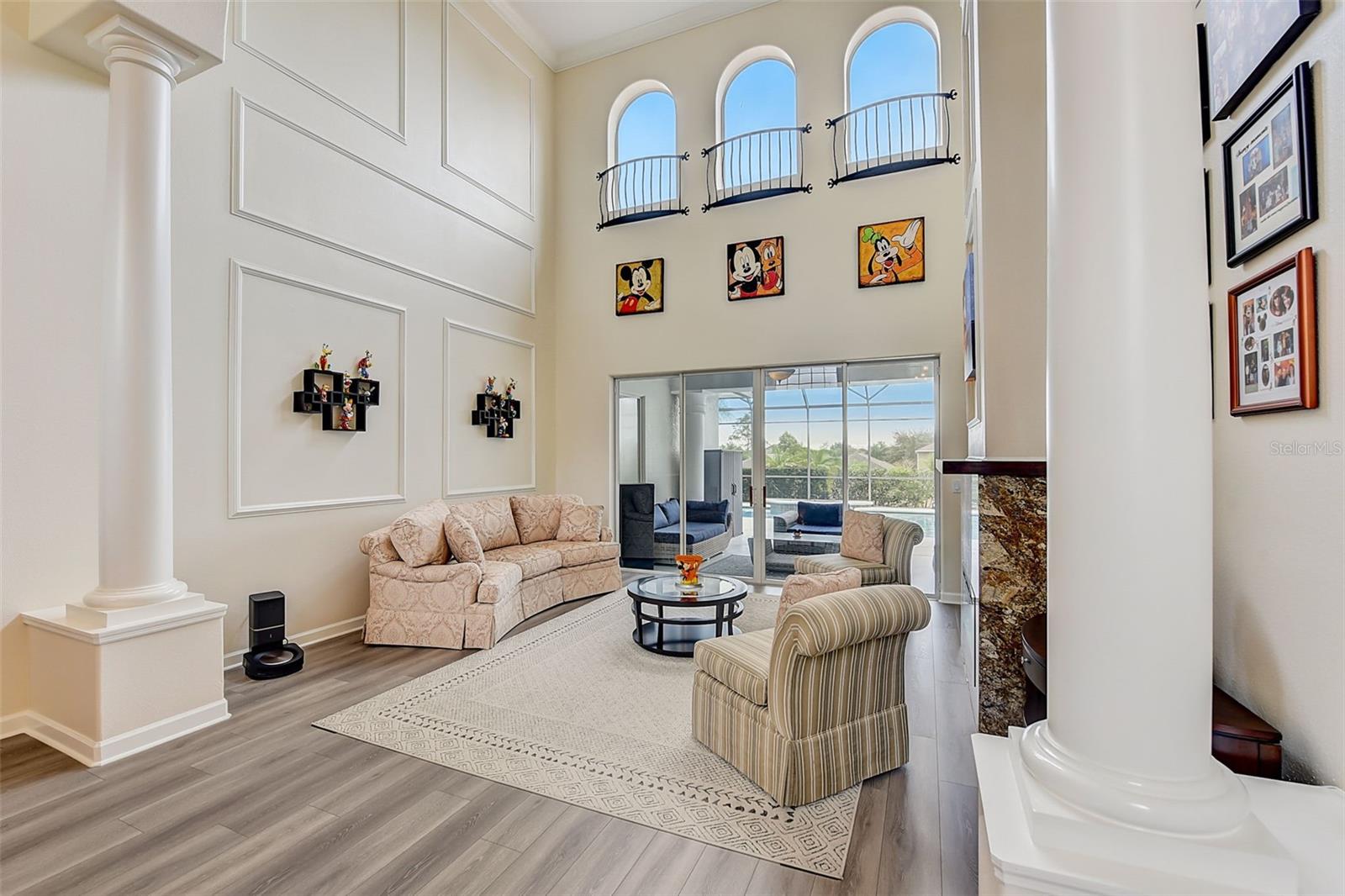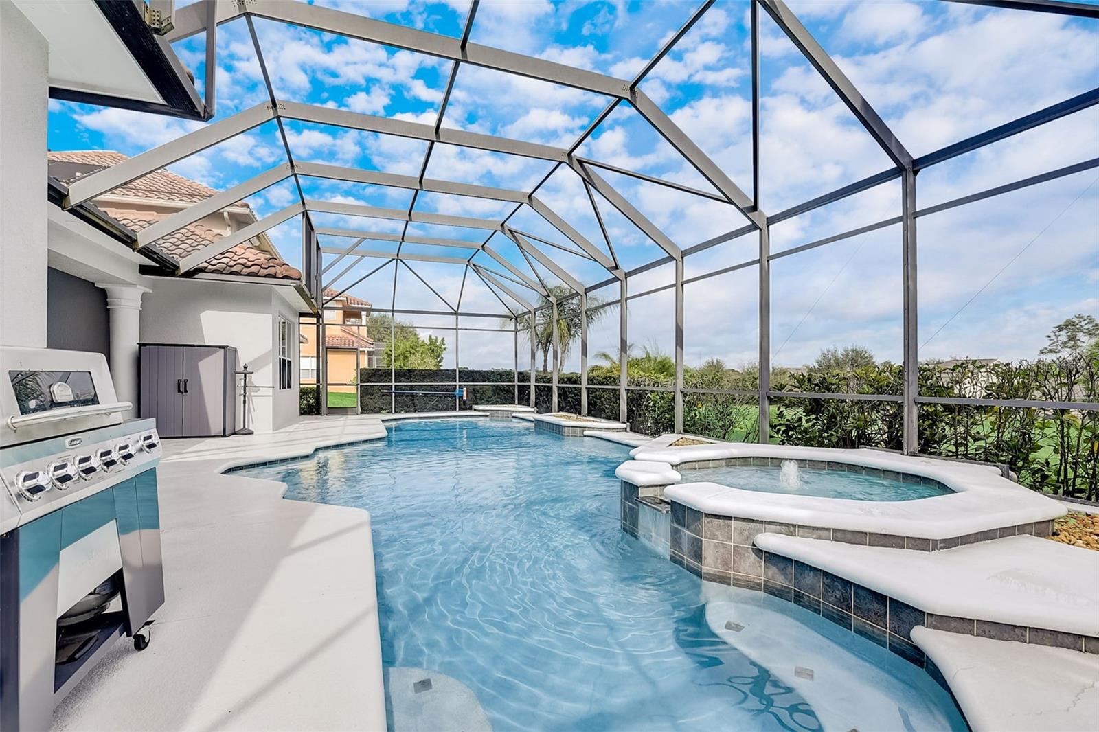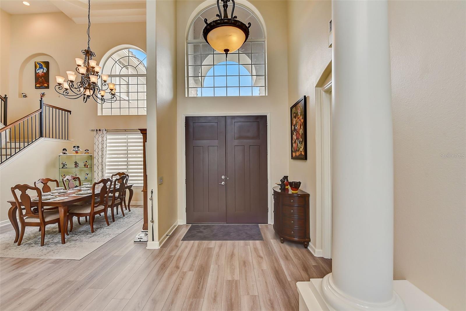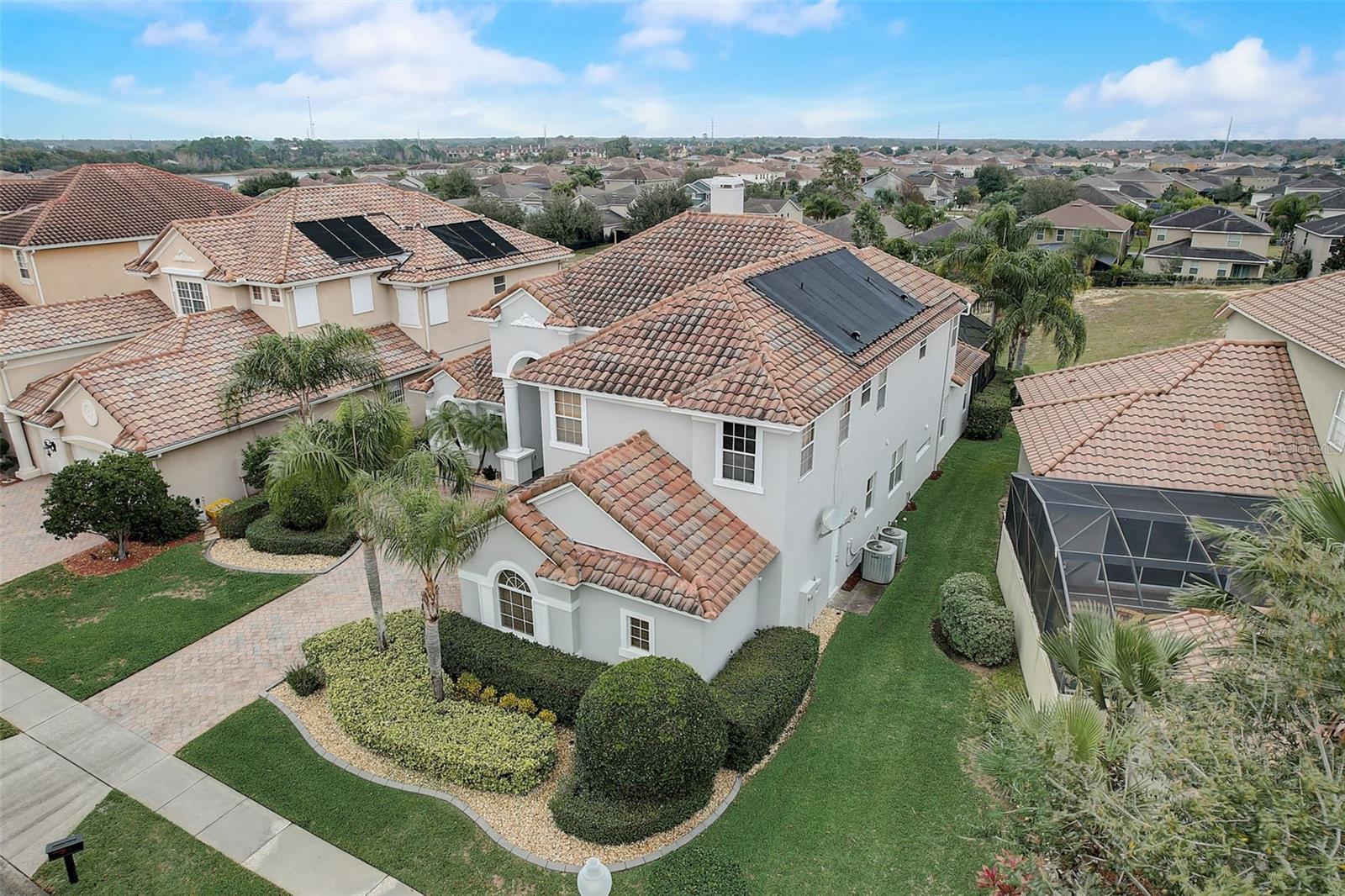 Welcome to this stunning home in the award-winning community of Providence in Davenport, Florida. This impeccably renovated 5-bedroom residence offers a luxurious living experience and an array of impressive features. Upon entering, you are greeted by new front doors and fresh interior & exterior paint, setting the tone for the elegance that awaits inside. The home boasts a spacious layout, with a theatre room and a downstairs office that can also serve as a 5th bedroom. The primary bedroom is located on the main level and occupies its own private wing, complete with double custom closets and a completely renovated bathroom featuring an oversized walk-in shower, stand-alone tub, and double vanities with beautiful waterfall countertops. Tray ceilings and LVP flooring add to the allure of the primary bedroom. The interior of the home has been thoughtfully enhanced with a host of upgrades, including new flooring throughout the first floor and stairs, new carpet in the theatre room, full interior paint, and upgraded lighting. The kitchen has been transformed with all-new quartz waterfall countertops, a farm sink, and updated appliances. It is truly a show piece of the home and adds a great place to entertain. Upstairs, there is a flex space loft that welcomes you at the top of the stairs. There are two additional bedrooms and two full bathrooms. The theatre room features tiered theatre seating and comes fully equipped for your viewing pleasure. Outside, the property offers a 3-car garage with an EV plug and new exterior paint. The landscaping and curbing have been meticulously updated, adding to the home's exceptional curb appeal. Additionally, a new pool heater has been installed, enhancing the allure of the outdoor living space. The pool area offers it's own private oasis complete with spa, oversized covered patio, and massive screen enclosure. Situated in the sought-after community of Providence, residents enjoy access to a wealth of amenities, including a 24-hour guarded gate, a zero-entry pool, a junior Olympic pool, sidewalks throughout, a clubhouse, golf course, dog park, fitness center, and tennis courts. This home represents an unparalleled opportunity to experience luxurious living in a prestigious community. Don't miss your chance to make this exquisite property your own. Schedule a showing today and prepare to be captivated by everything this home has to offer.
