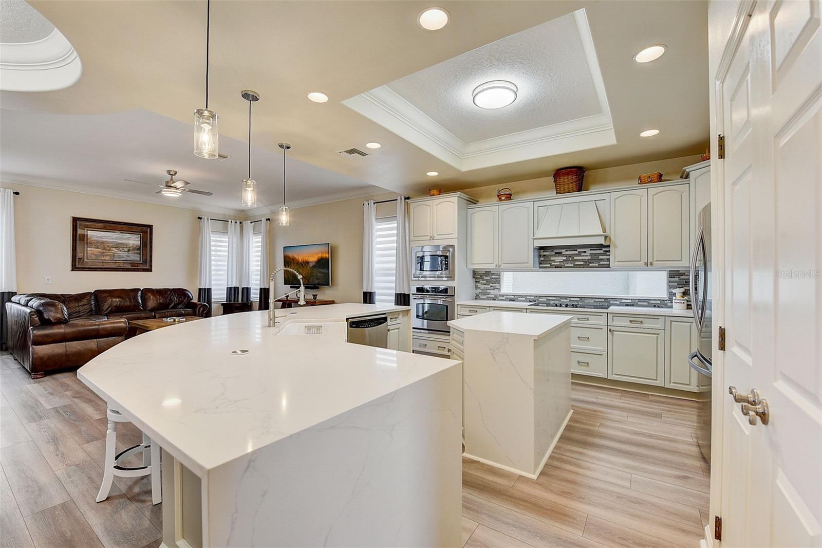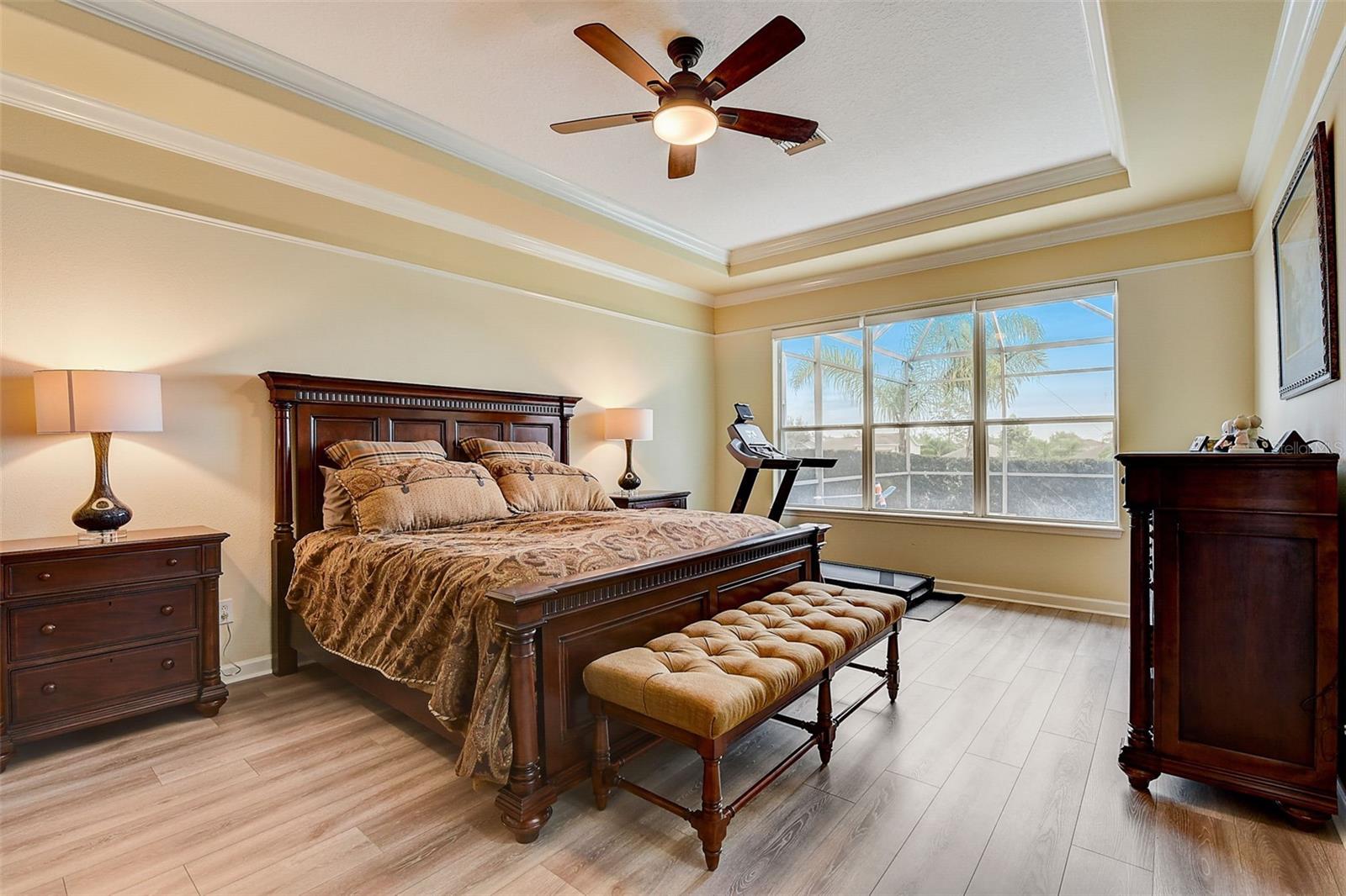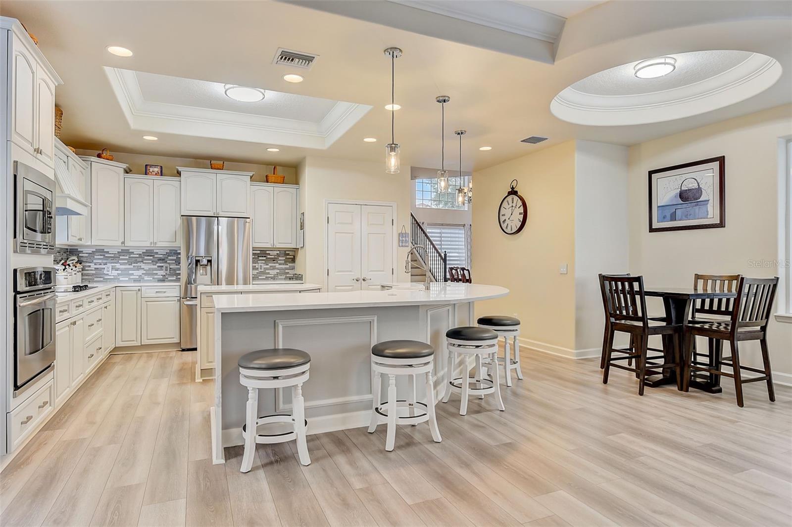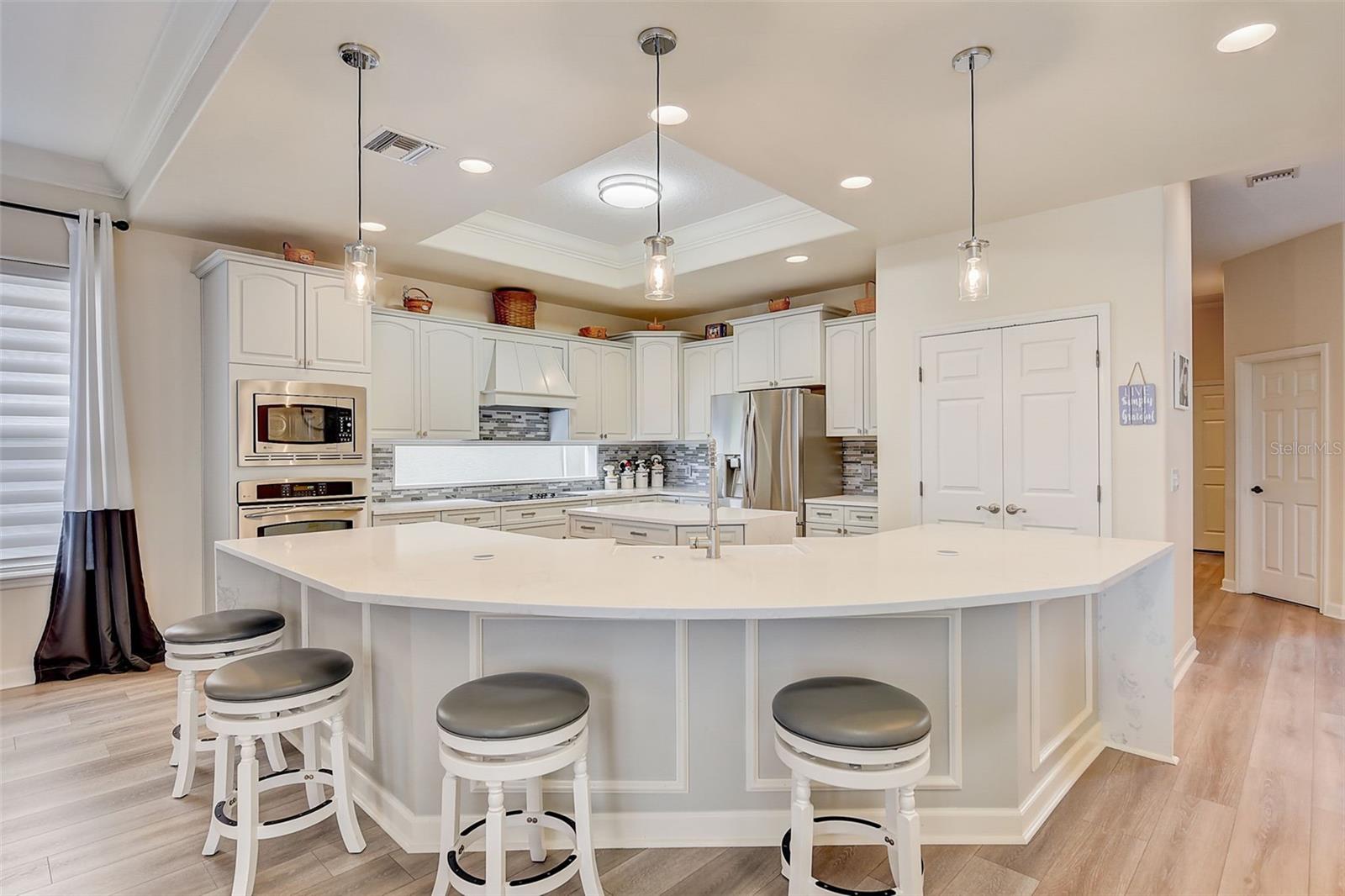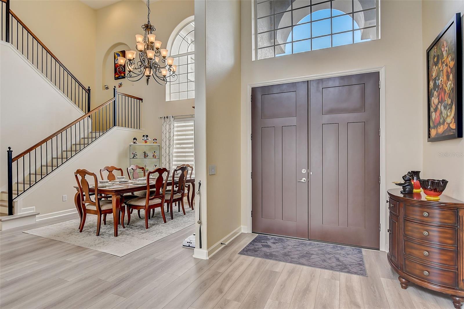 Welcome to this stunning home in the award-winning community of Providence in Davenport, Florida. This impeccably renovated 5-bedroom residence offers a luxurious living experience and an array of impressive features. Upon entering, you are greeted by new front doors and fresh interior & exterior paint, setting the tone for the elegance that awaits inside. The home boasts a spacious layout, with a theatre room and a downstairs office that can also serve as a 5th bedroom. The primary bedroom is located on the main level and occupies its own private wing, complete with double custom closets and a completely renovated bathroom featuring an oversized walk-in shower, stand-alone tub, and double vanities with beautiful waterfall countertops. Tray ceilings and LVP flooring add to the allure of the primary bedroom. The interior of the home has been thoughtfully enhanced with a host of upgrades, including new flooring throughout the first floor and stairs, new carpet in the theatre room, full interior paint, and upgraded lighting. The kitchen has been transformed with all-new quartz waterfall countertops, a farm sink, and updated appliances. It is truly a show piece of the home and adds a great place to entertain. Upstairs, there is a flex space loft that welcomes you at the top of the stairs. There are two additional bedrooms and two full bathrooms. The theatre room features tiered theatre seating and comes fully equipped for your viewing pleasure. Outside, the property offers a 3-car garage with an EV plug and new exterior paint. The landscaping and curbing have been meticulously updated, adding to the home's exceptional curb appeal. Additionally, a new pool heater has been installed, enhancing the allure of the outdoor living space. The pool area offers it's own private oasis complete with spa, oversized covered patio, and massive screen enclosure. Situated in the sought-after community of Providence, residents enjoy access to a wealth of amenities, including a 24-hour guarded gate, a zero-entry pool, a junior Olympic pool, sidewalks throughout, a clubhouse, golf course, dog park, fitness center, and tennis courts. This home represents an unparalleled opportunity to experience luxurious living in a prestigious community. Don't miss your chance to make this exquisite property your own. Schedule a showing today and prepare to be captivated by everything this home has to offer.
