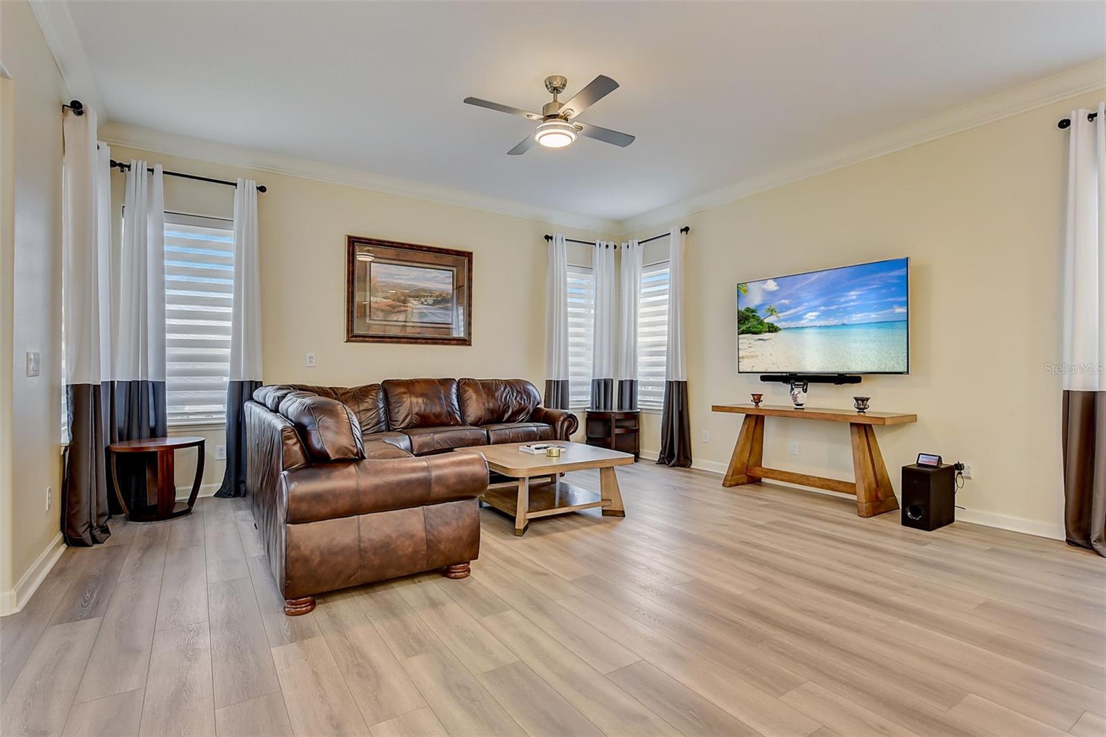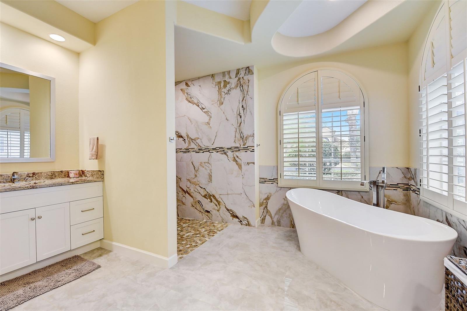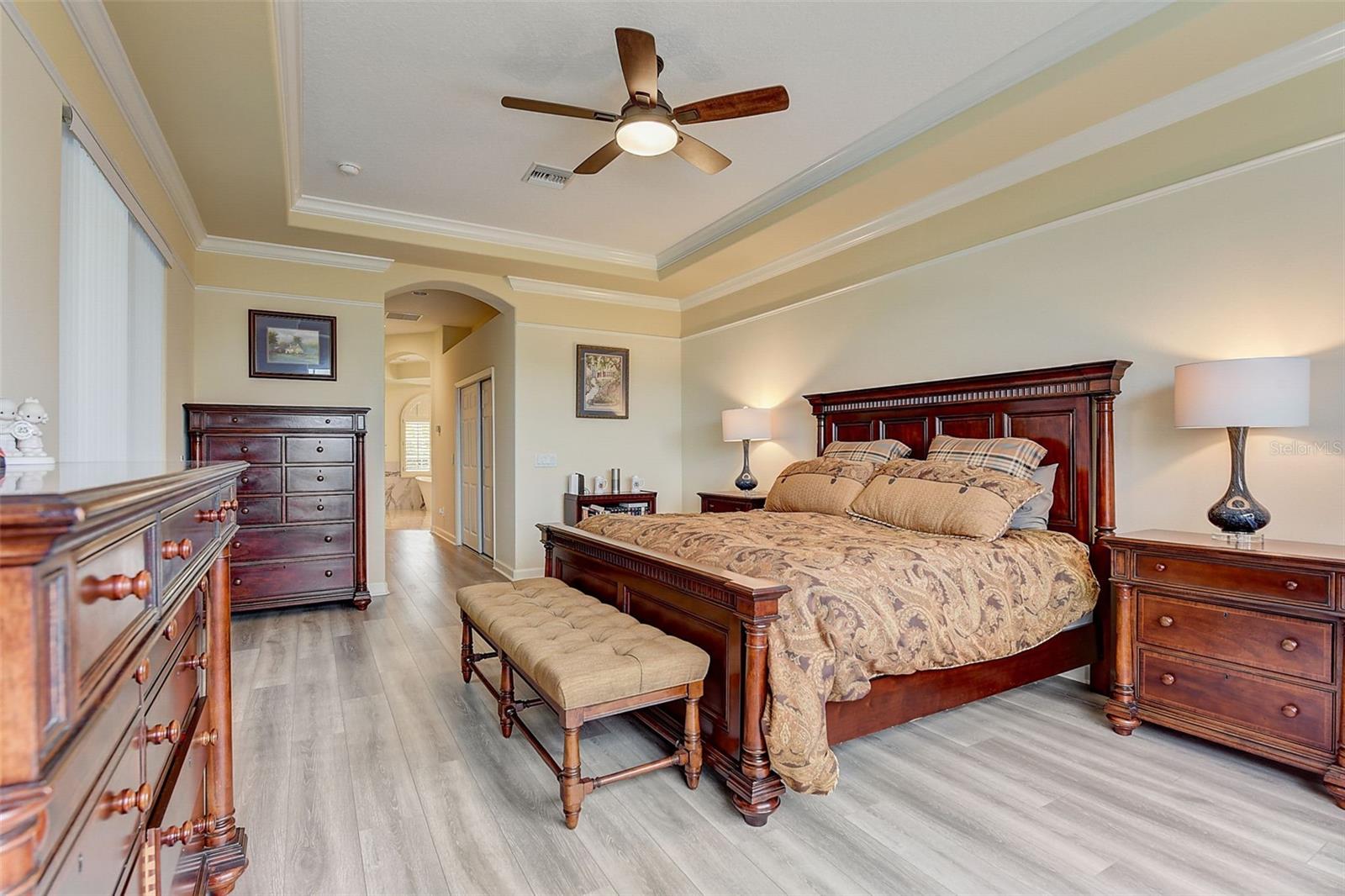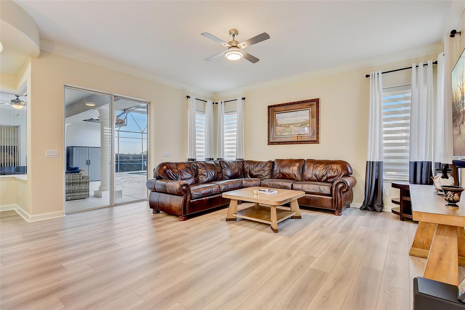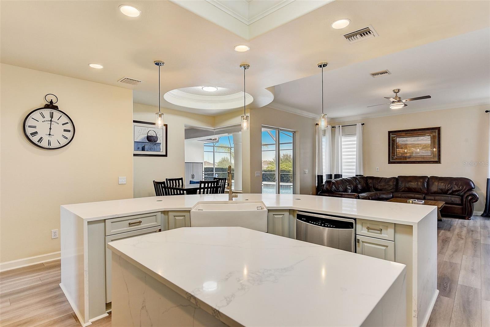 Welcome to this stunning home in the award-winning community of Providence in Davenport, Florida. This impeccably renovated 5-bedroom residence offers a luxurious living experience and an array of impressive features. Upon entering, you are greeted by new front doors and fresh interior & exterior paint, setting the tone for the elegance that awaits inside. The home boasts a spacious layout, with a theatre room and a downstairs office that can also serve as a 5th bedroom. The primary bedroom is located on the main level and occupies its own private wing, complete with double custom closets and a completely renovated bathroom featuring an oversized walk-in shower, stand-alone tub, and double vanities with beautiful waterfall countertops. Tray ceilings and LVP flooring add to the allure of the primary bedroom. The interior of the home has been thoughtfully enhanced with a host of upgrades, including new flooring throughout the first floor and stairs, new carpet in the theatre room, full interior paint, and upgraded lighting. The kitchen has been transformed with all-new quartz waterfall countertops, a farm sink, and updated appliances. It is truly a show piece of the home and adds a great place to entertain. Upstairs, there is a flex space loft that welcomes you at the top of the stairs. There are two additional bedrooms and two full bathrooms. The theatre room features tiered theatre seating and comes fully equipped for your viewing pleasure. Outside, the property offers a 3-car garage with an EV plug and new exterior paint. The landscaping and curbing have been meticulously updated, adding to the home's exceptional curb appeal. Additionally, a new pool heater has been installed, enhancing the allure of the outdoor living space. The pool area offers it's own private oasis complete with spa, oversized covered patio, and massive screen enclosure. Situated in the sought-after community of Providence, residents enjoy access to a wealth of amenities, including a 24-hour guarded gate, a zero-entry pool, a junior Olympic pool, sidewalks throughout, a clubhouse, golf course, dog park, fitness center, and tennis courts. This home represents an unparalleled opportunity to experience luxurious living in a prestigious community. Don't miss your chance to make this exquisite property your own. Schedule a showing today and prepare to be captivated by everything this home has to offer.