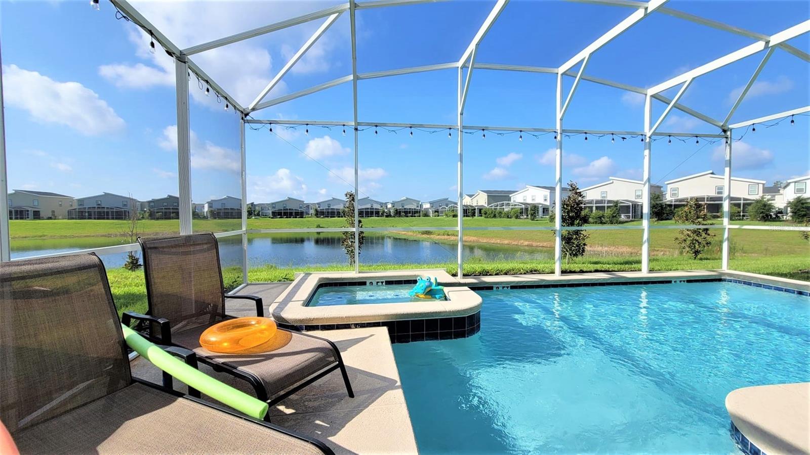 FULLY FURNISHED, TURN-KEY Excellent Income Producing SHORT-TERM RENTAL SINGLE FAMILY VACATION HOME in the most desirable Vacation Resort of Champion Gate at the retreat by Disney! This beautiful home can easily accommodate up to 15 guests, features an inground pool with the privacy from the large covered screened in lanai, 6 Bedrooms and 5 full bathrooms. Large private patio, heated pool and spa are ideal for entertaining large groups of guests. Some great features of this house include spacious family/dining room combo, extra large loft, and huge private pool/hot spa area, which make it perfect for family and friends to gather for entertainment. Open kitchen is equipped with high-end cabinetry, granite countertops, and high-end stainless-steel appliances. HOUSE SITS ON A WATER VIEW LOT and it’s sure to be a hit with guest, family or friends as they relax and enjoy the privacy from the large covered screened in lanai. There is a Master Suite with 5 pcs ensuite bath. The Champion Gate at the retreat provides massive amenities, including 12,000 Sq ft ClubHouse and Amenities in the area. The amenities include: Great Big Community Pool, , Lazy River, Cabanas, Tiki Bar, Indoor dining Restaurant and Bar, Tennis Courts, Volleyball Court, Golf Course, Fitness Center, Activities room, Arcade and more! and much more... This community is also in close proximity from Disney World and other attractions, like Universal Studios, Sea World, Golf courses, and Shopping Centers.