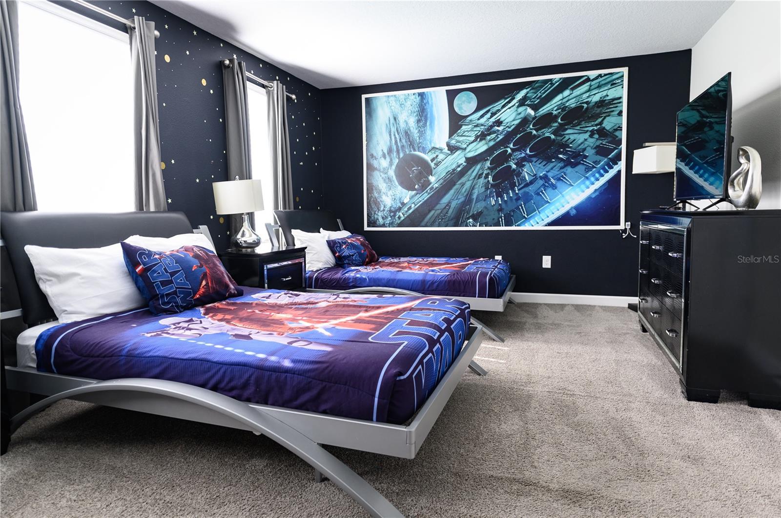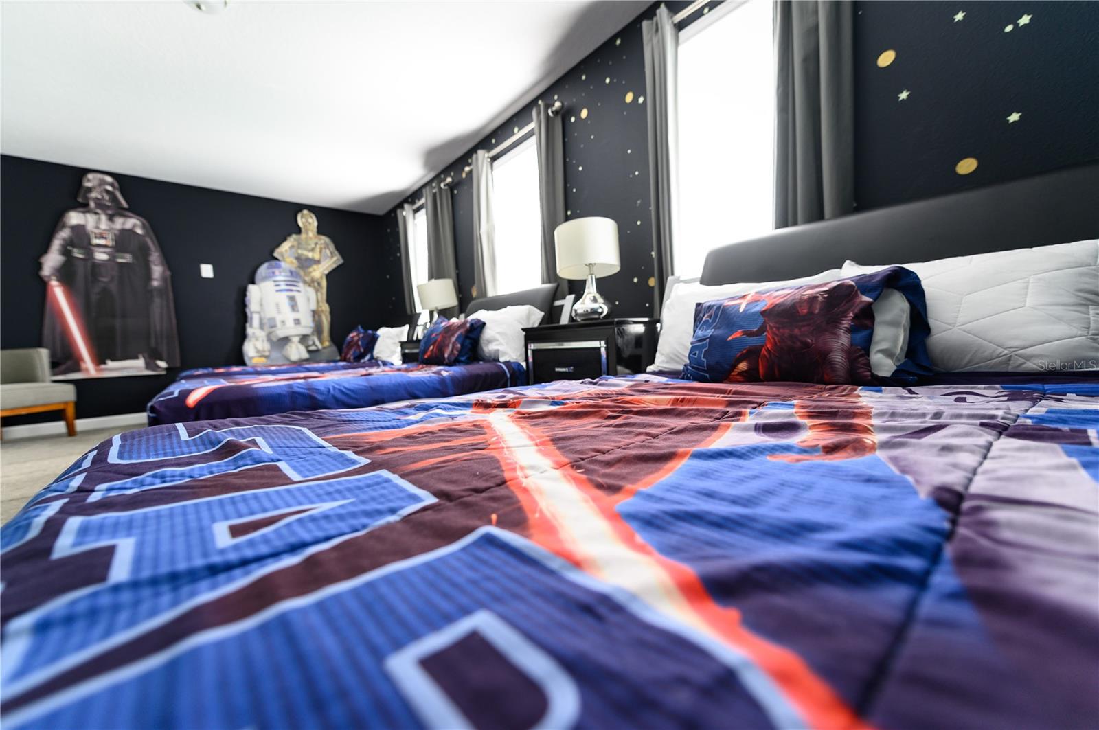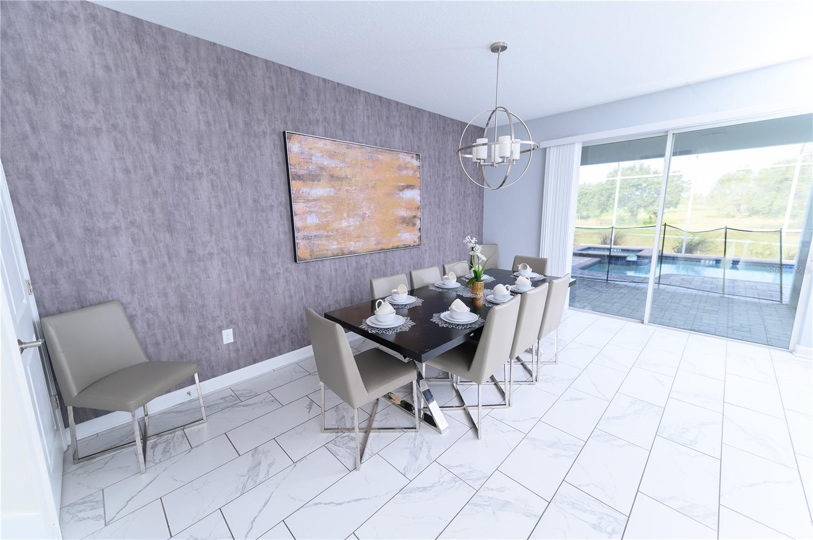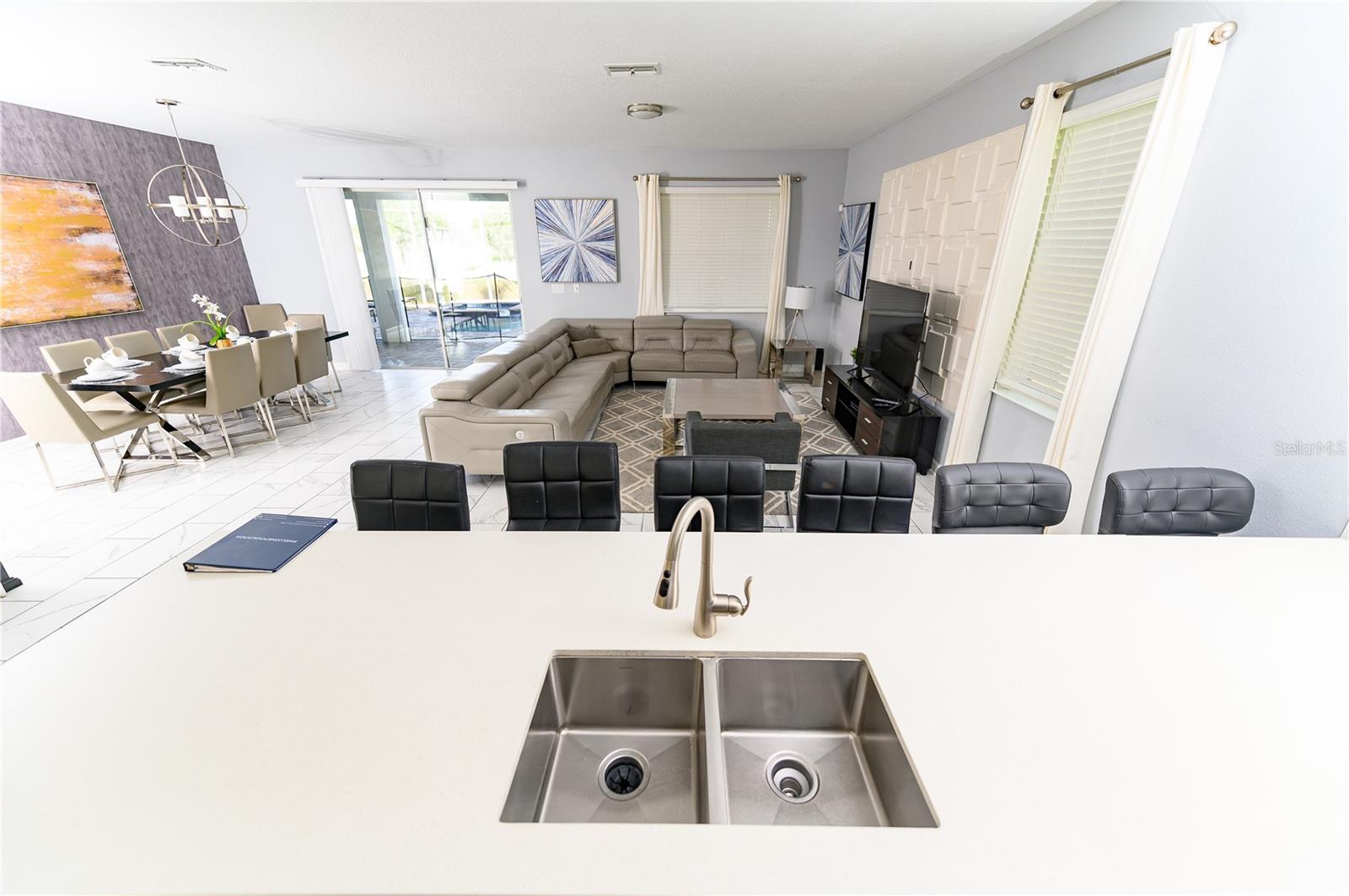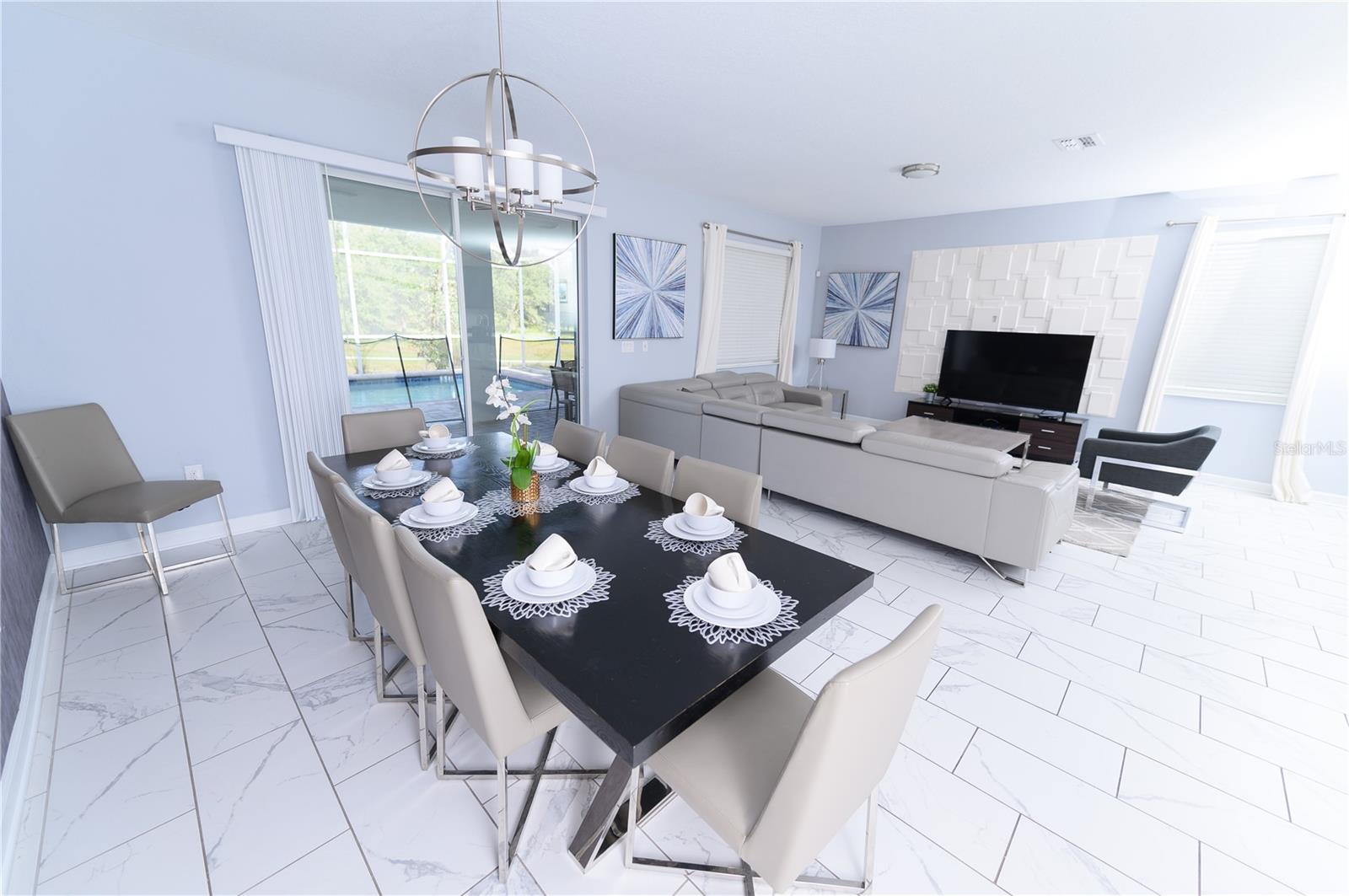 Beautiful and Upgraded 9 bedrooms 5 bathrooms 2 Car Garage, fully furnished and equipped Single Family House with a private pool and Jacuzzi. Basic Cable, Basic Internet, Valet Trash, Lawn Services include. Located in the heart of Champions gate. The Champions Gate Resort is a gated community with 24 hour security, two 18-hole championship Greg Norman golf courses, clubhouse, restaurant, tiki bar, swimming pools, lazy river, splash park, waterslides, fitness center, game room, movie theater, tennis courts, basketball, beach volleyball and much more. Close to Disney World and Universal Studios, shopping, restaurants!!!!