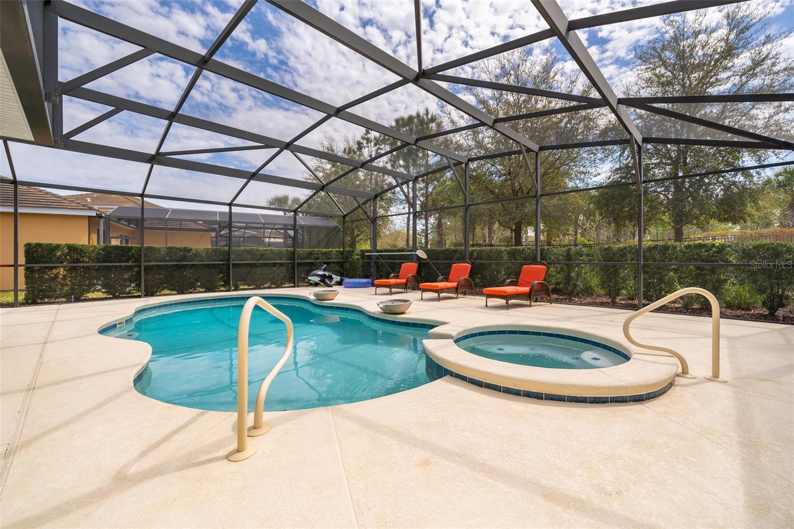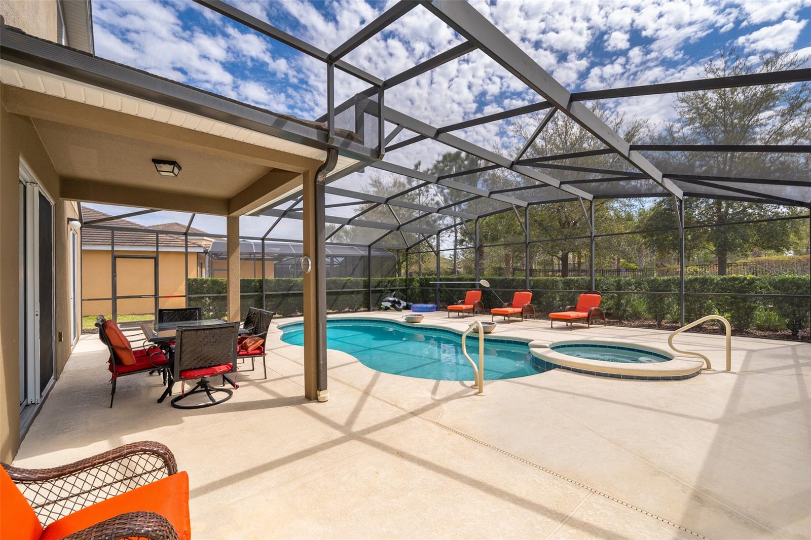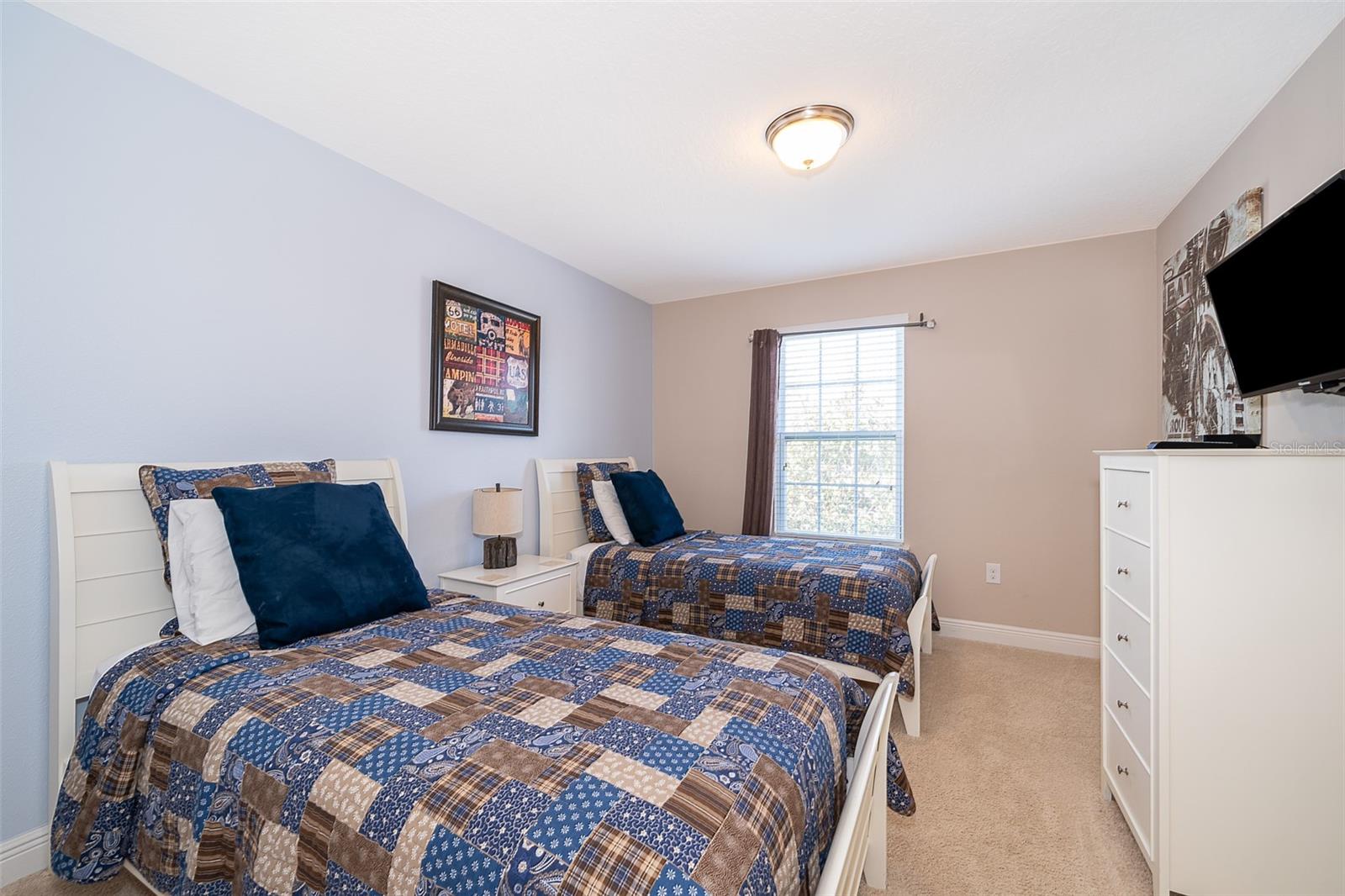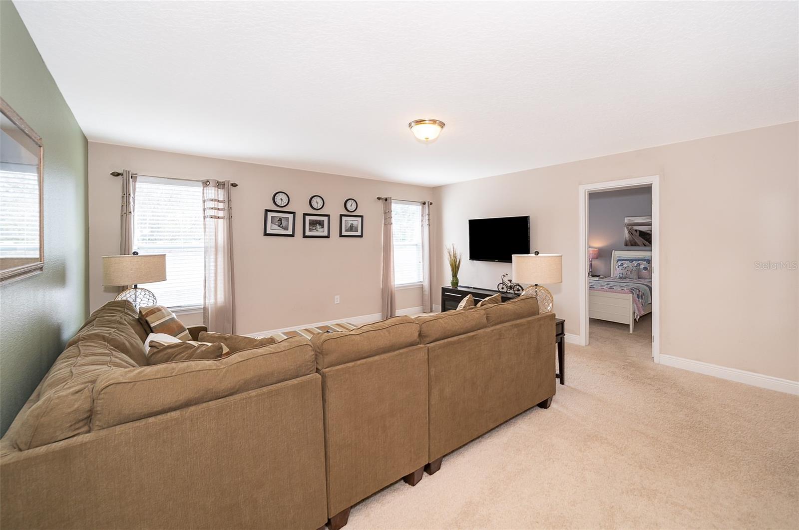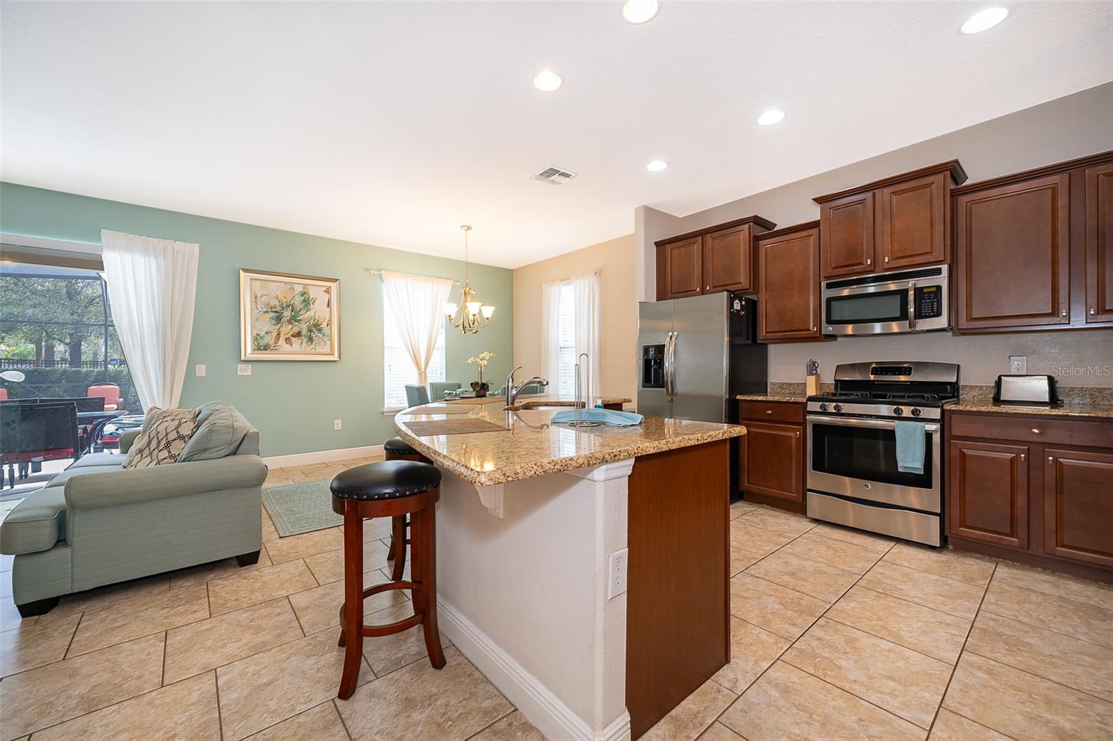 Welcome to Solterra Resort, one of Central Florida's premier vacation home communities! This fully furnished property boasts 6 bedrooms and 4.5 bathrooms, making it ideal for renters or as your own personal vacation retreat. Conveniently located within a short distance to the clubhouse and offering a private setting with no rear neighbors, this home offers the epitome of luxury living. Featuring two master suites, including one with direct pool access on the main floor, this home offers unparalleled convenience and comfort. The spacious kitchen is equipped with beautiful granite countertops, stainless steel appliances, a large island, and a pantry, perfect for entertaining guests. The open-plan living area, complete with sliding glass doors leading to the pool area, provides a welcoming space for gatherings. Upstairs, a loft serves as a second family room, while the remaining five bedrooms offer ample accommodation for guests. A second master suite with an ensuite bathroom and walk-in closet is ideal if you have two sets of adults. Solterra Resort offers a wealth of community amenities, including a clubhouse, resort-style pool, hot tub, fitness room, lazy river, tennis and volleyball courts, playground, and recreational areas. Residents can also enjoy a poolside café and various walking, jogging, and running trails. Don't miss out on the opportunity to make this stunning property your next home or investment!